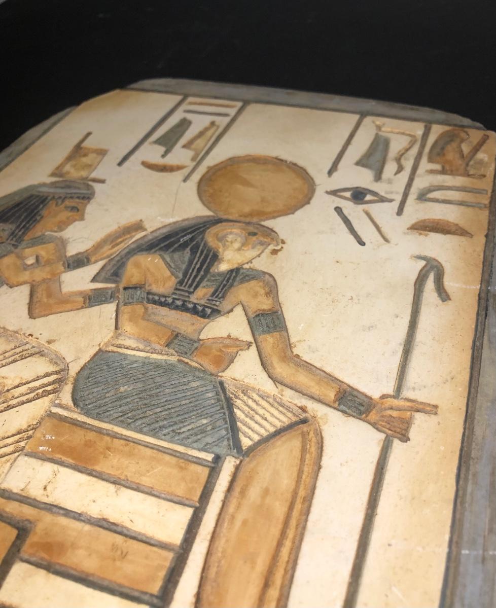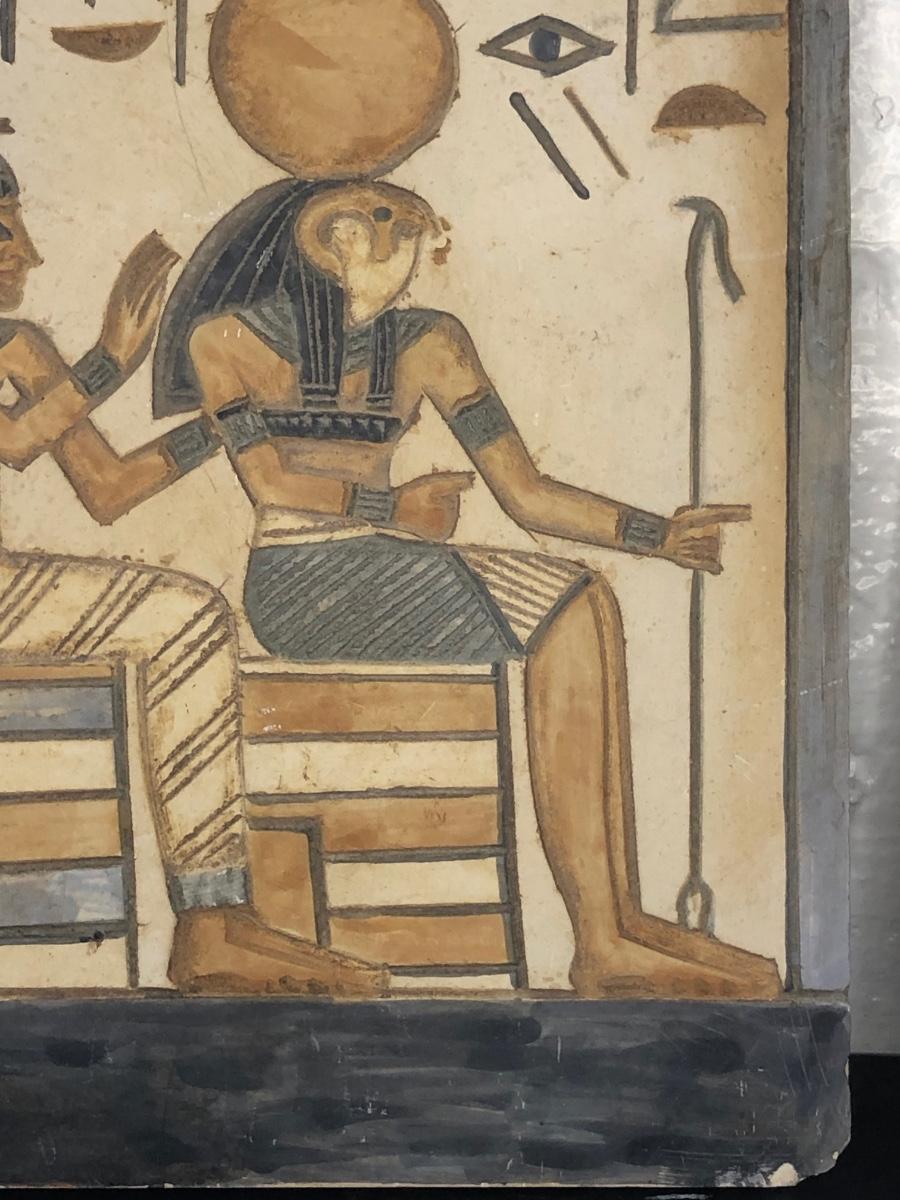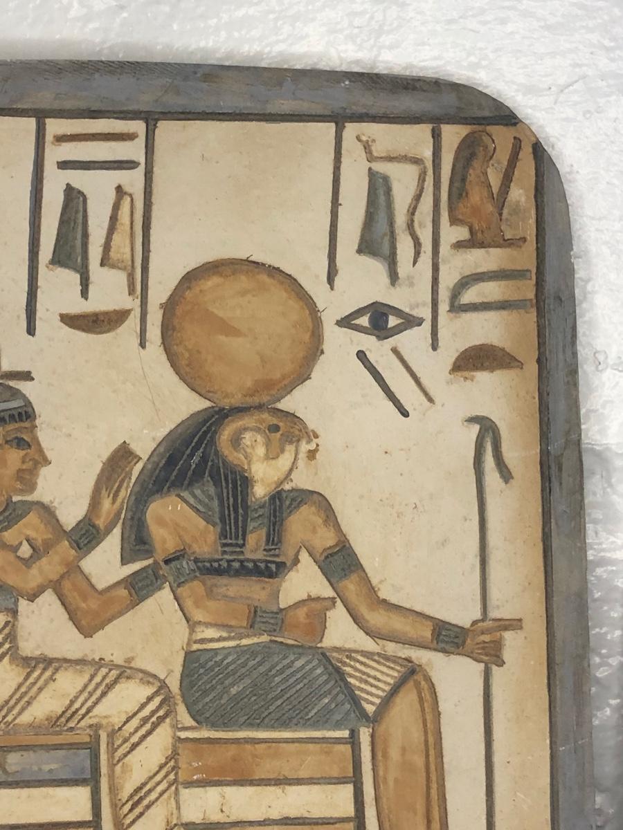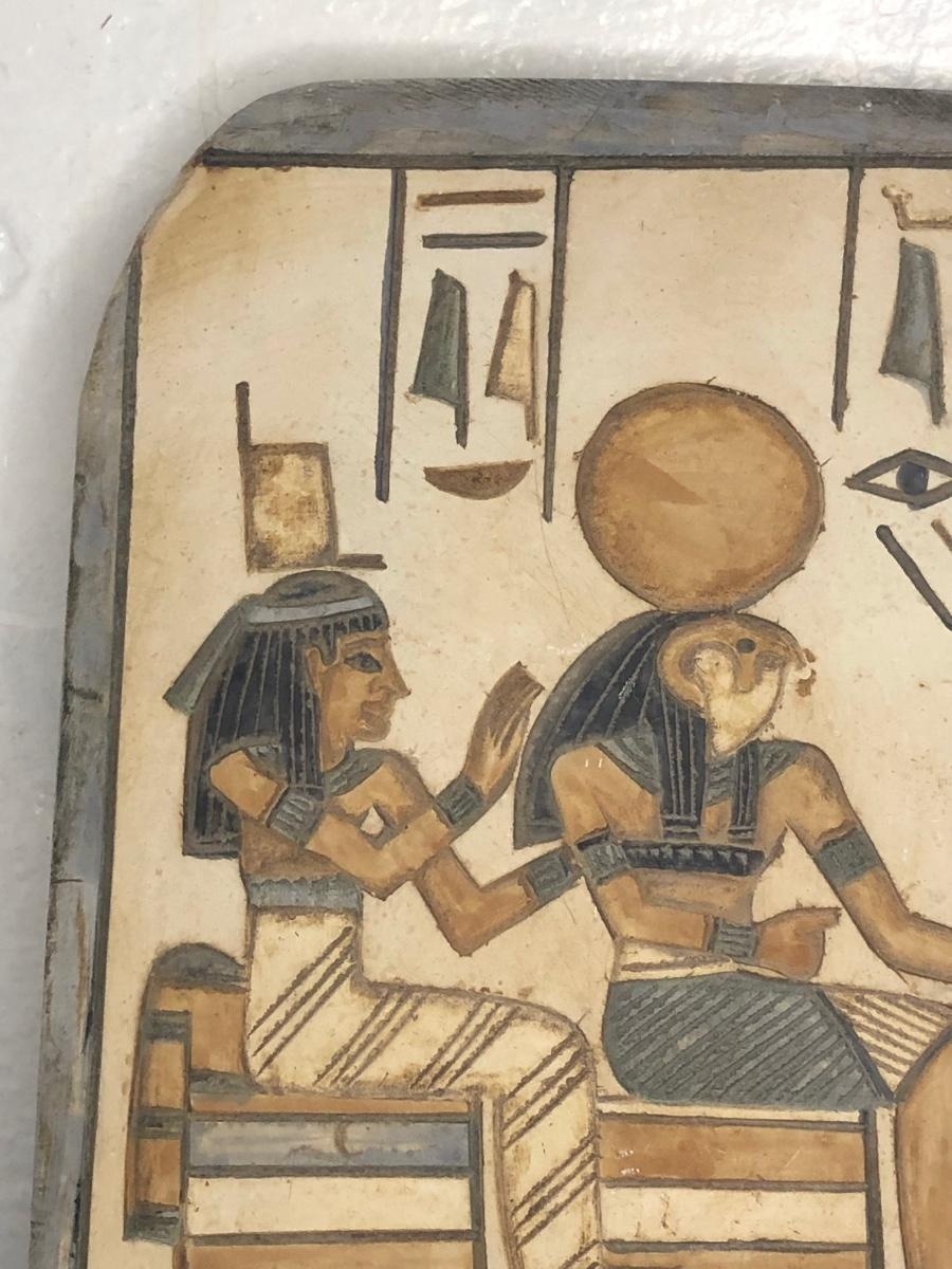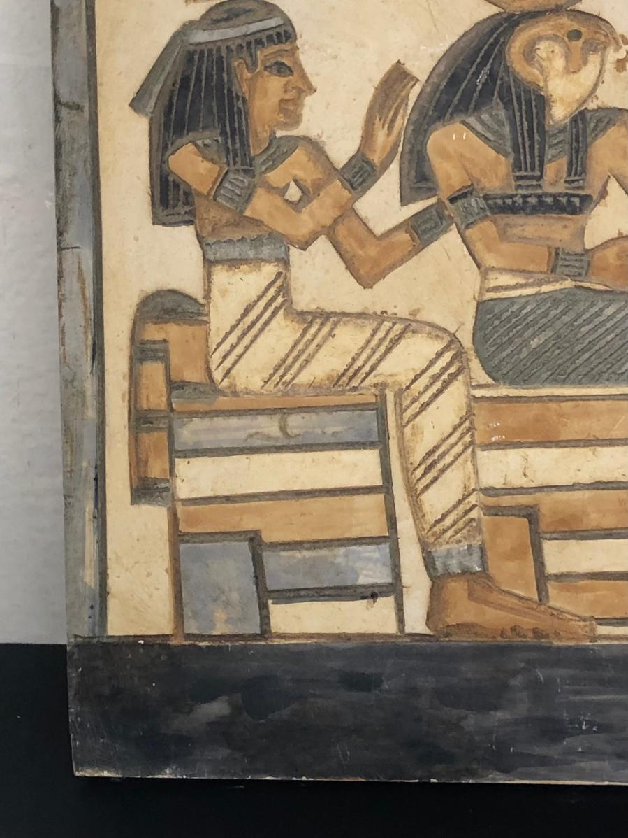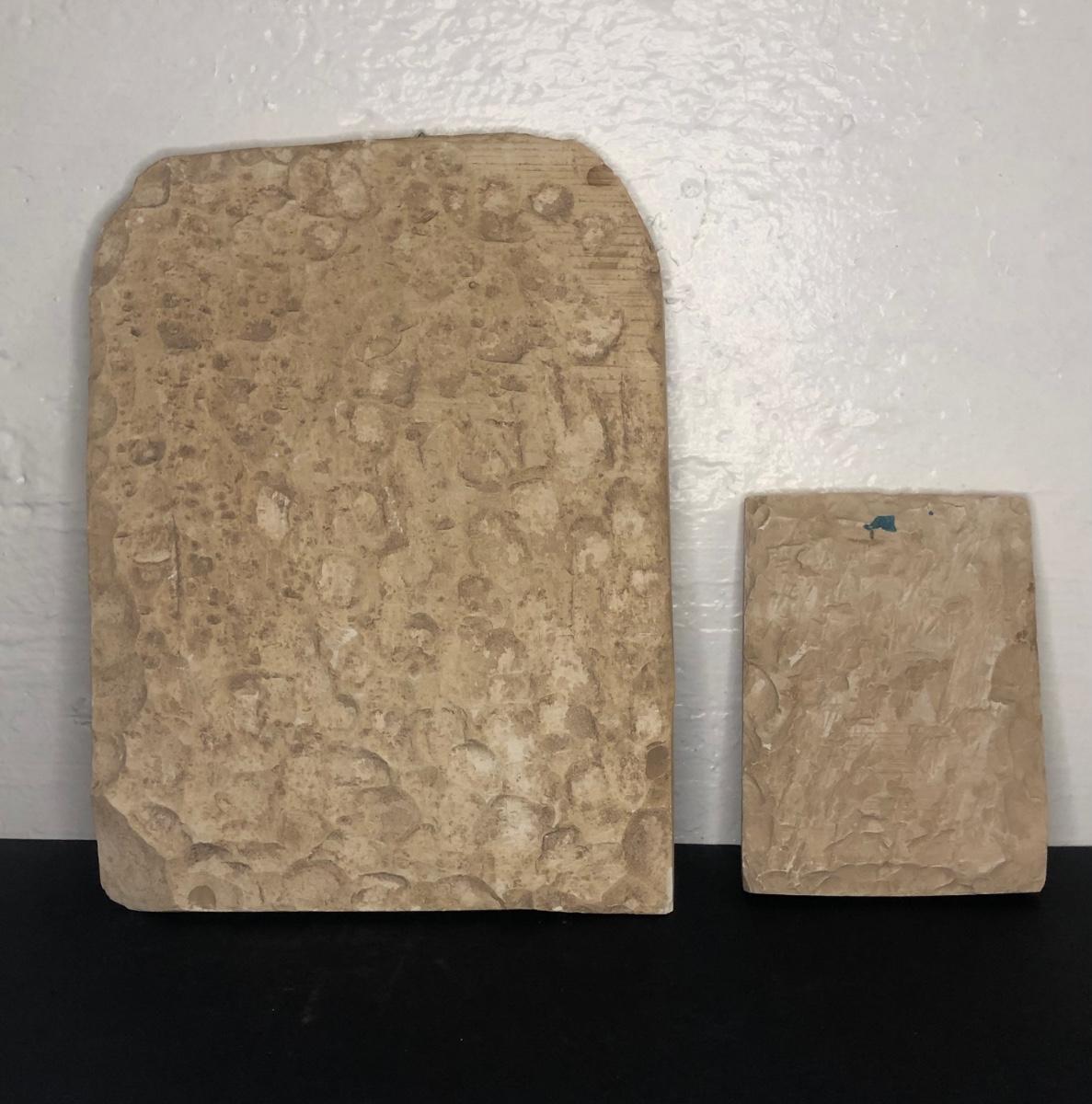 Set of two painted engravings on clay tablets depicting the Tomb of Queen Nefertari and Queen Nefertari. Tablets measure 12" x 9" and 6" x 4.5"