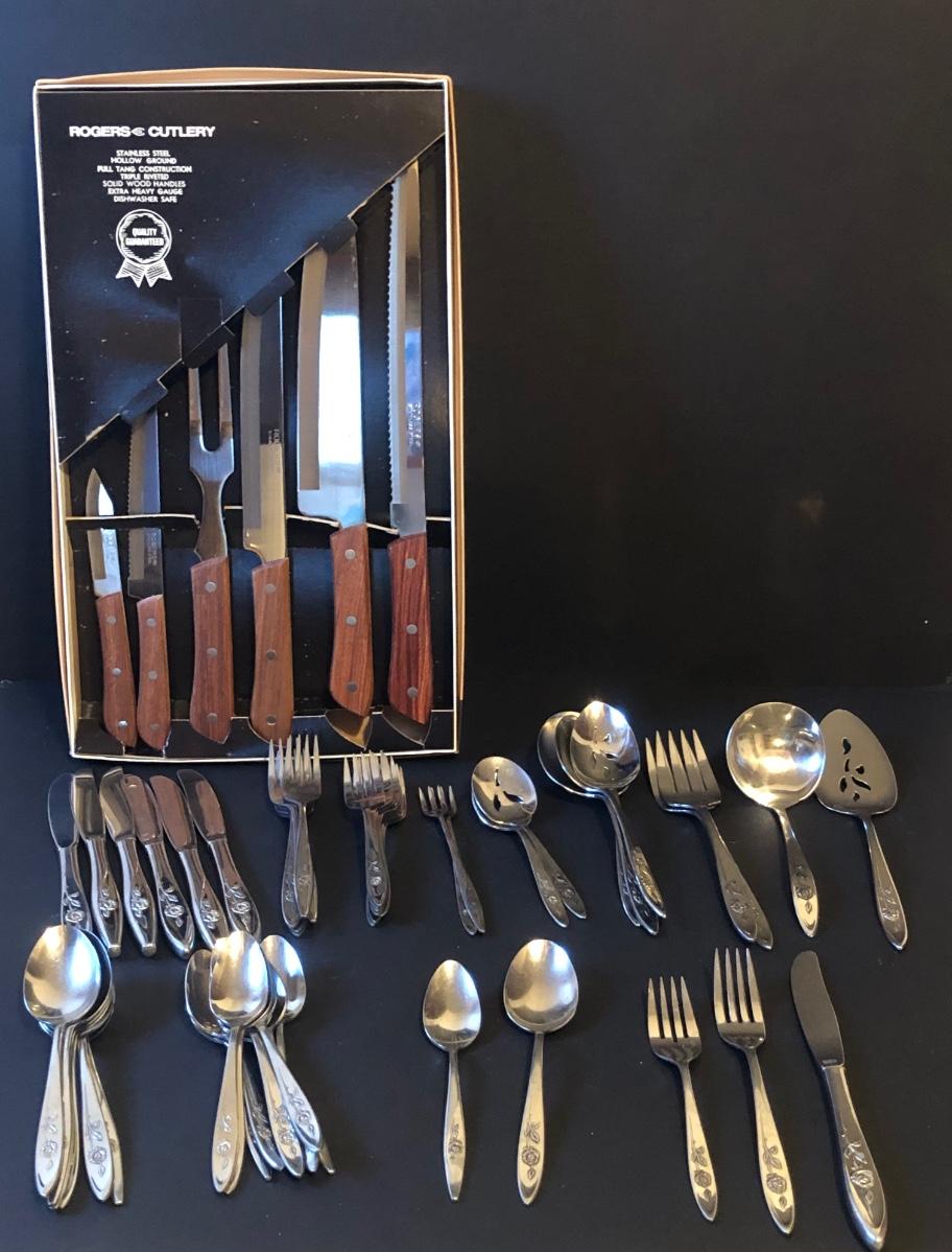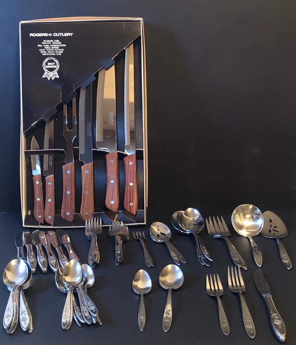 LOT50M: Rogers Cutlery Knife Set w/ Box & ONEIDA Community Stainless Steel Flatware Set