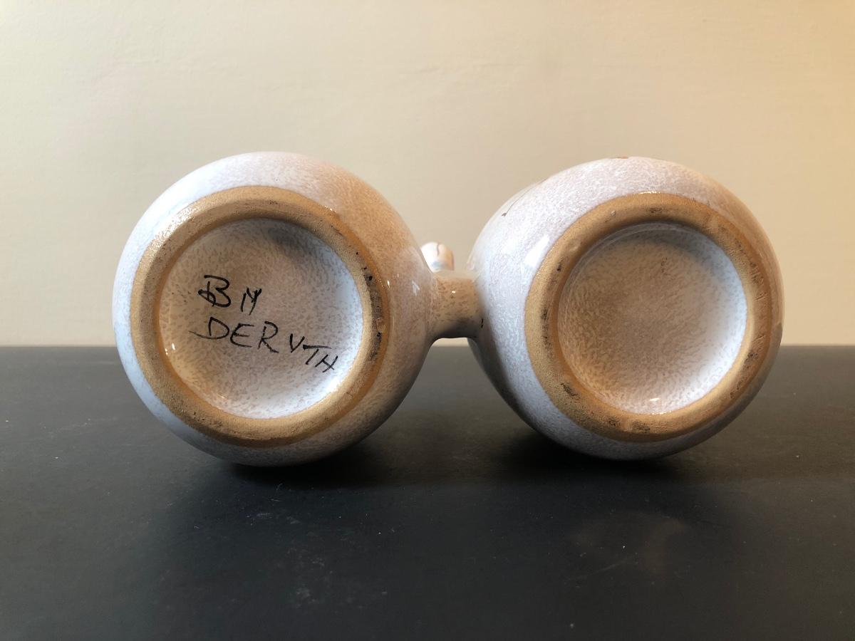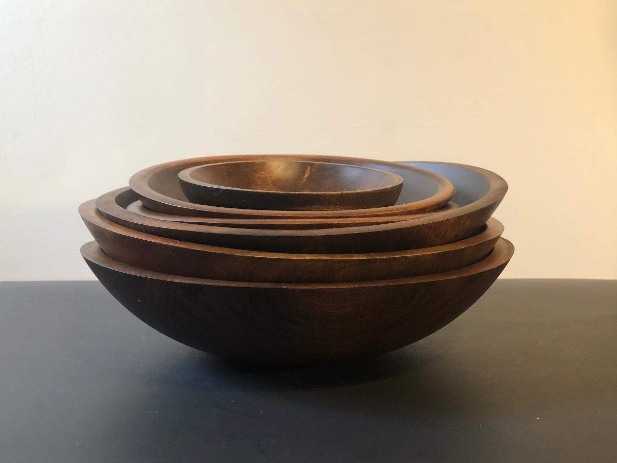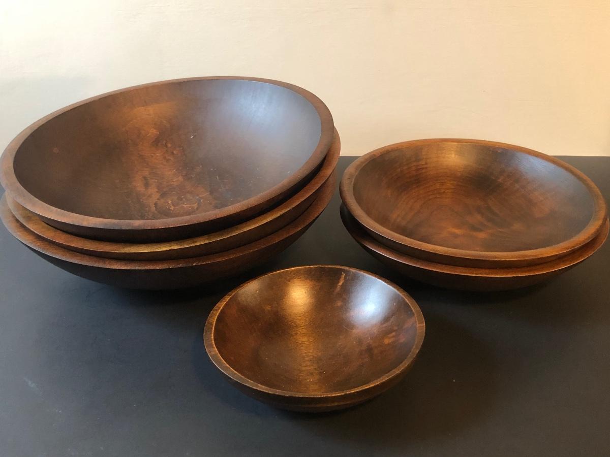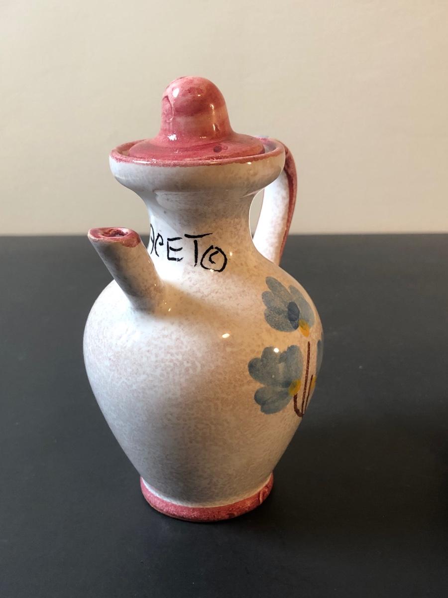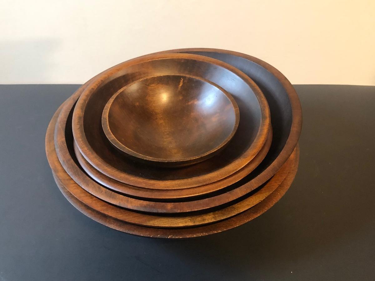 LOT59M: Wooden Bowls, Signed Pottery Oil & Vinegar Set