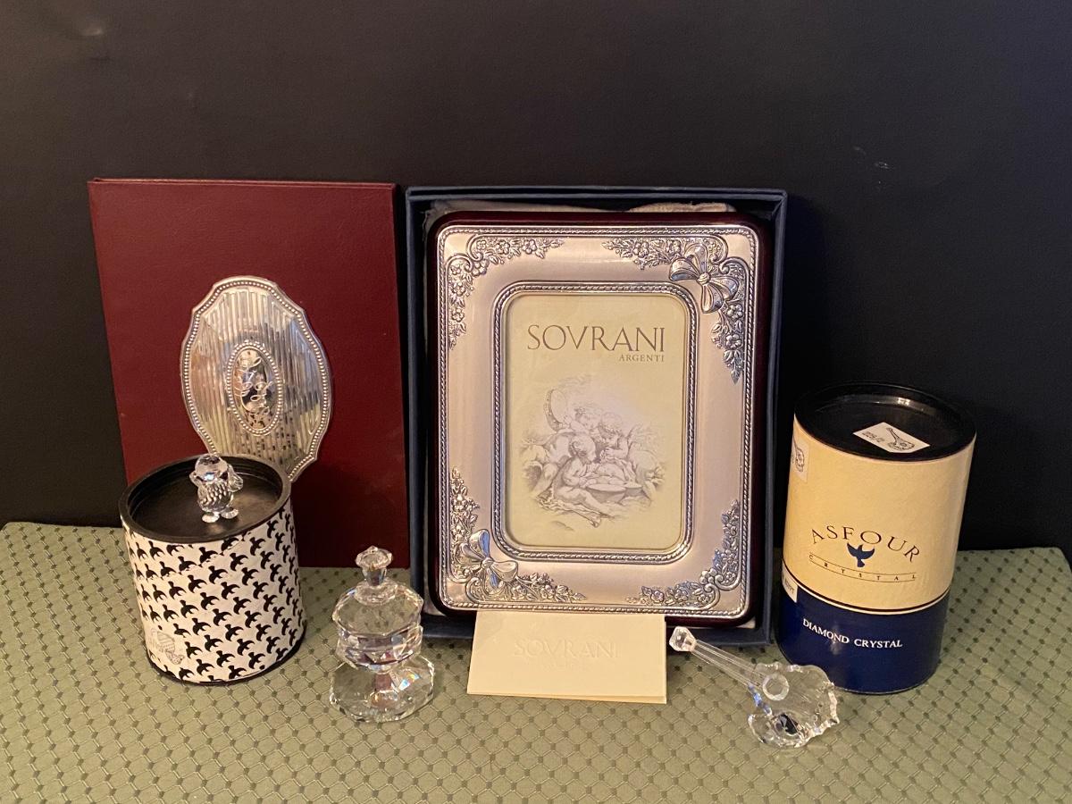 LOT 64C: Sovrani Frame, Personal Phone Book & Asfour Diamond Crystal Figures w/Original Boxes