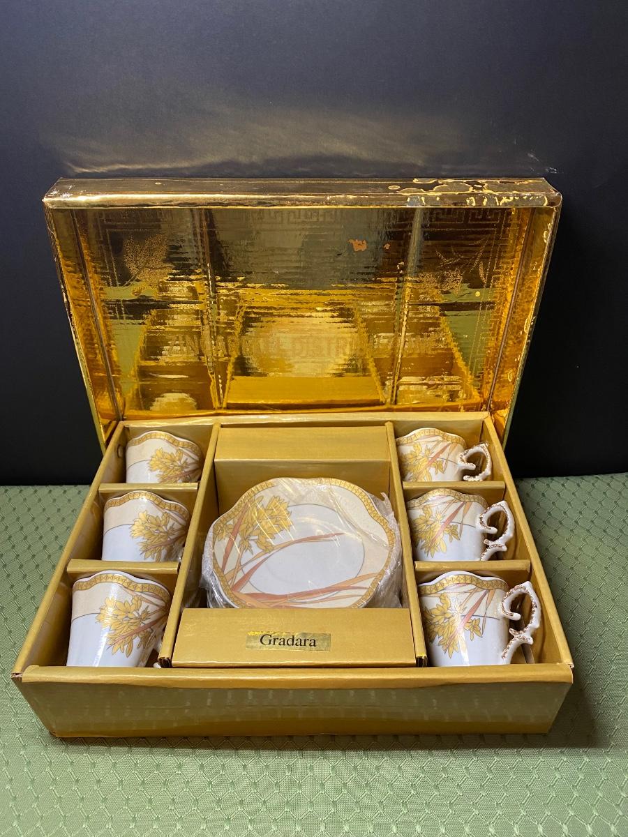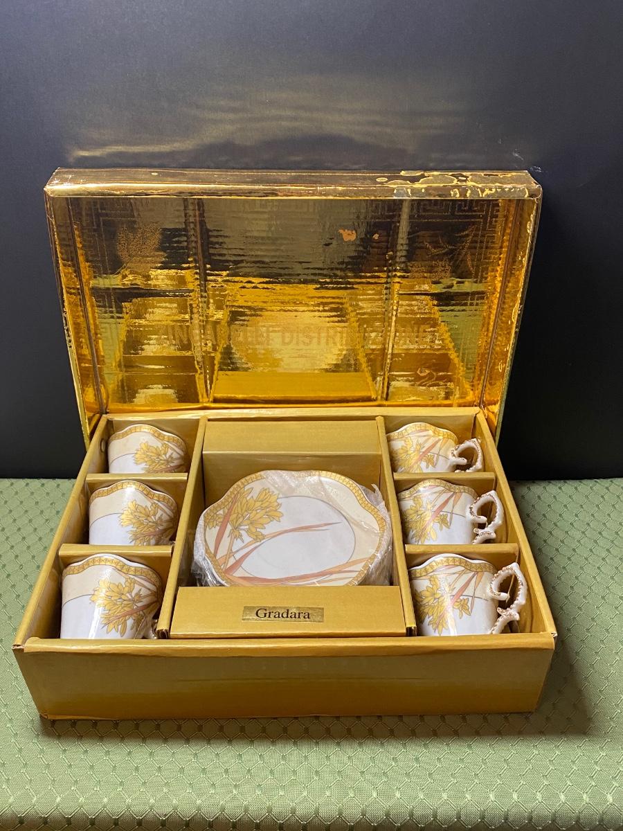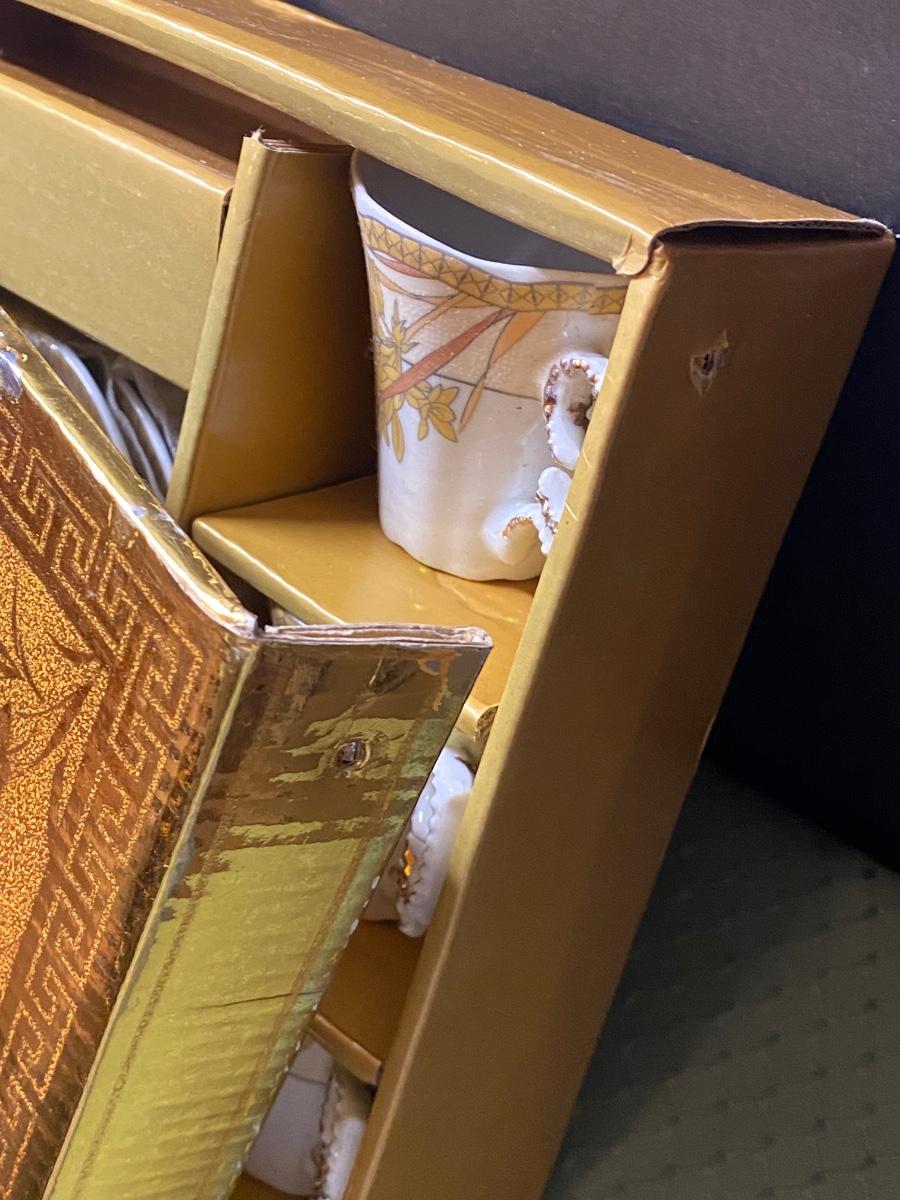 Tea set comes in original box. Box shows some age and light wear and tear. Please see all pictures as they are the best representation of the items. The pictures show condition, measurements if taken, and what is included in the lot. Due to the large amount that we photograph and the time frame, we are not always able to take measurements. All items unless noted, are pre-owned and have been used. If you purchased furniture, you must bring help. We do not allow one person to carry large furniture out on their own. Bring help, tools and a truck for the safety of our client’s homes, and your personal safety. Any damages that result to the property including walls, and floors due to moving of the furniture will be charged to the buyer. Company policy. Thank you.