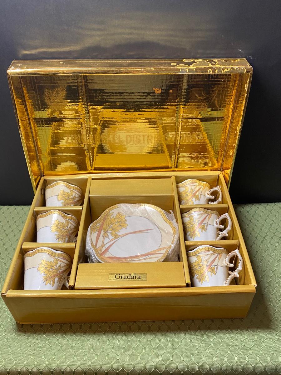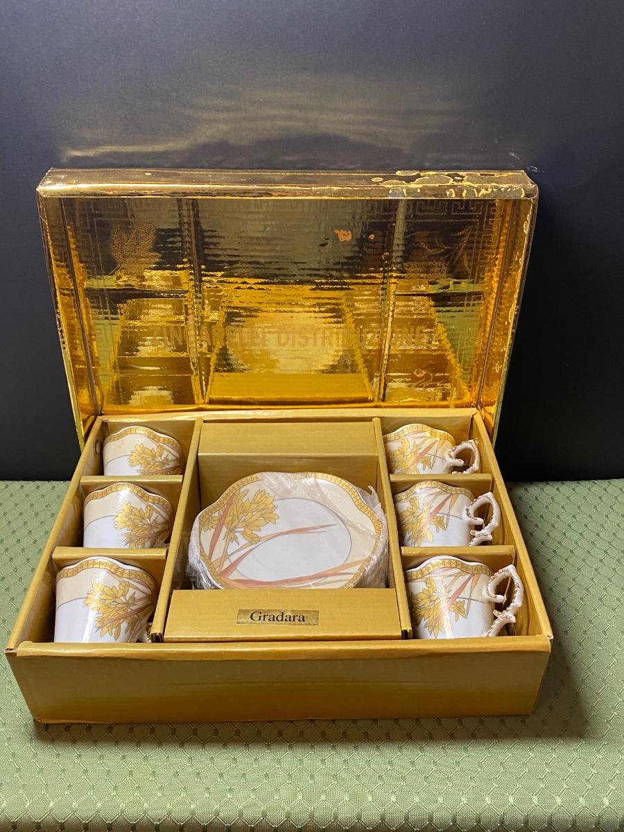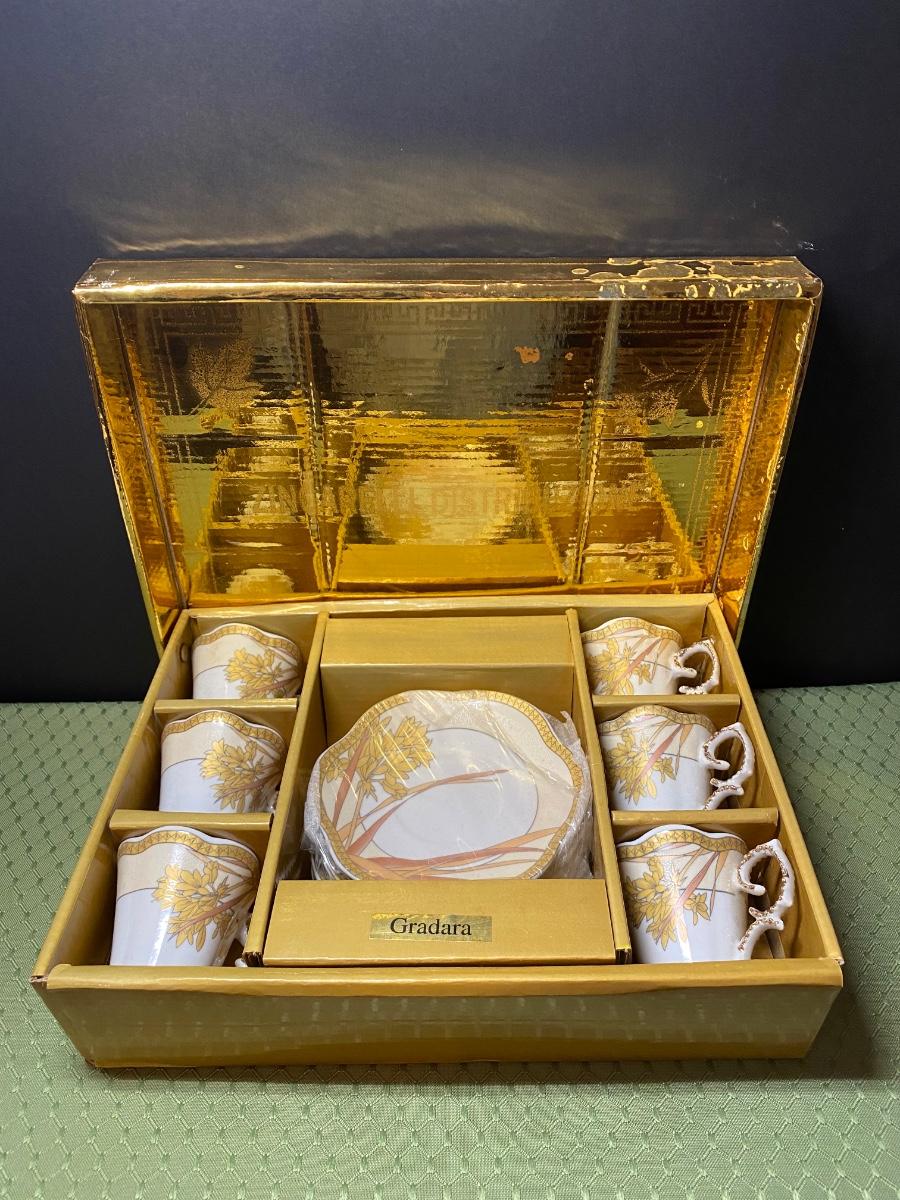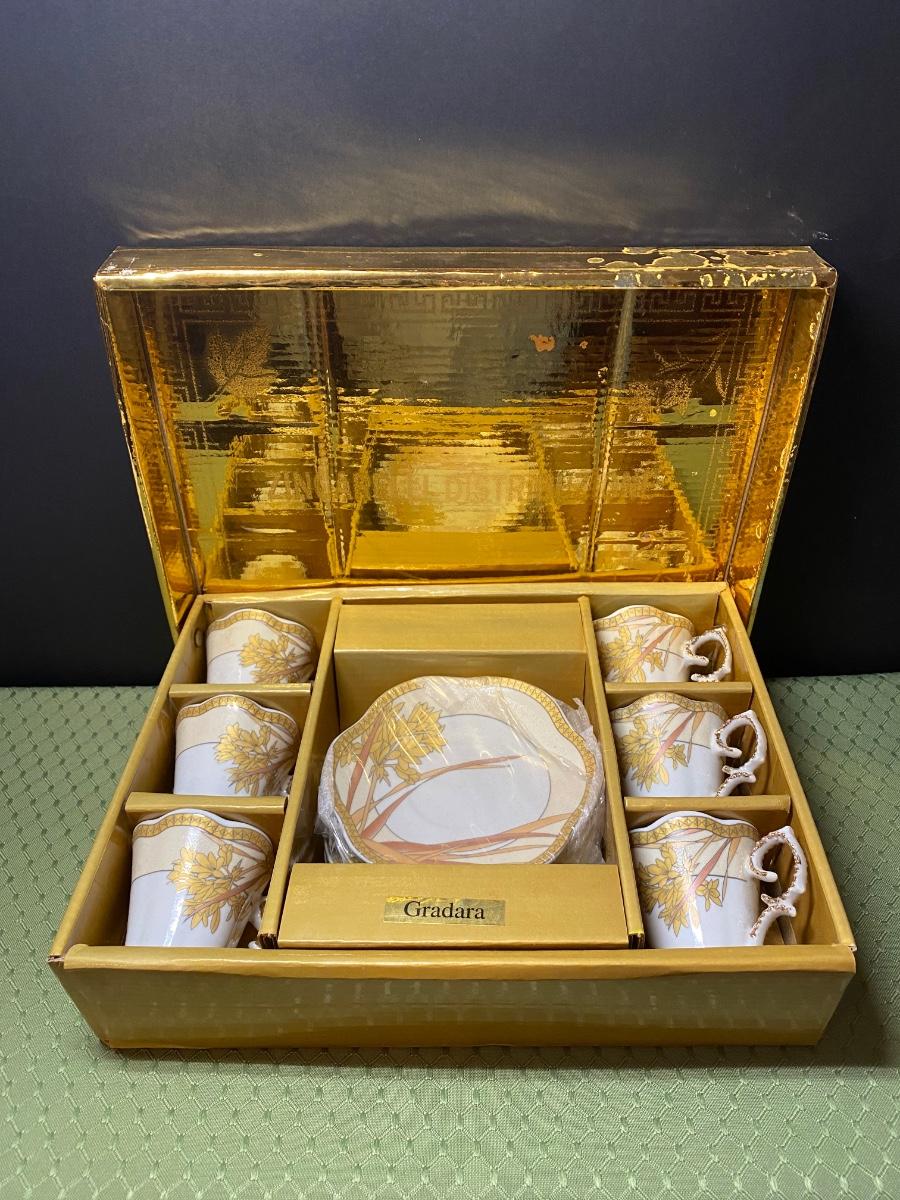 Tea set comes in original box. Box shows some age and light wear and tear. Please see all pictures as they are the best representation of the items. The pictures show condition, measurements if taken, and what is included in the lot. Due to the large amount that we photograph and the time frame, we are not always able to take measurements. All items unless noted, are pre-owned and have been used. If you purchased furniture, you must bring help. We do not allow one person to carry large furniture out on their own. Bring help, tools and a truck for the safety of our client’s homes, and your personal safety. Any damages that result to the property including walls, and floors due to moving of the furniture will be charged to the buyer. Company policy. Thank you.