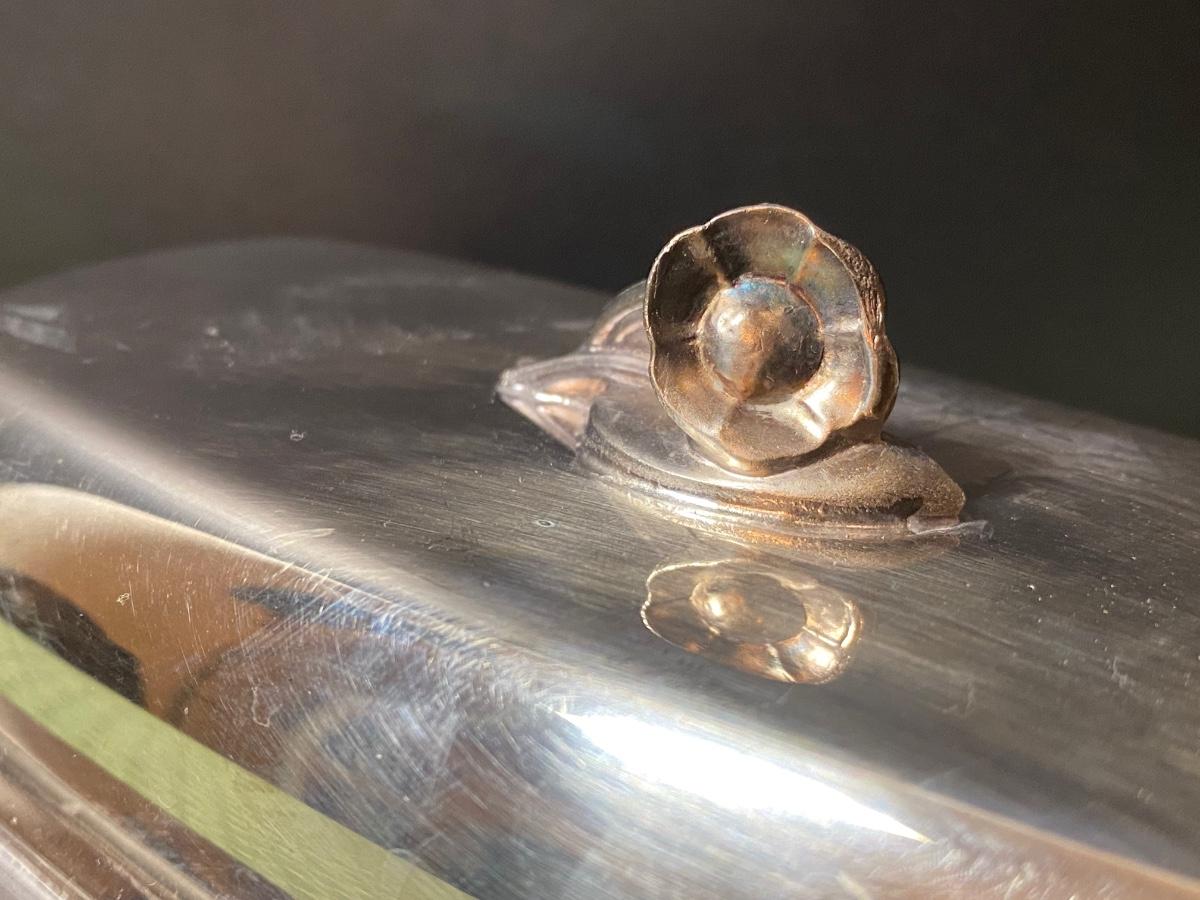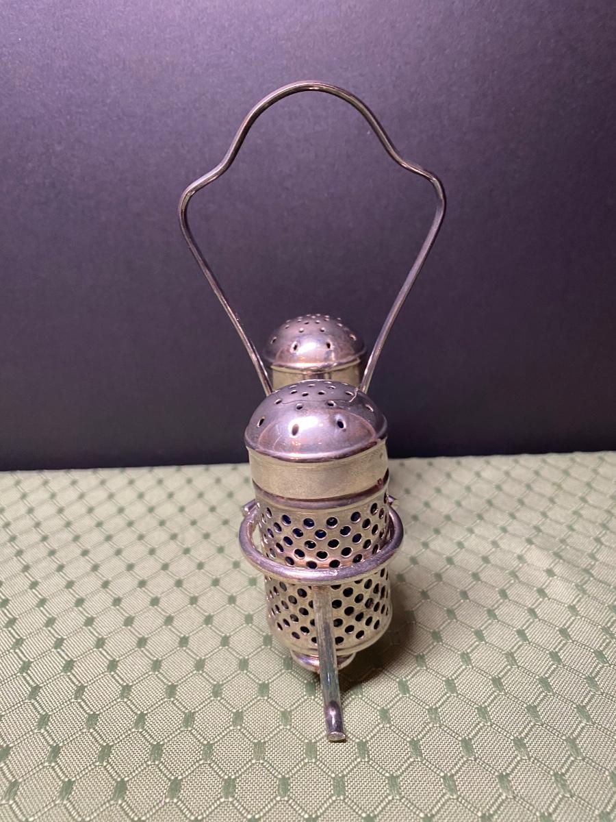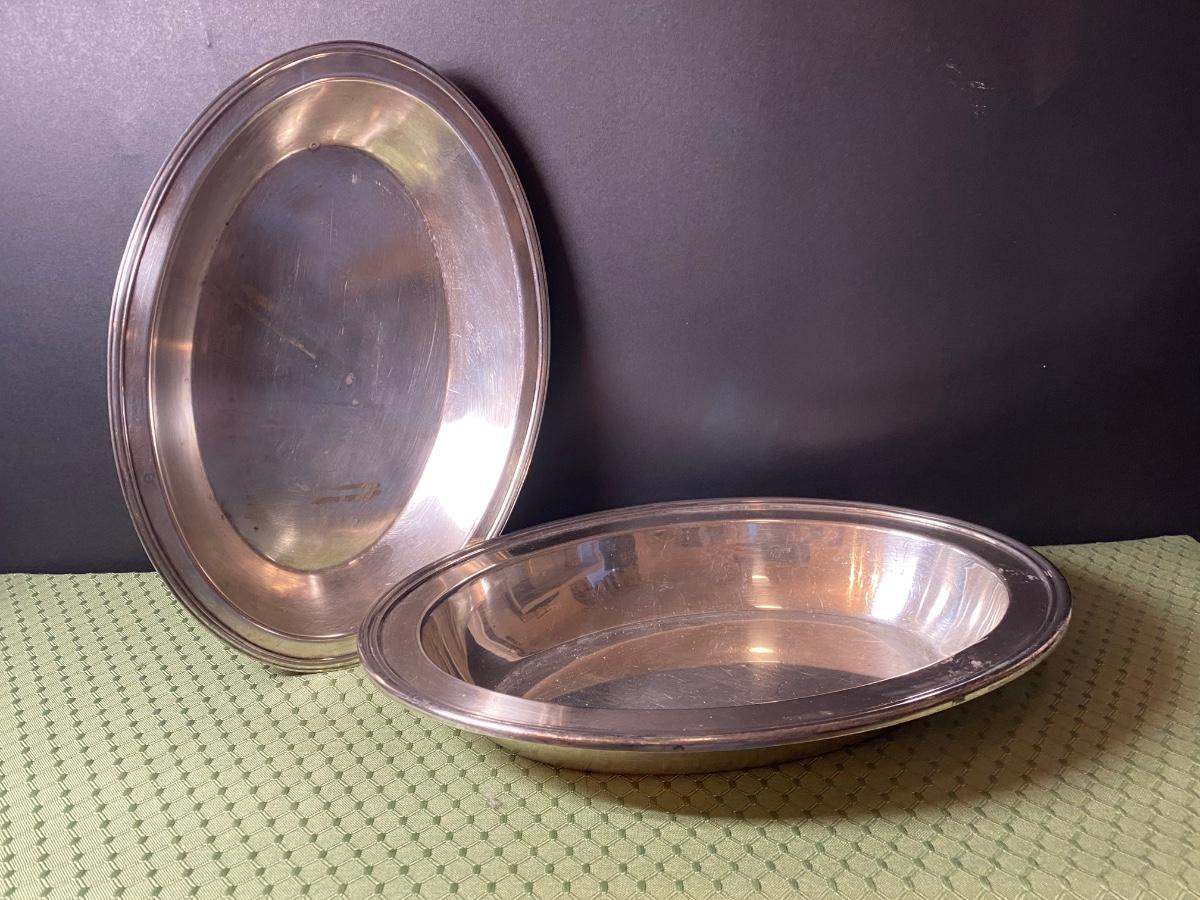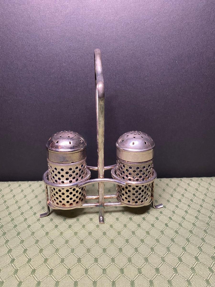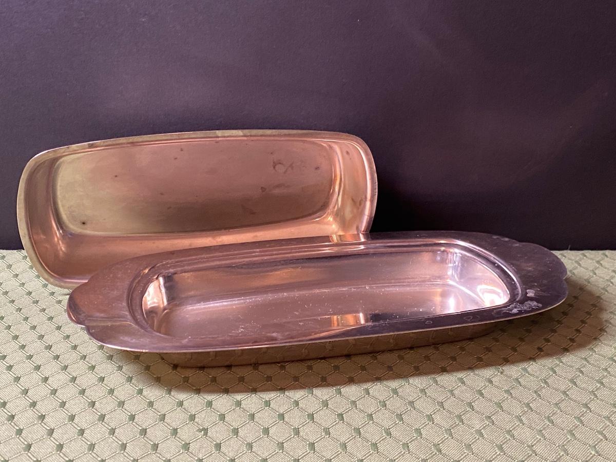 LOT 66C: Stainless Steel Covered Serving & Butter Dish, Salt & Pepper w/Cobalt Blue Inserts