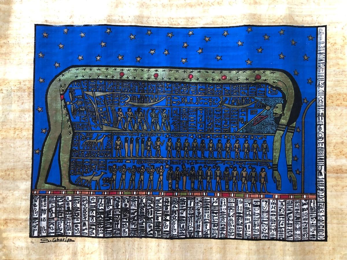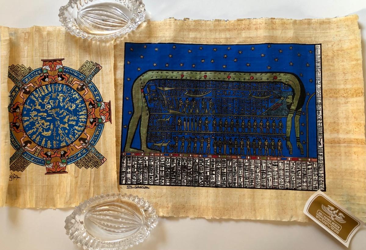 Two handmade papyrus scrolls from the Isis 2 Papyrus Museum in Luxor, Egypt. Both are signed. Papyrus comes rolled and without any framing or covering.