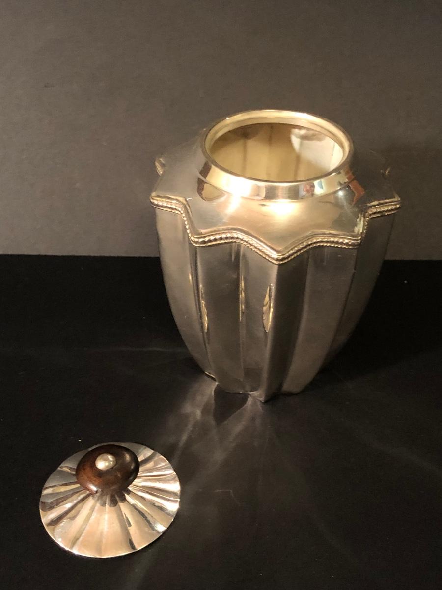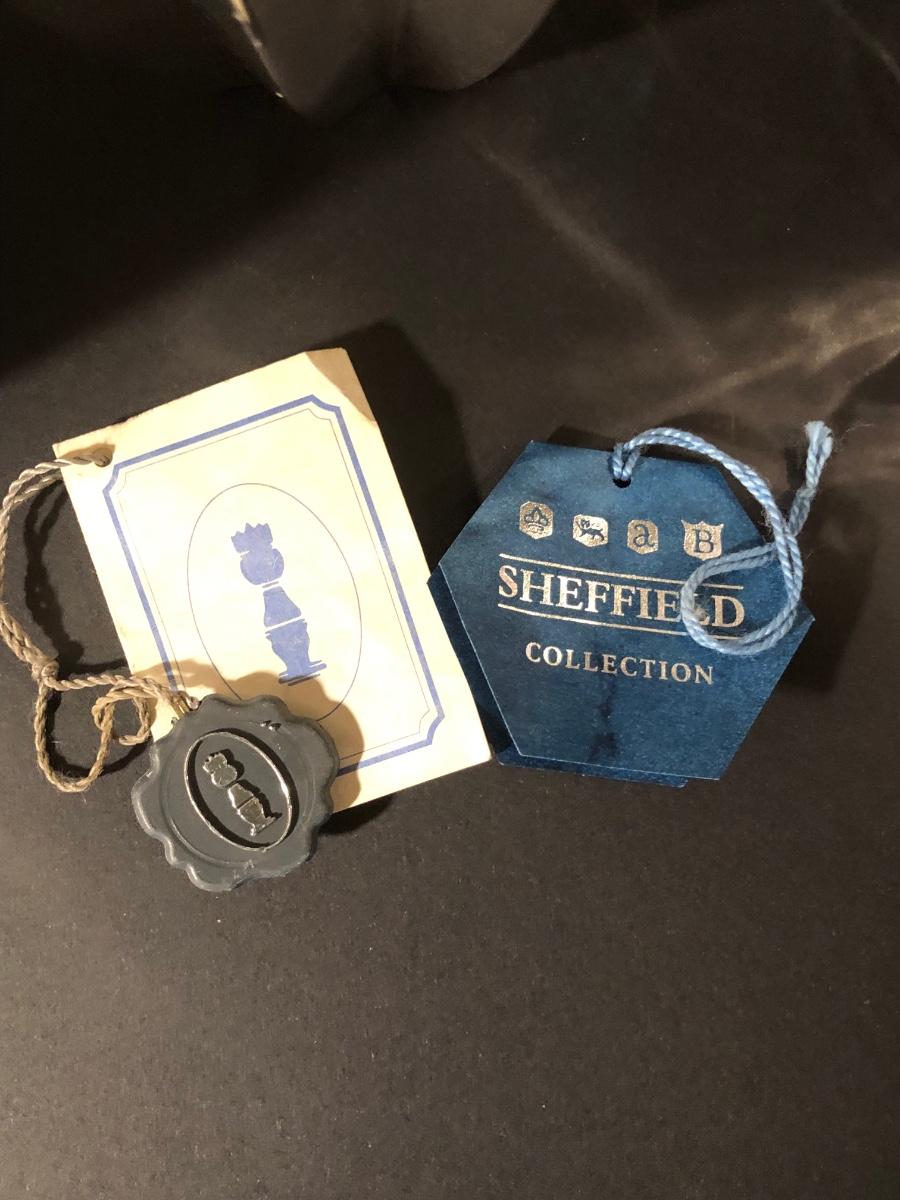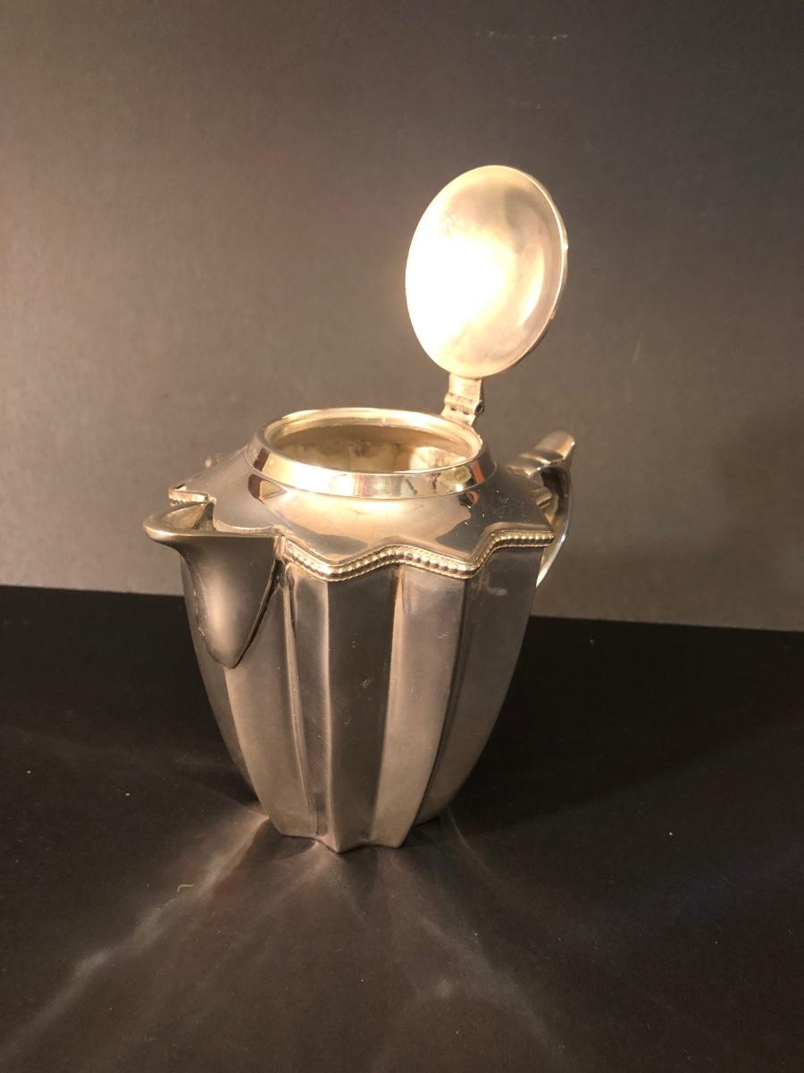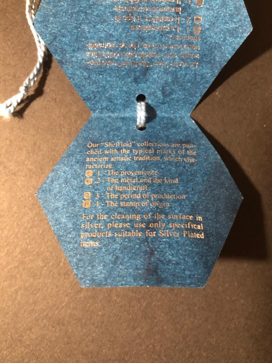 Includes a tea pot, sugar bowl, and spout for cream or milk. Includes small leaflet explaining how silver plate is marked for the Sheffield Collection.