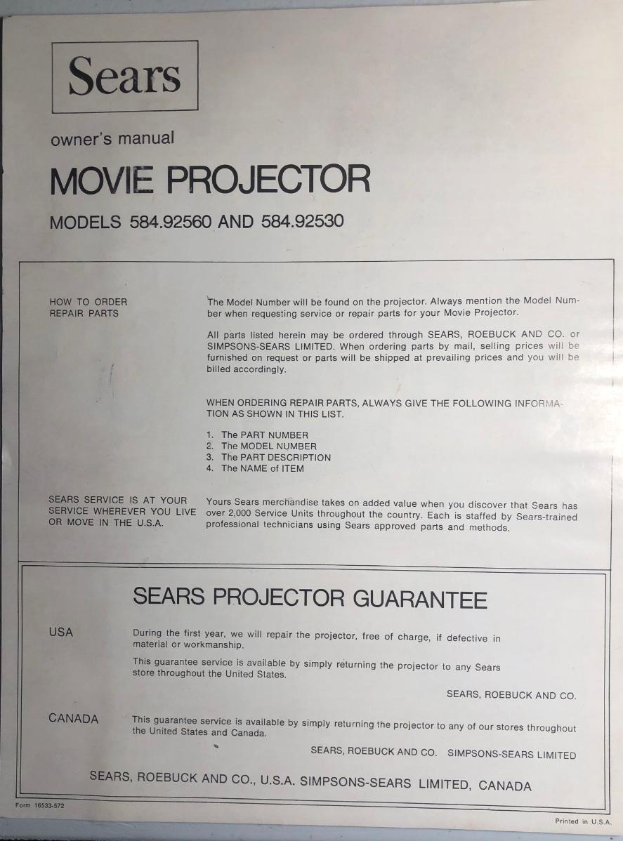LOT96M: Sears DU-All Movie Projector Model 584.92560 w/ Owner's Manual & Case