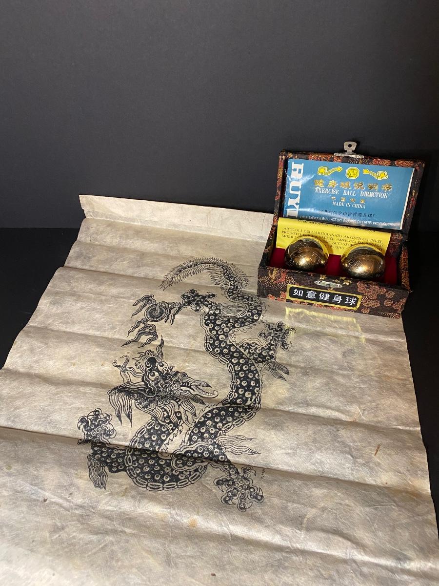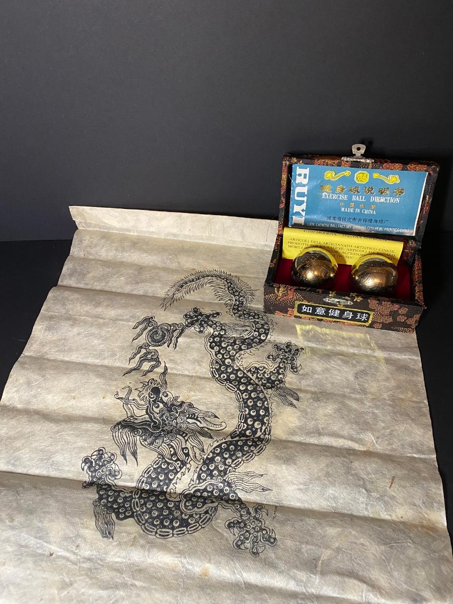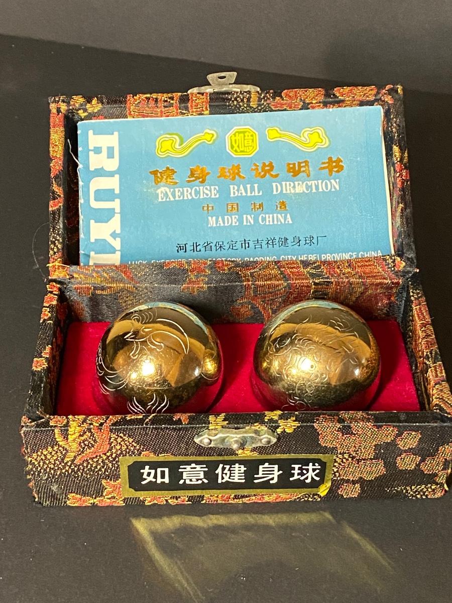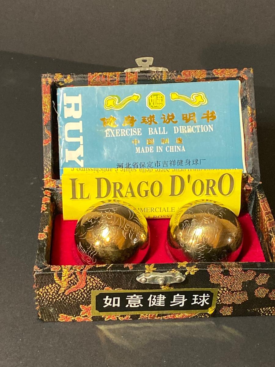LOT 109C: Vintage IL Drago D'orO Stress Relieving Chiming Meditation Relaxation Exercise Balls.& More
