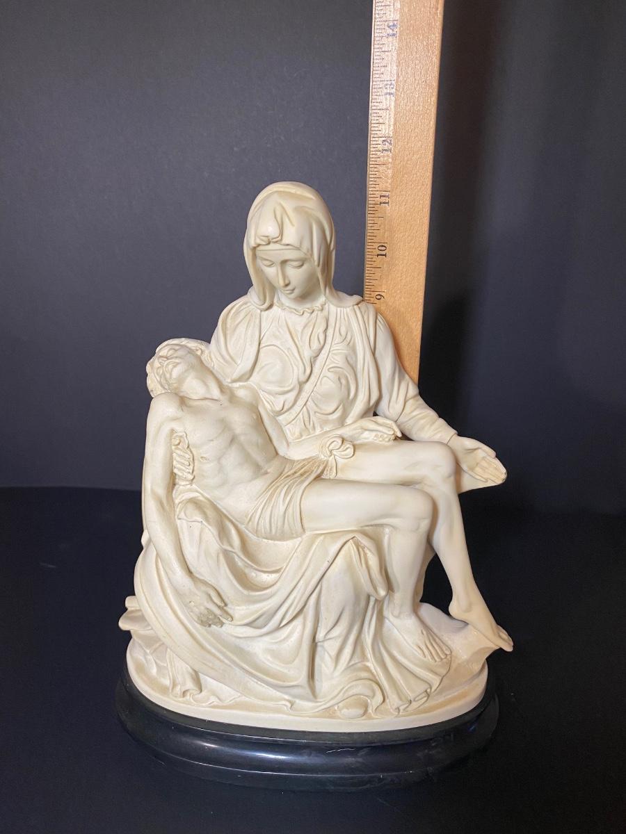 LOT 114: Vintage G Ruggeri Sculpture Statue " The Pieta" on Marble Base, Made in Italy