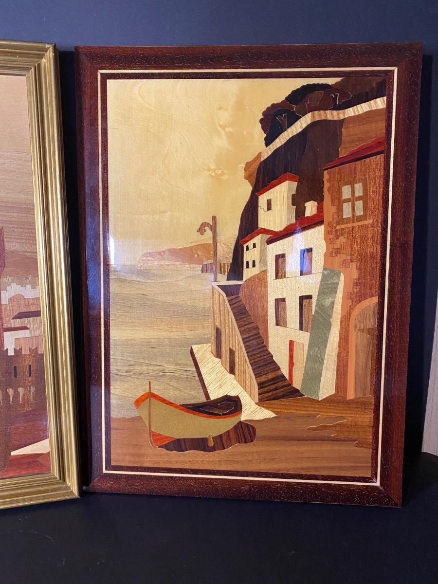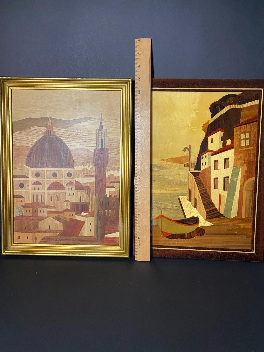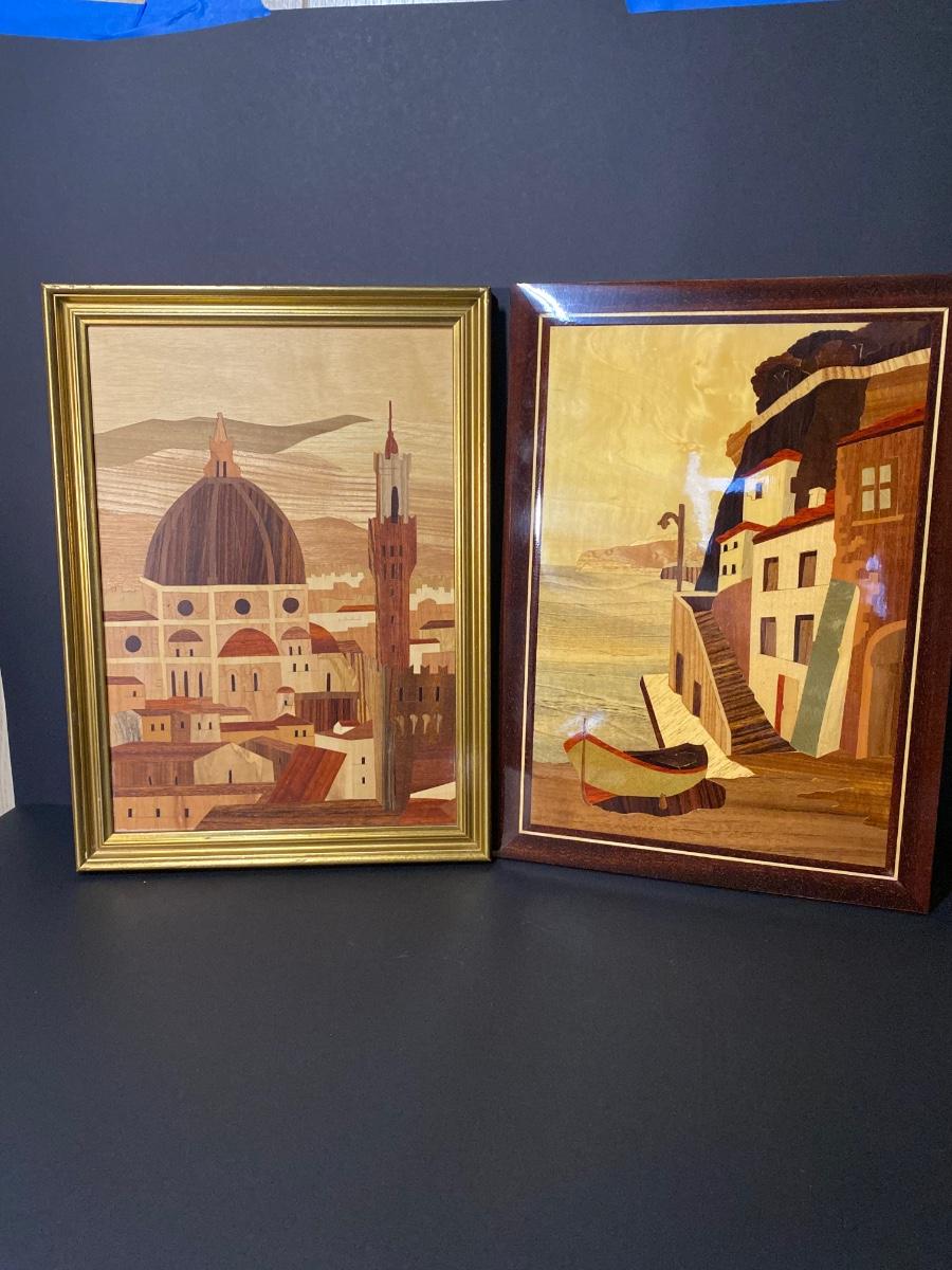 LOT: 116R: Vintage Inlaid Wooden Art