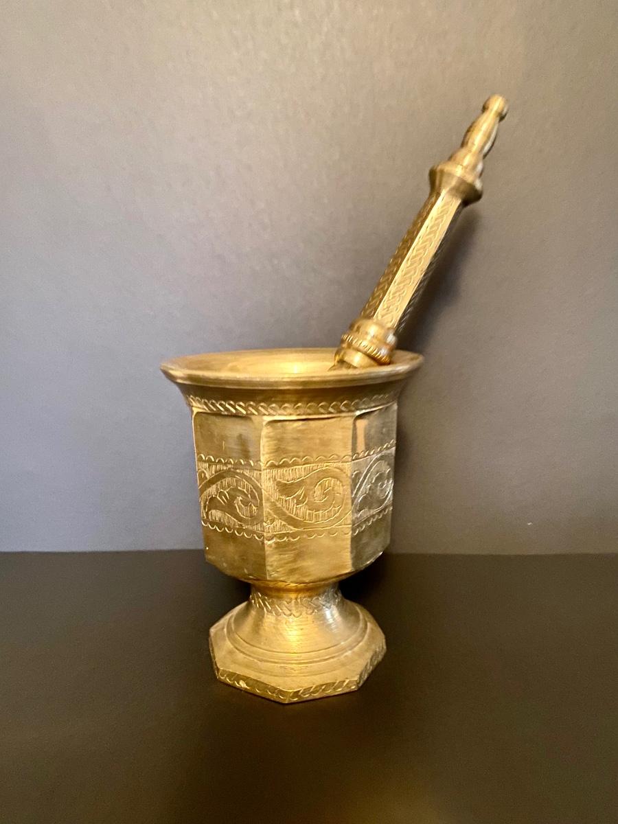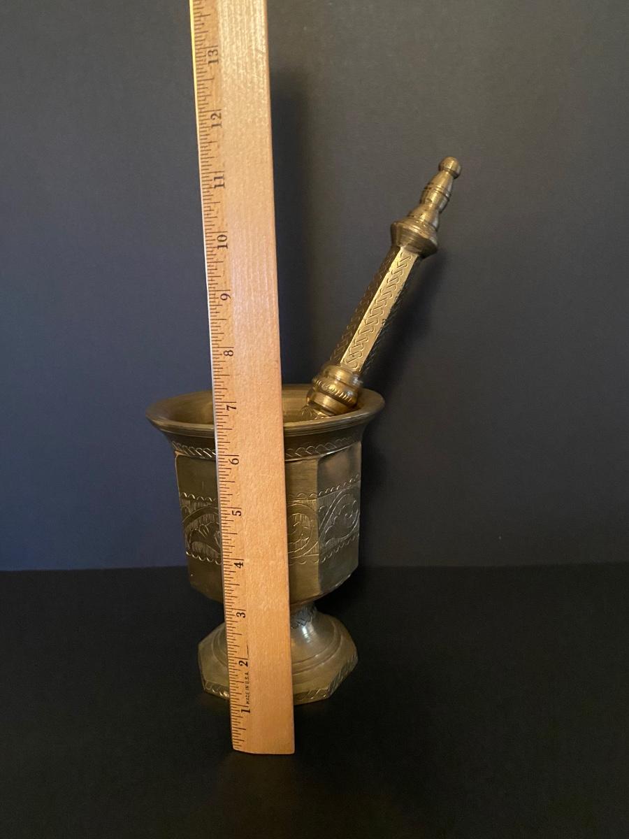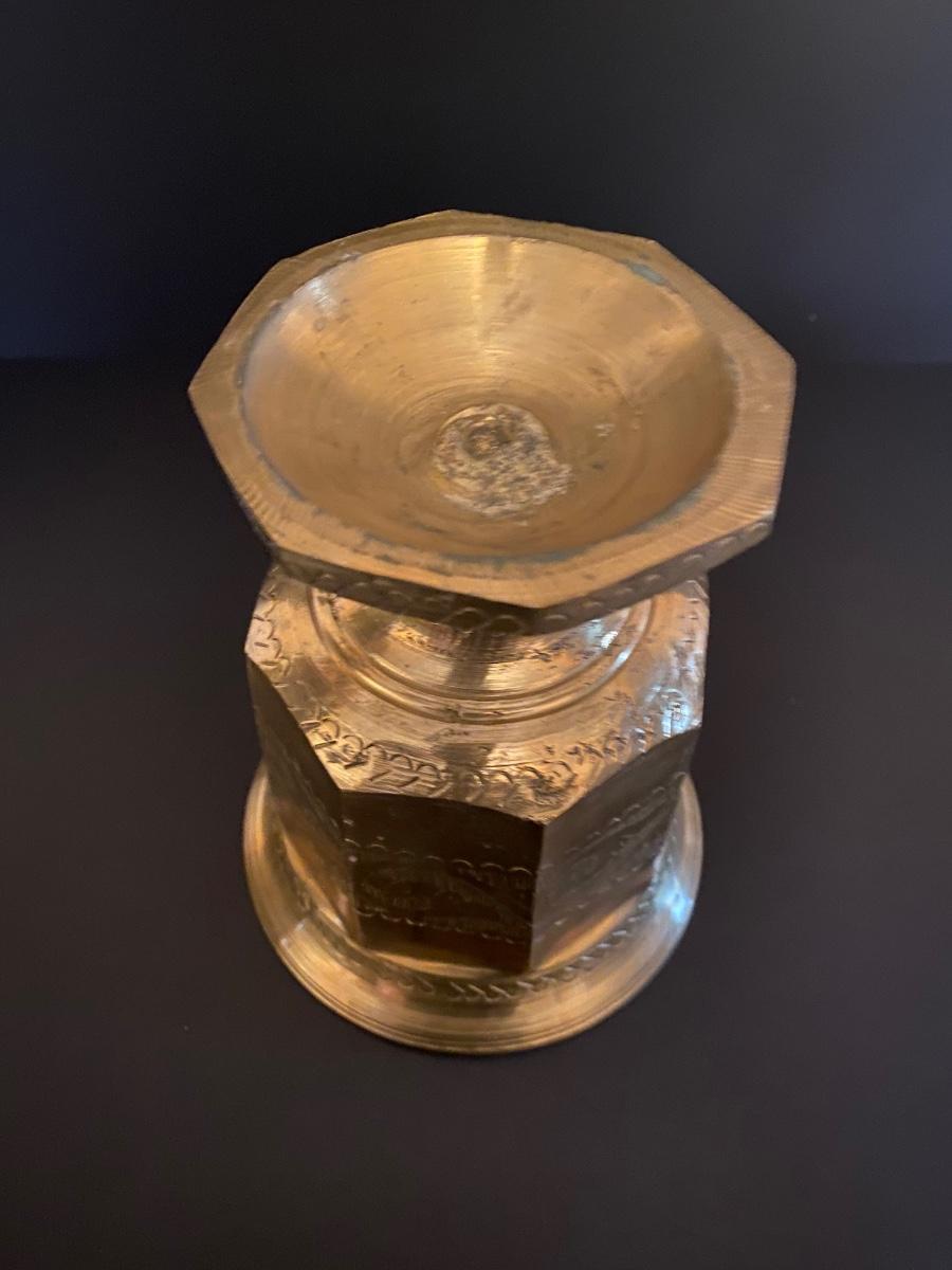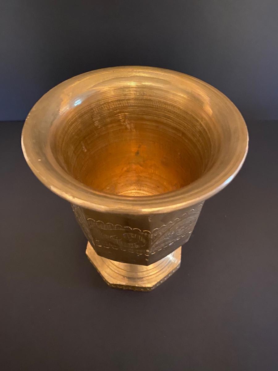 This is a heavy solid gold brass piece. Intricate carvings. Please see all pictures as they are the best representation of the items. The pictures show condition, measurements if taken, and what is included in the lot. Due to the large amount that we photograph and the time frame, we are not always able to take measurements. All items unless noted, are pre-owned and have been used. If you purchased furniture, you must bring help. We do not allow one person to carry large furniture out on their own. Bring help, tools and a truck for the safety of our client’s homes, and your personal safety. Any damages that result to the property including walls, and floors due to moving of the furniture will be charged to the buyer. Company policy. Thank you.