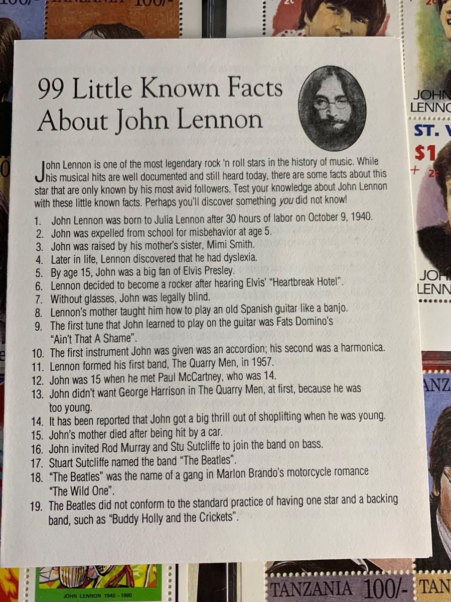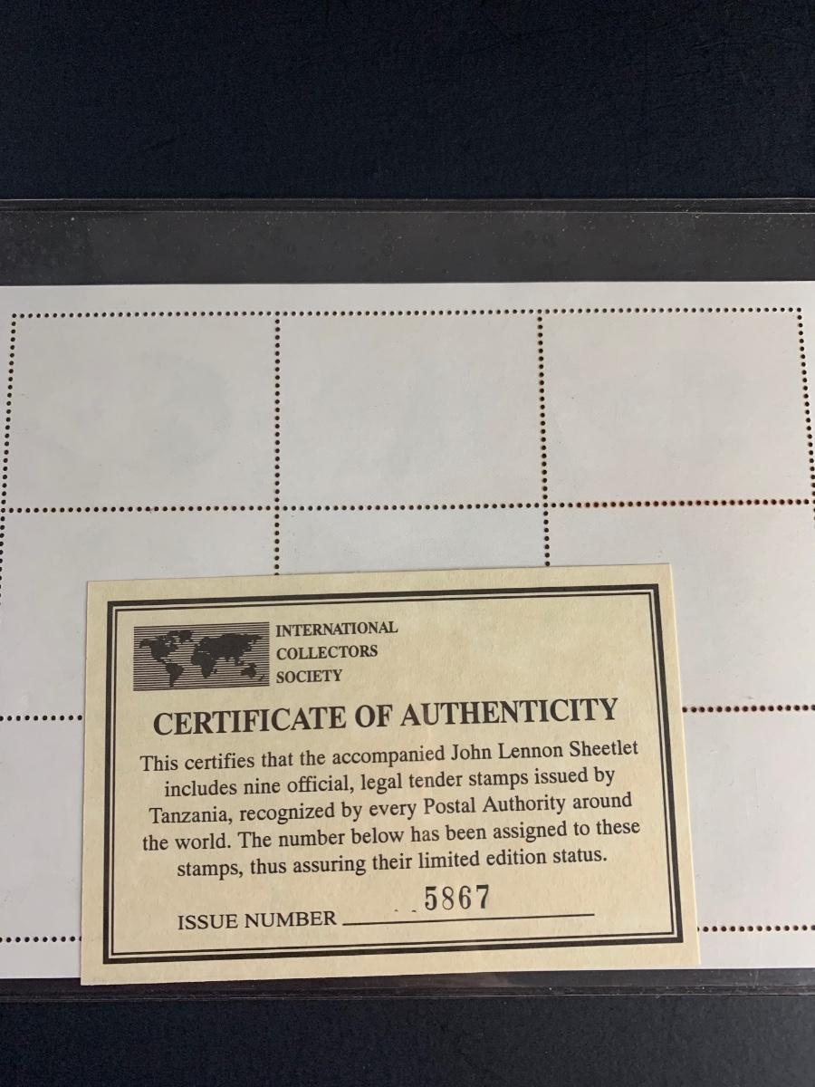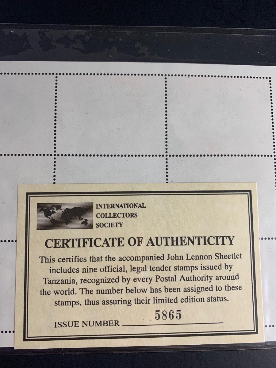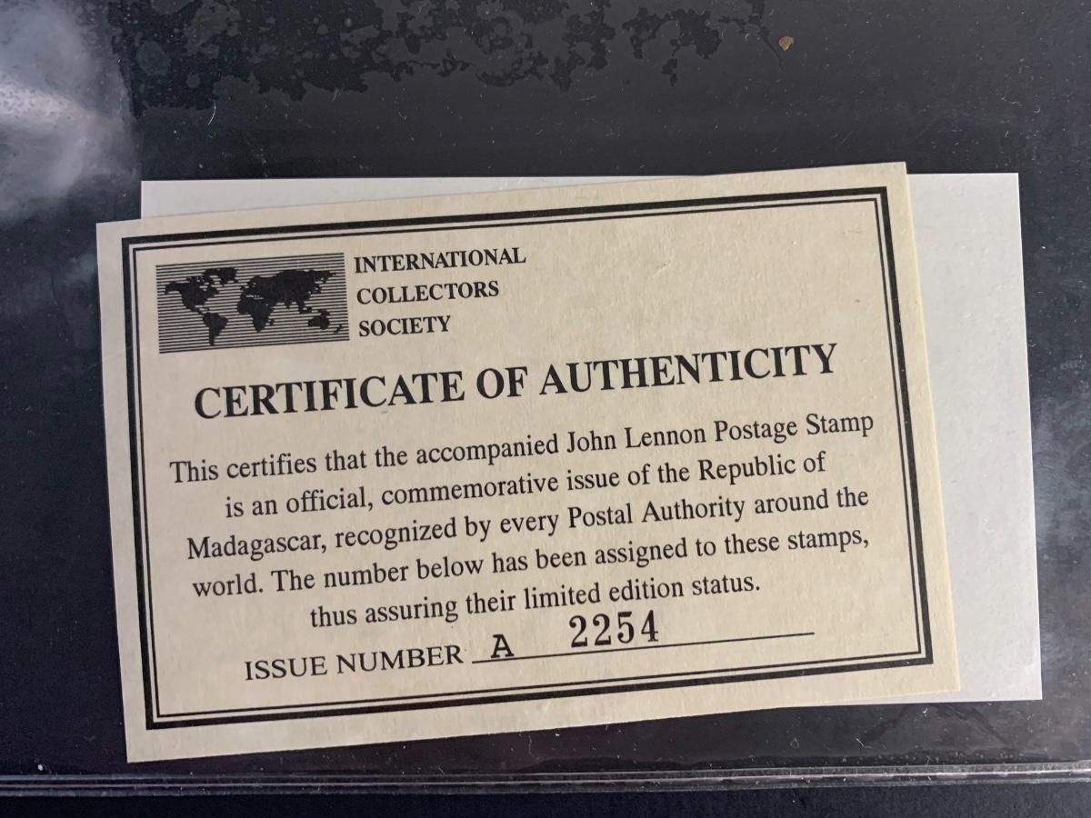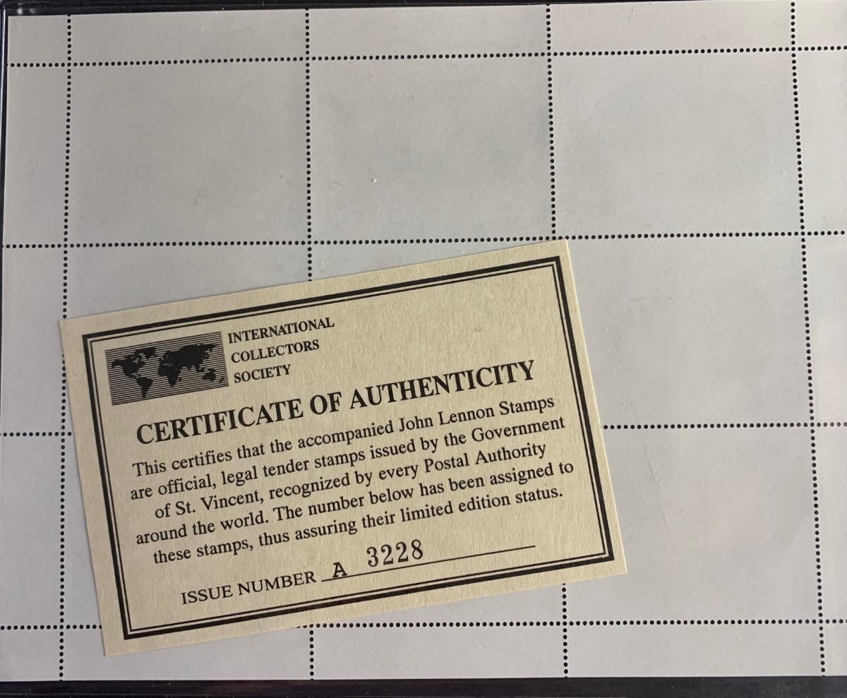 LOT 124R: Foreign Collector Stamps: John Lennon Collection w/COA