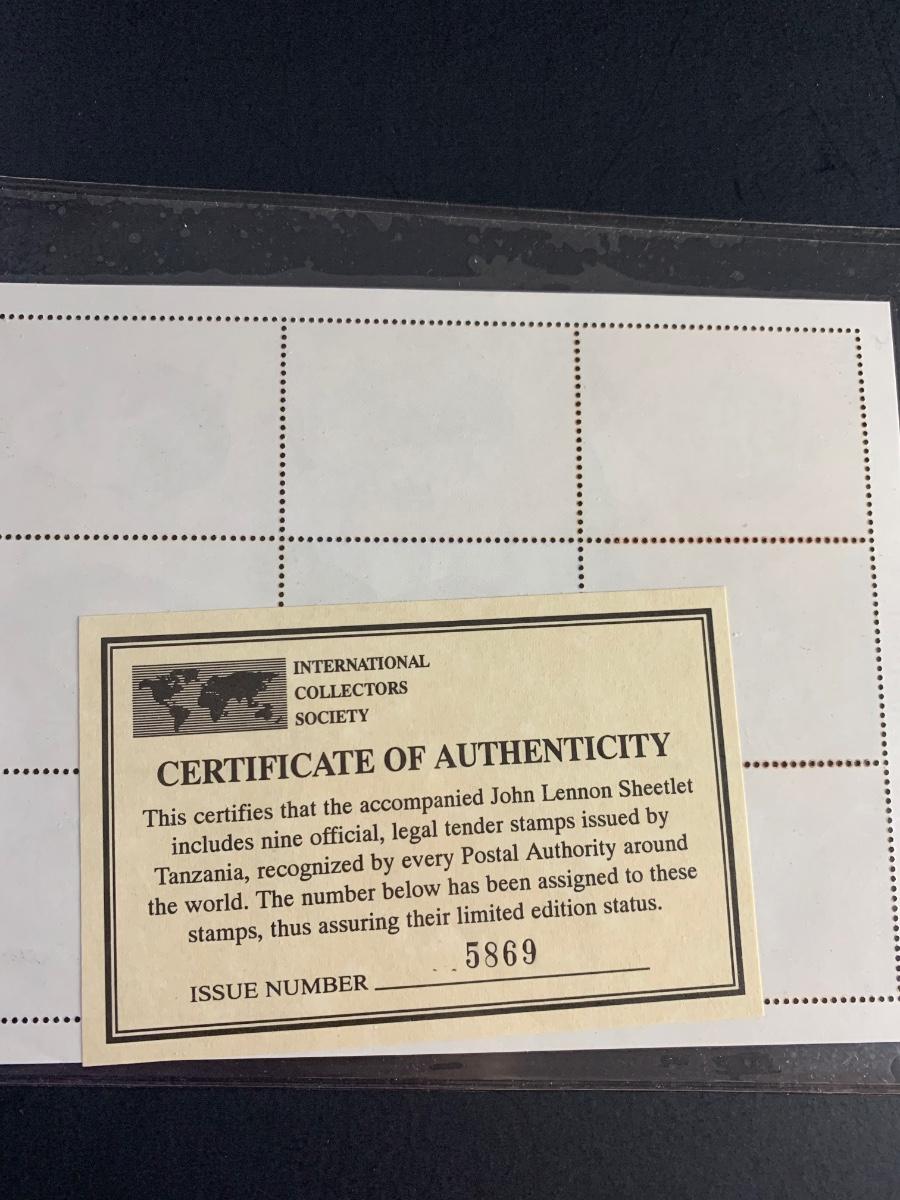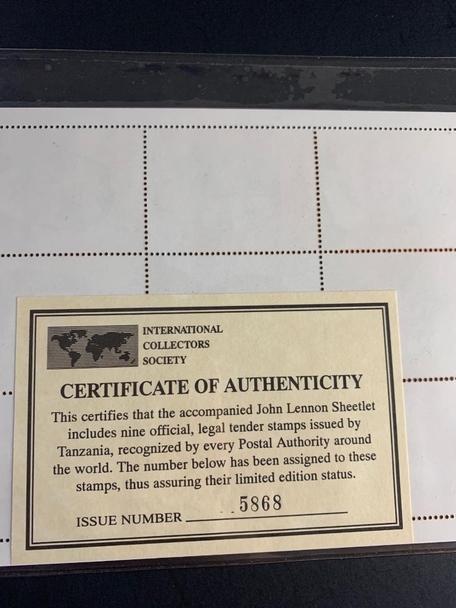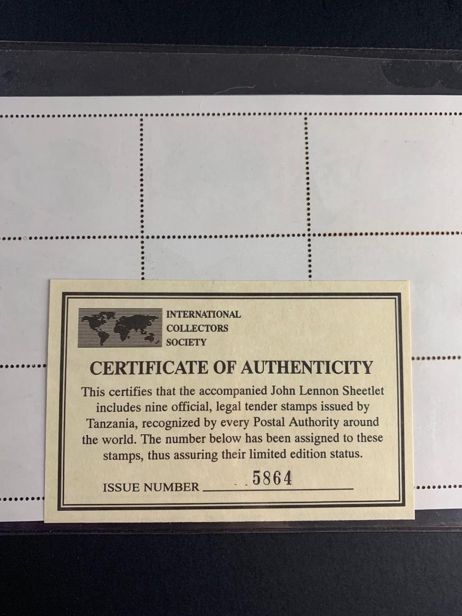 LOT 125R: Tanzania Foreign Collector Stamps: John Lennon Collection w/COA