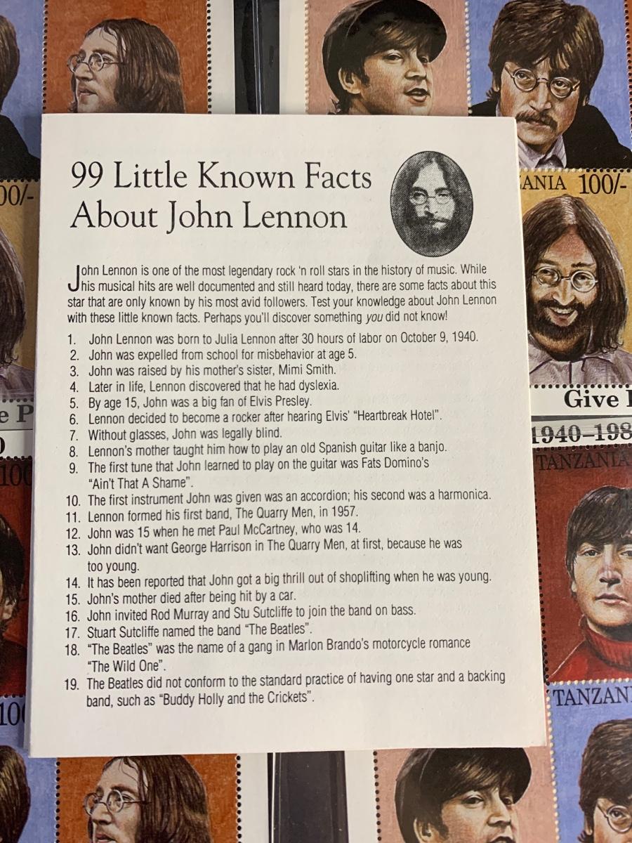LOT 125R:  Tanzania Foreign Collector Stamps: John Lennon Collection w/COA