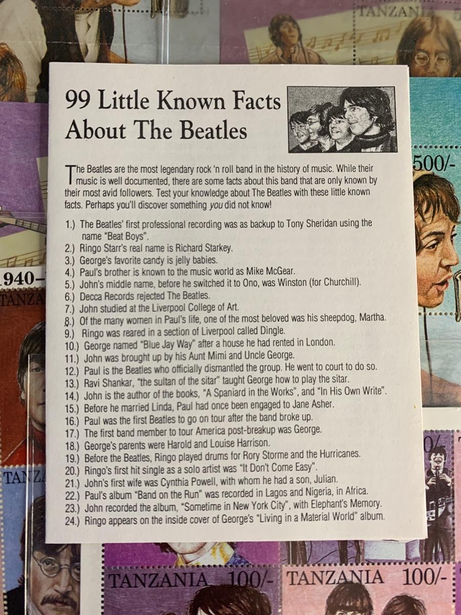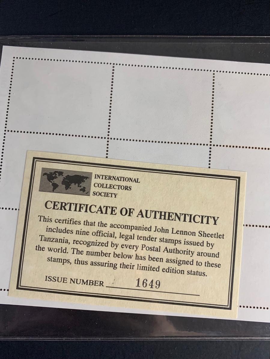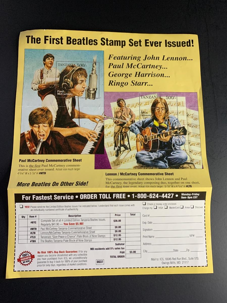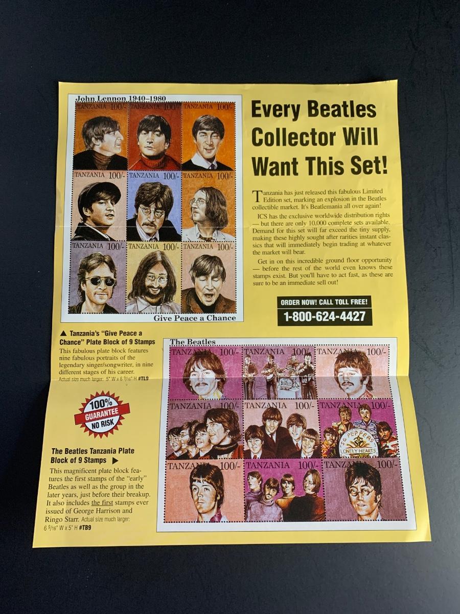 LOT 125R: Tanzania Foreign Collector Stamps: Beatles Collection w/COA