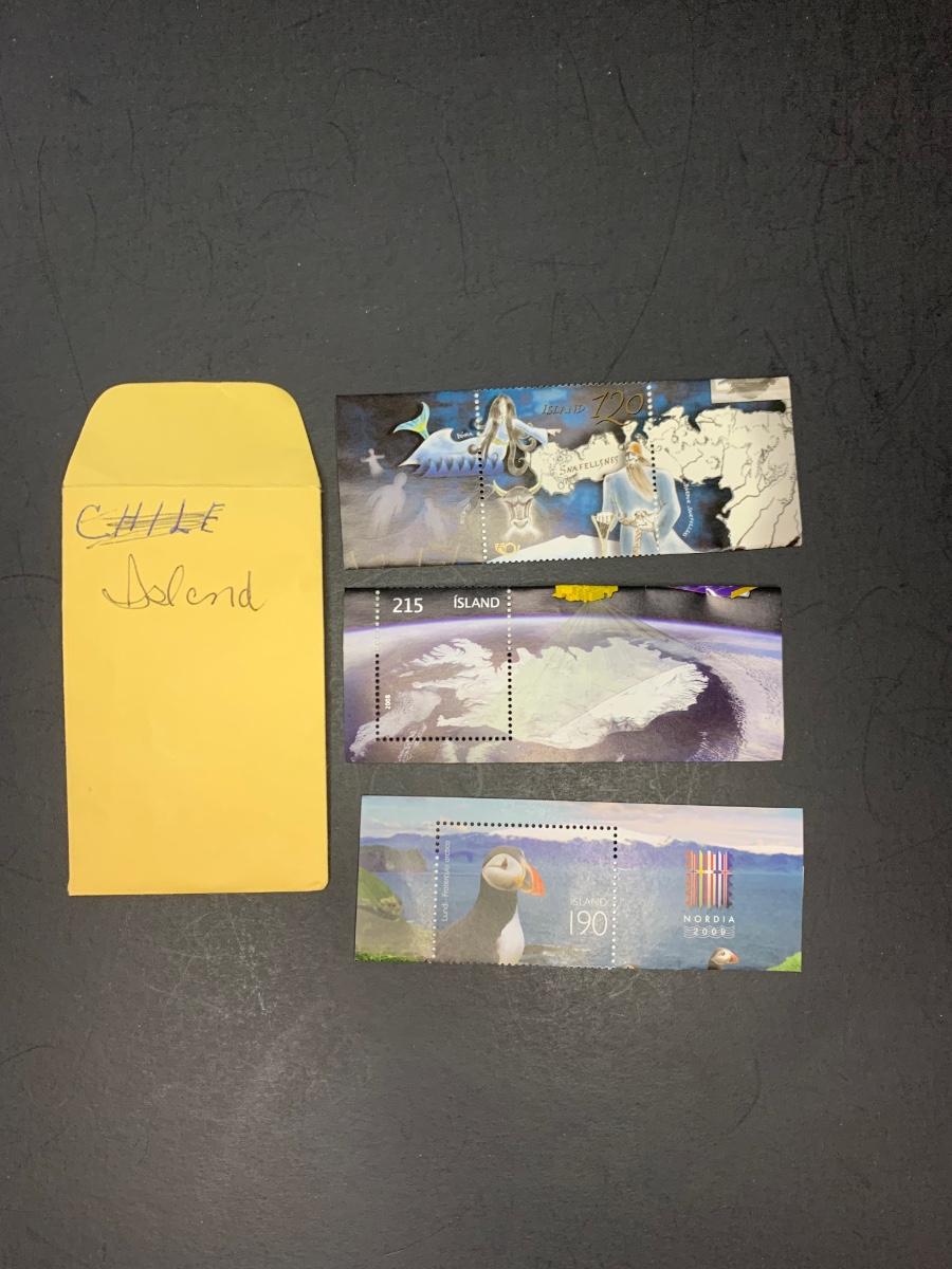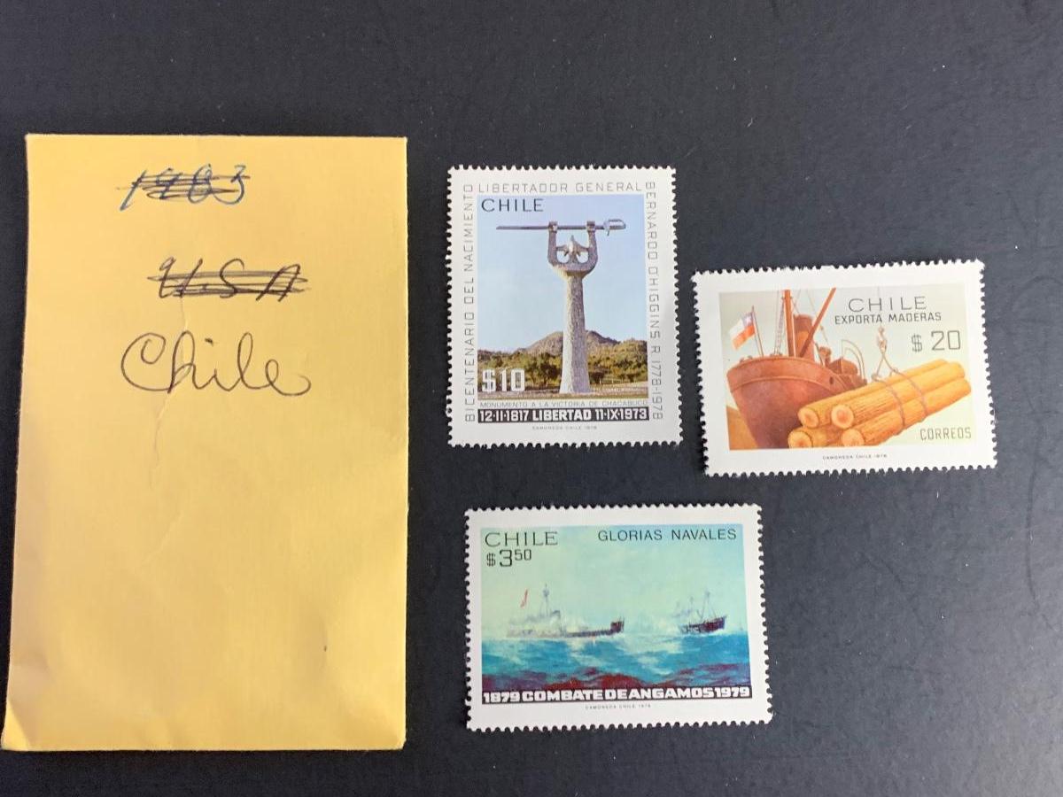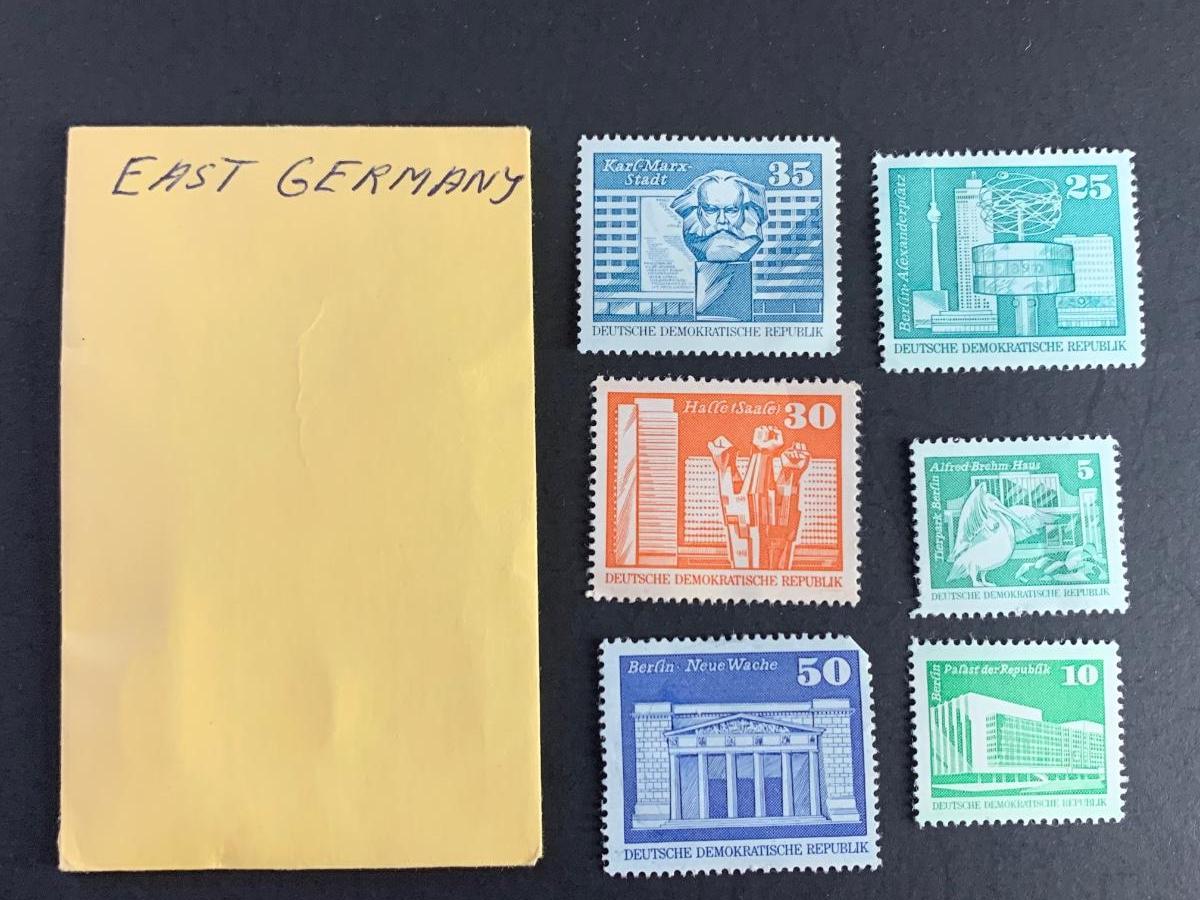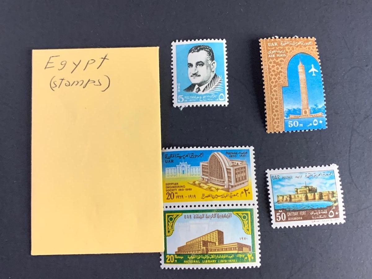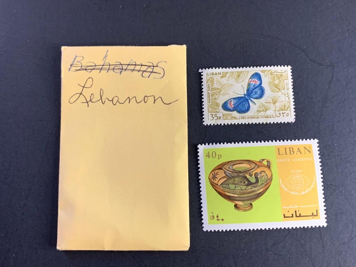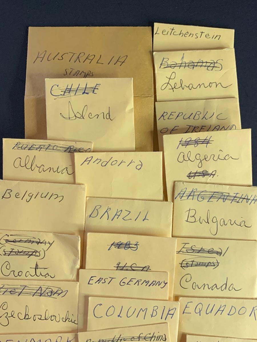 Each envelope picture contains unused foreign stamps. The country of origin is noted on each envelope and the number of stamps in the envelope in unknown.
