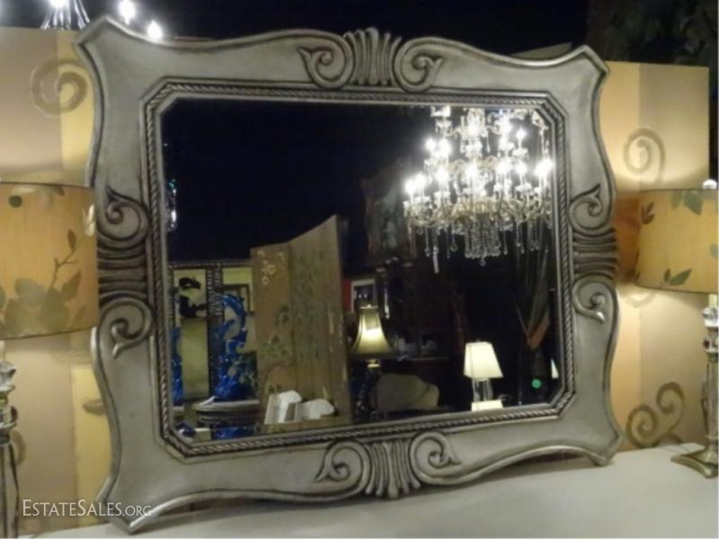 LOT 81A: LARGE SILVER FINISH WOOD MIRROR, EXCELLENT CONDITION 48" X 40", SKU133.06