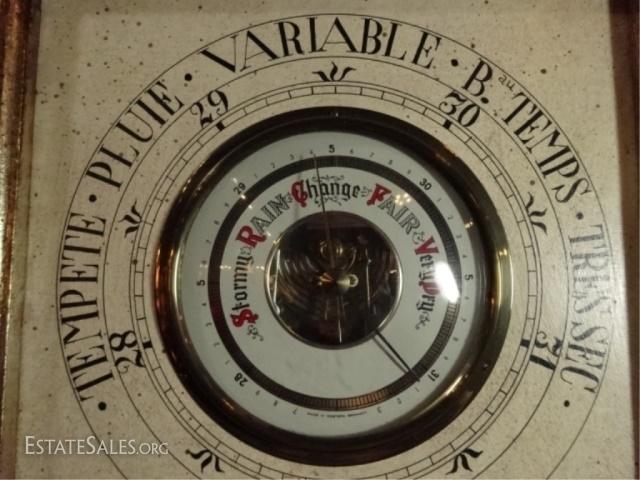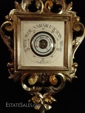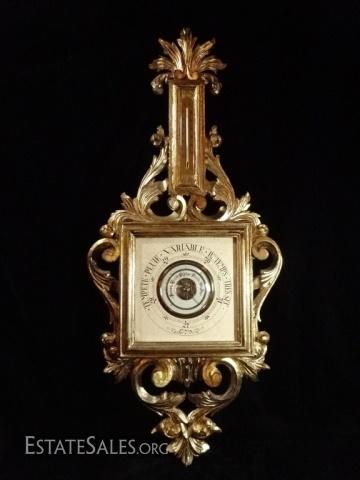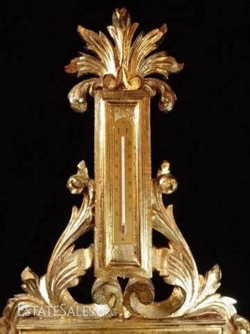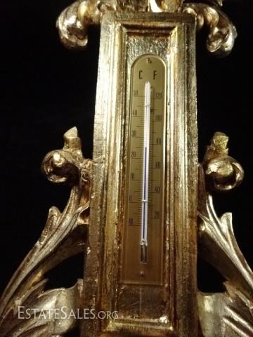 LOT 81D: BAROMETER / THERMOMETER, GOLD FINISH CARVED WOOD FRAME, APPROX 33.5" X 15.5"