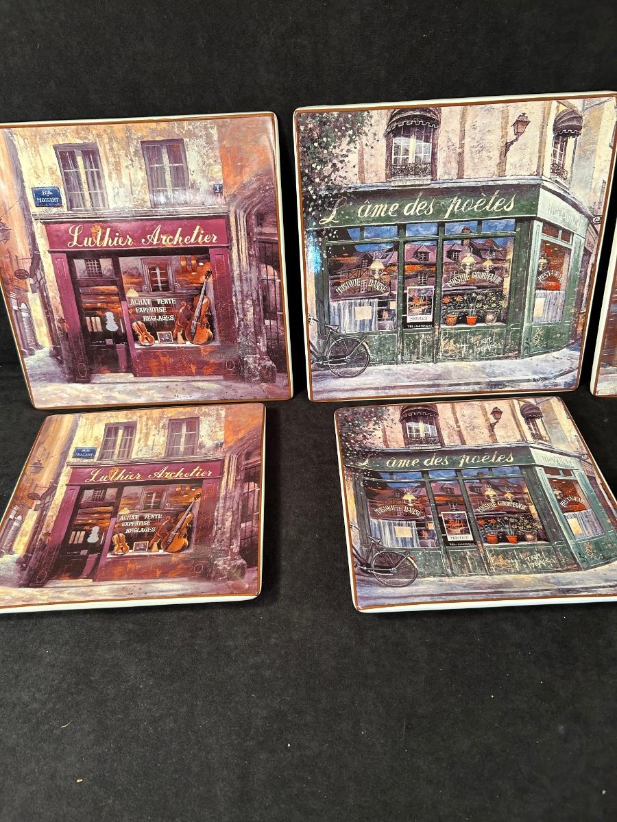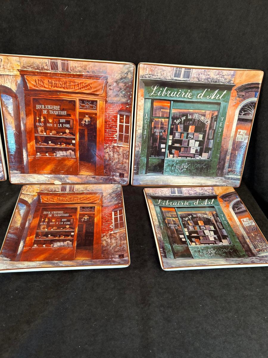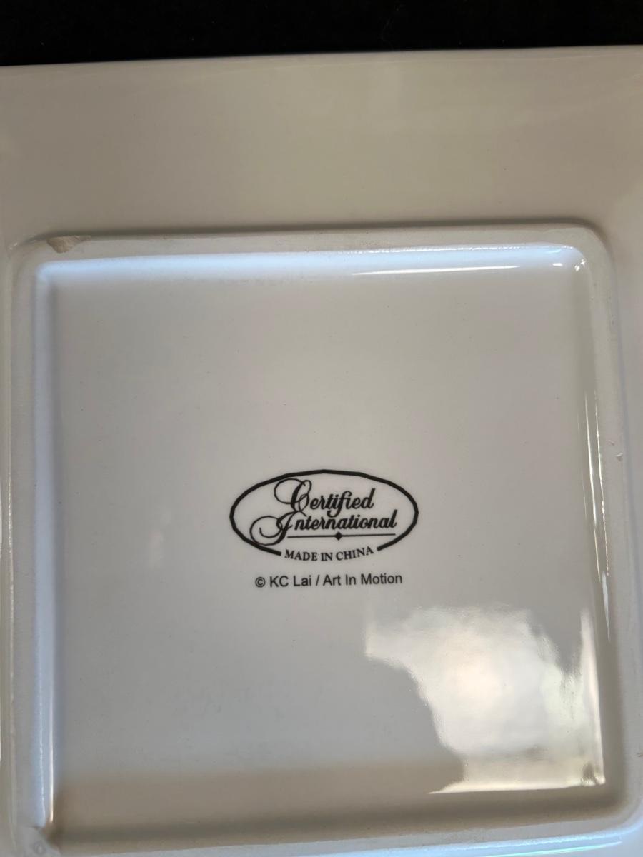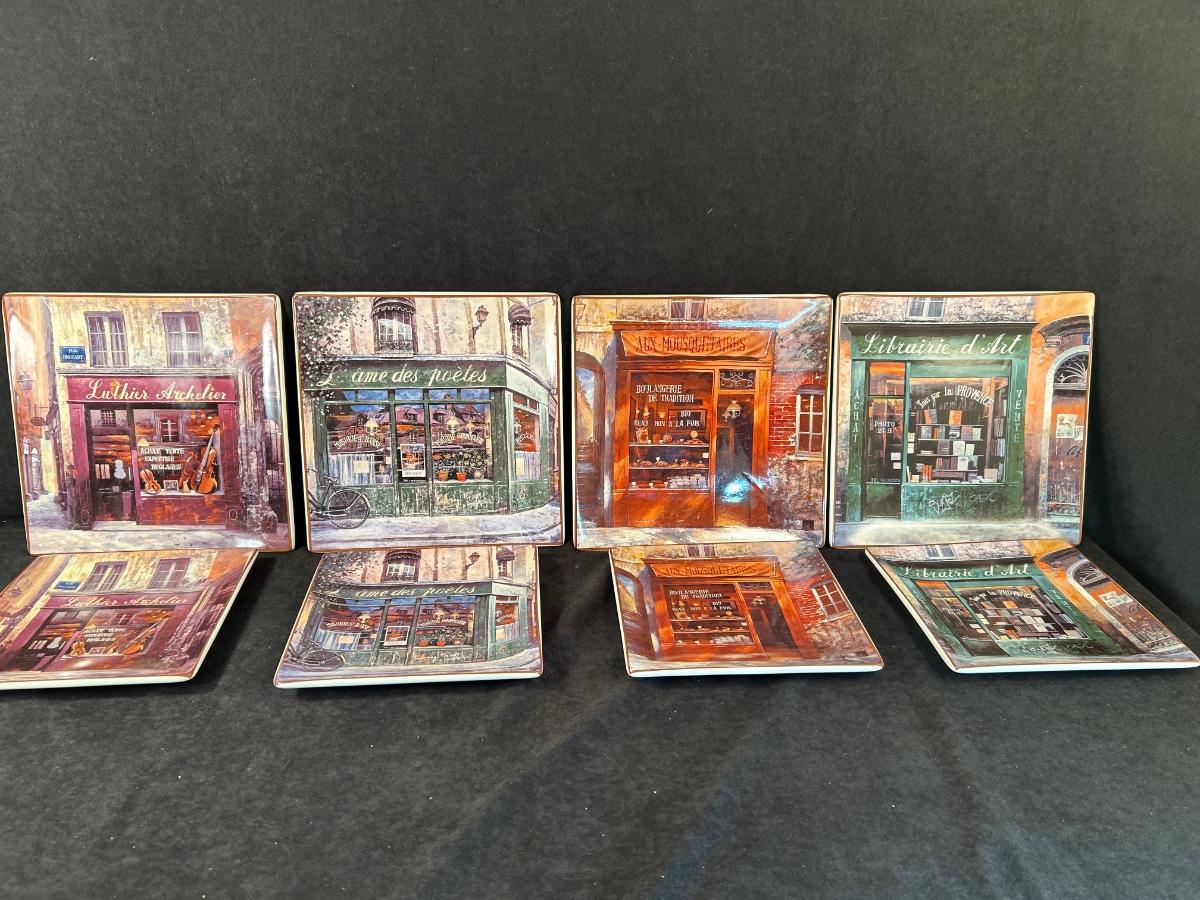 8 pcs. four dinner plates and four salad plates. one has a small chip