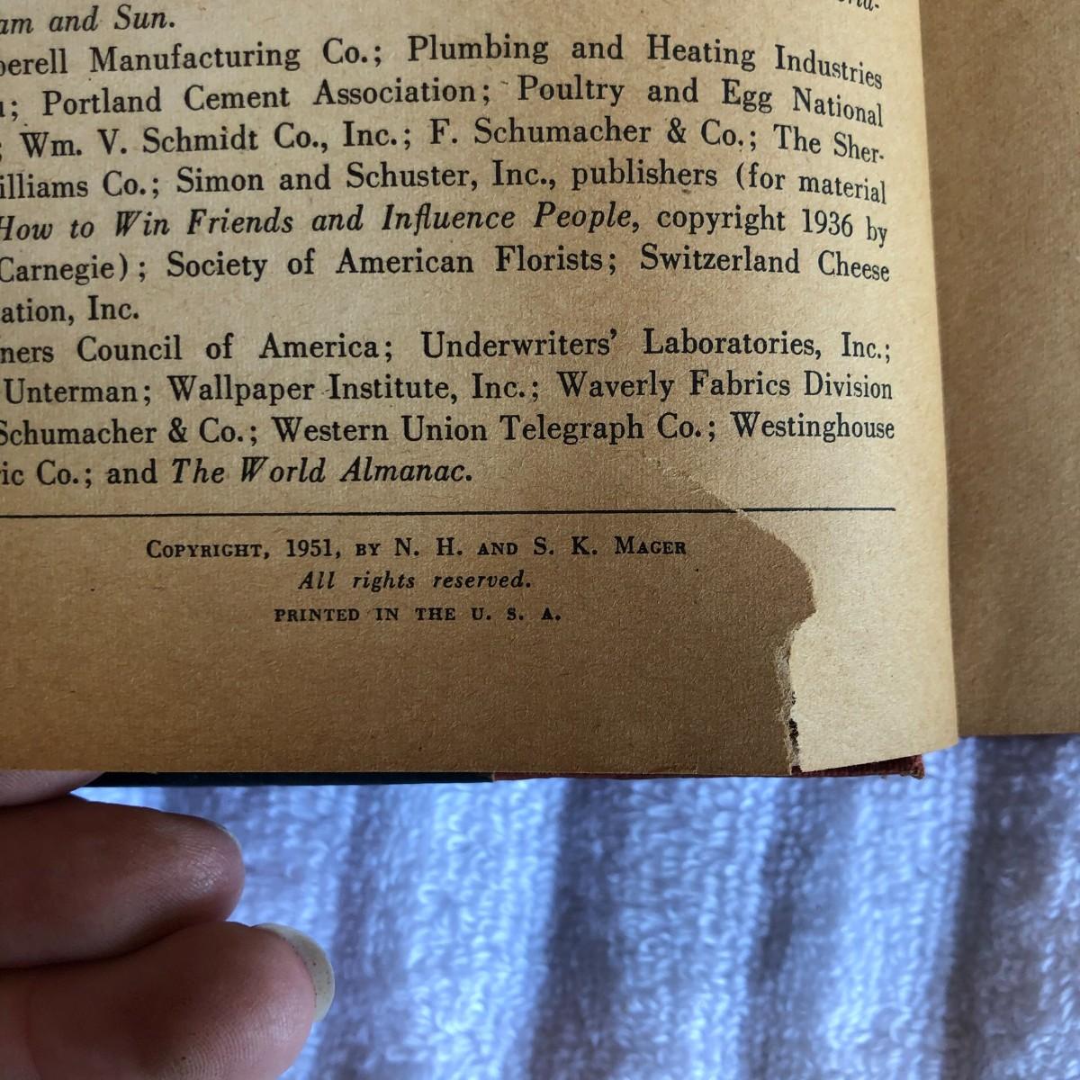 I found one tear in the front and the pages are discolored from time, but otherwise in very good condition. Great resource for all of those summer "to-do" projects.
