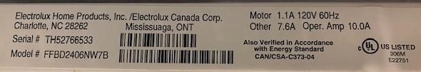 Model FFBD2406NW7B.