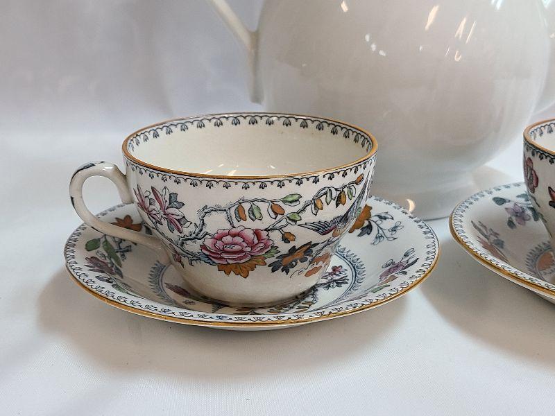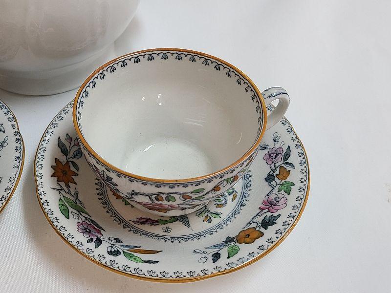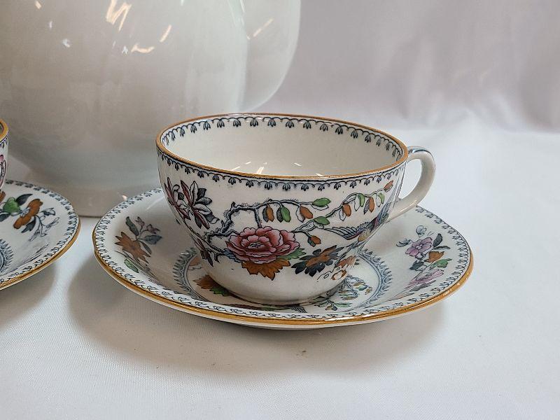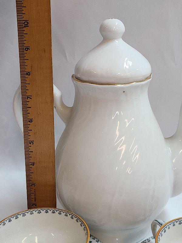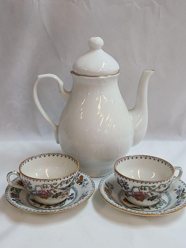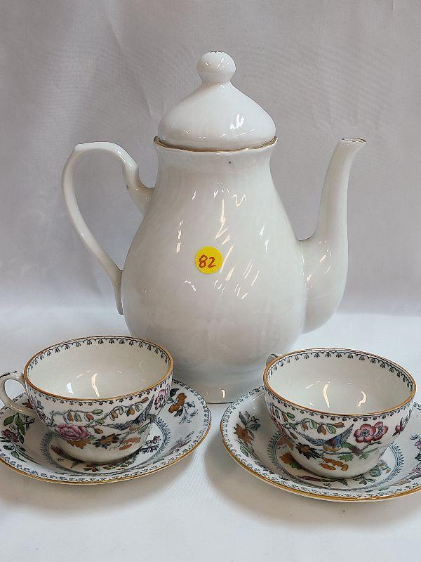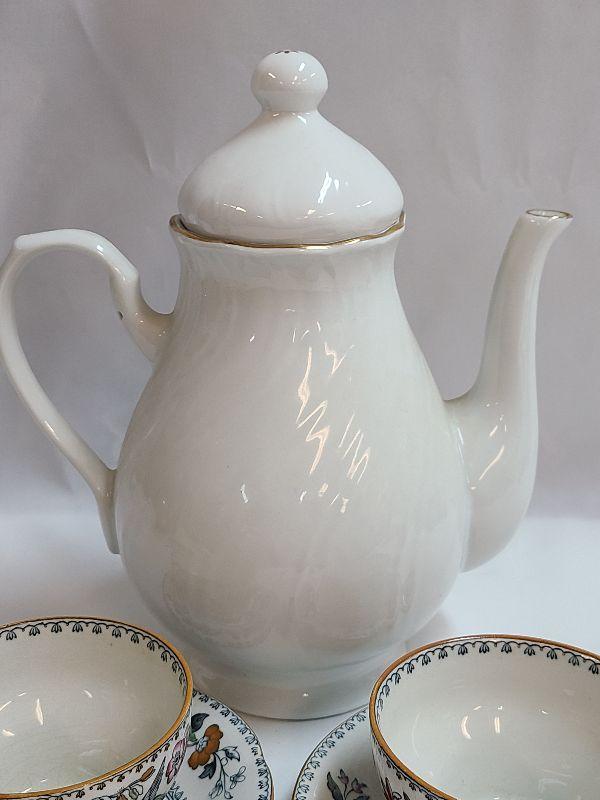 Teapot is not English, teacups are. Great for afternoon tea! Please see all pictures for the exact contents of the lot, condition, and measurements when needed. Thank you for looking and have fun bidding!