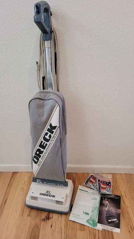 Lot 82: Vintage ORECK XL Vacuum Cleaner w/ Accessory Belts + Manual TESTED A+