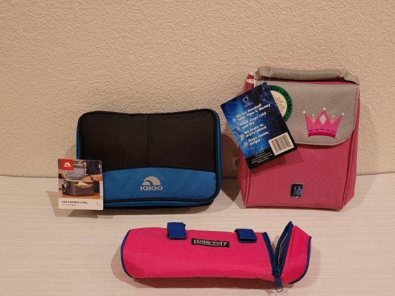 Lot 82: New Crown Lunch Box, Igloo Collapsible 6 Pack Cooler & Lands End Water BottleBag