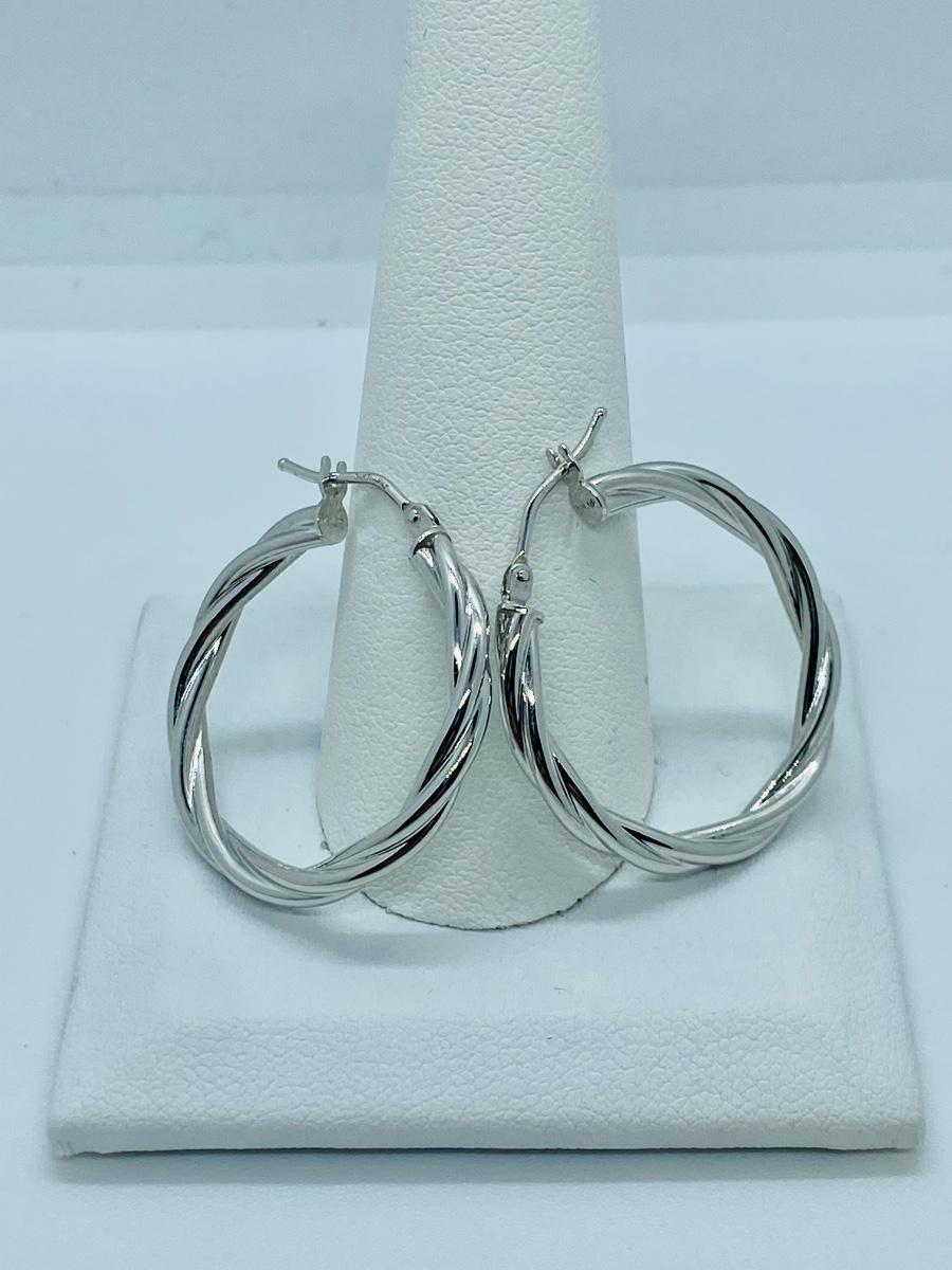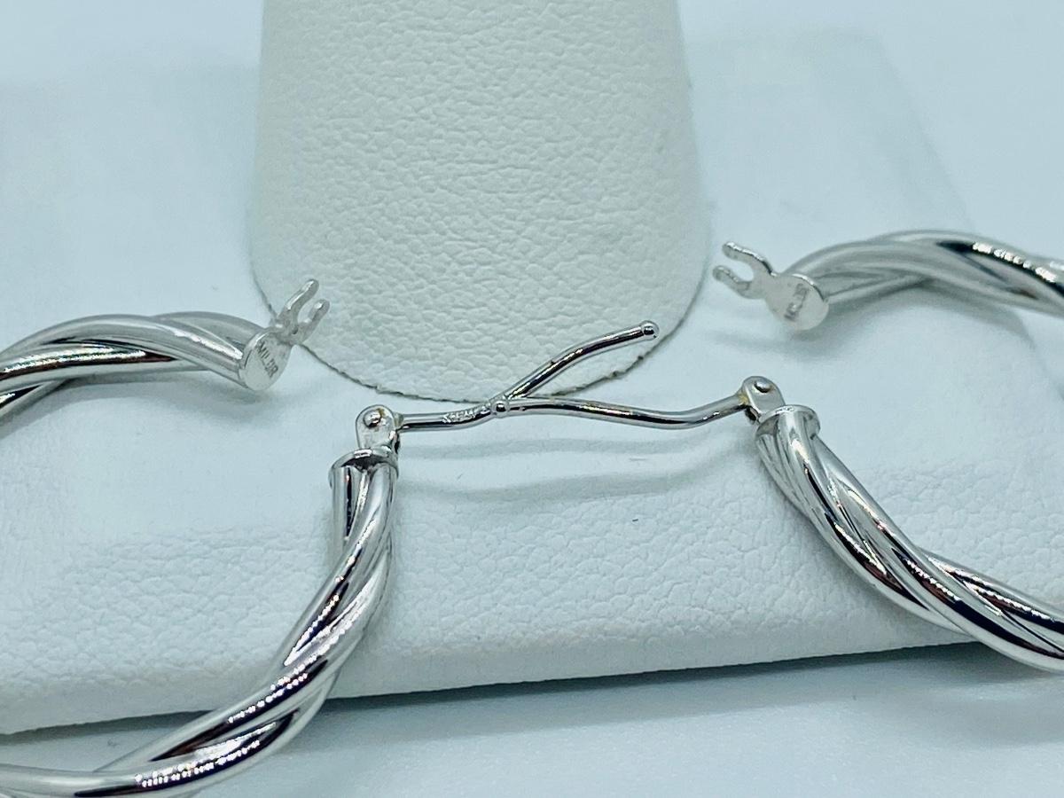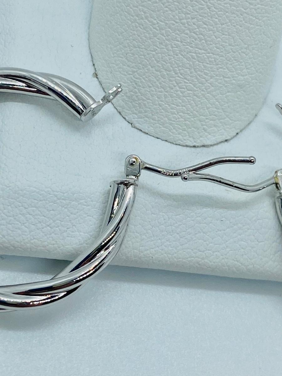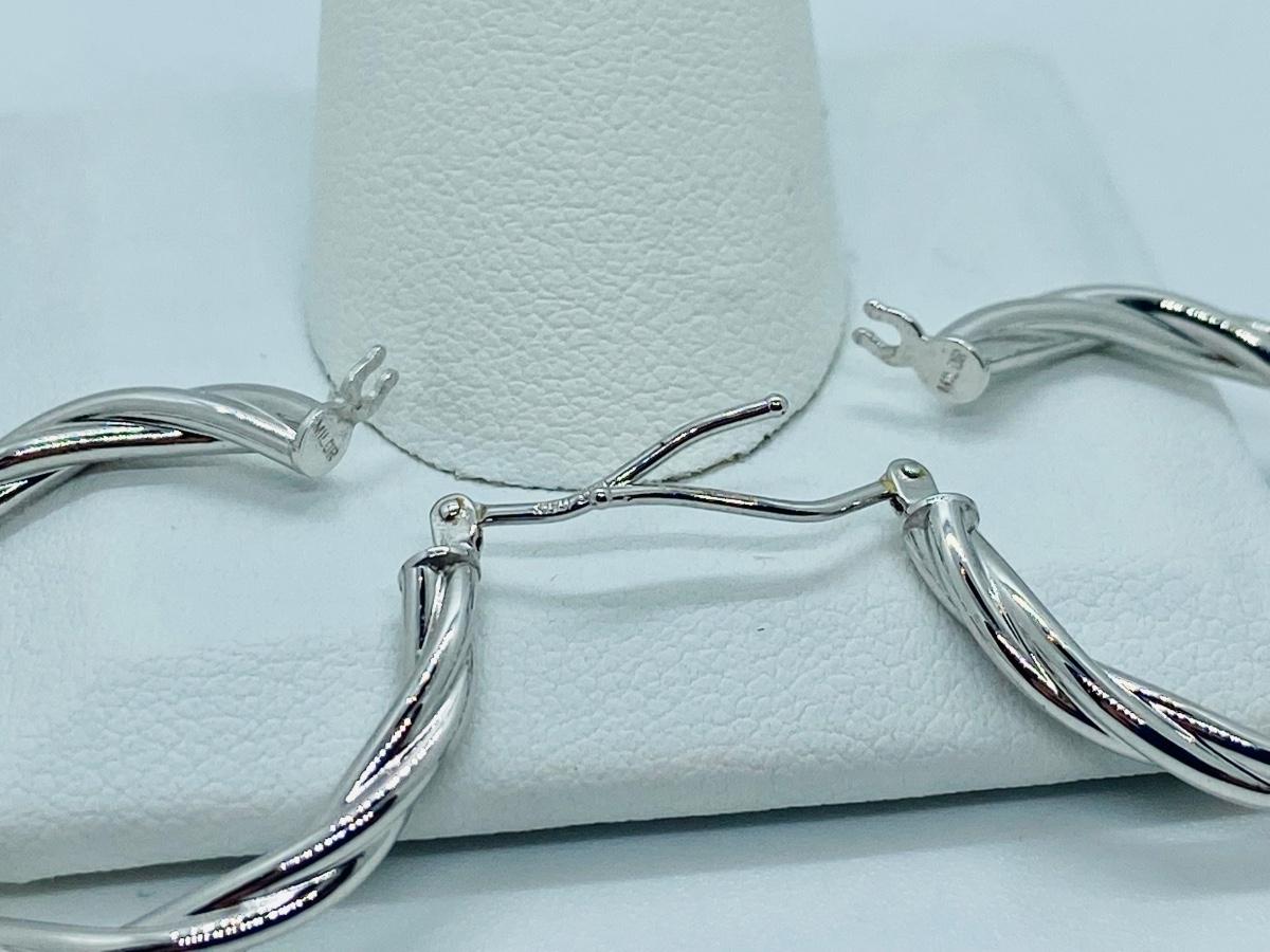 Lot 82: 14k White Gold Milor Italy Pierced Twisted Hoop Earrings