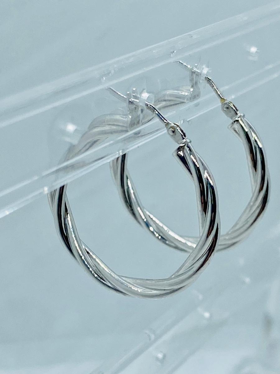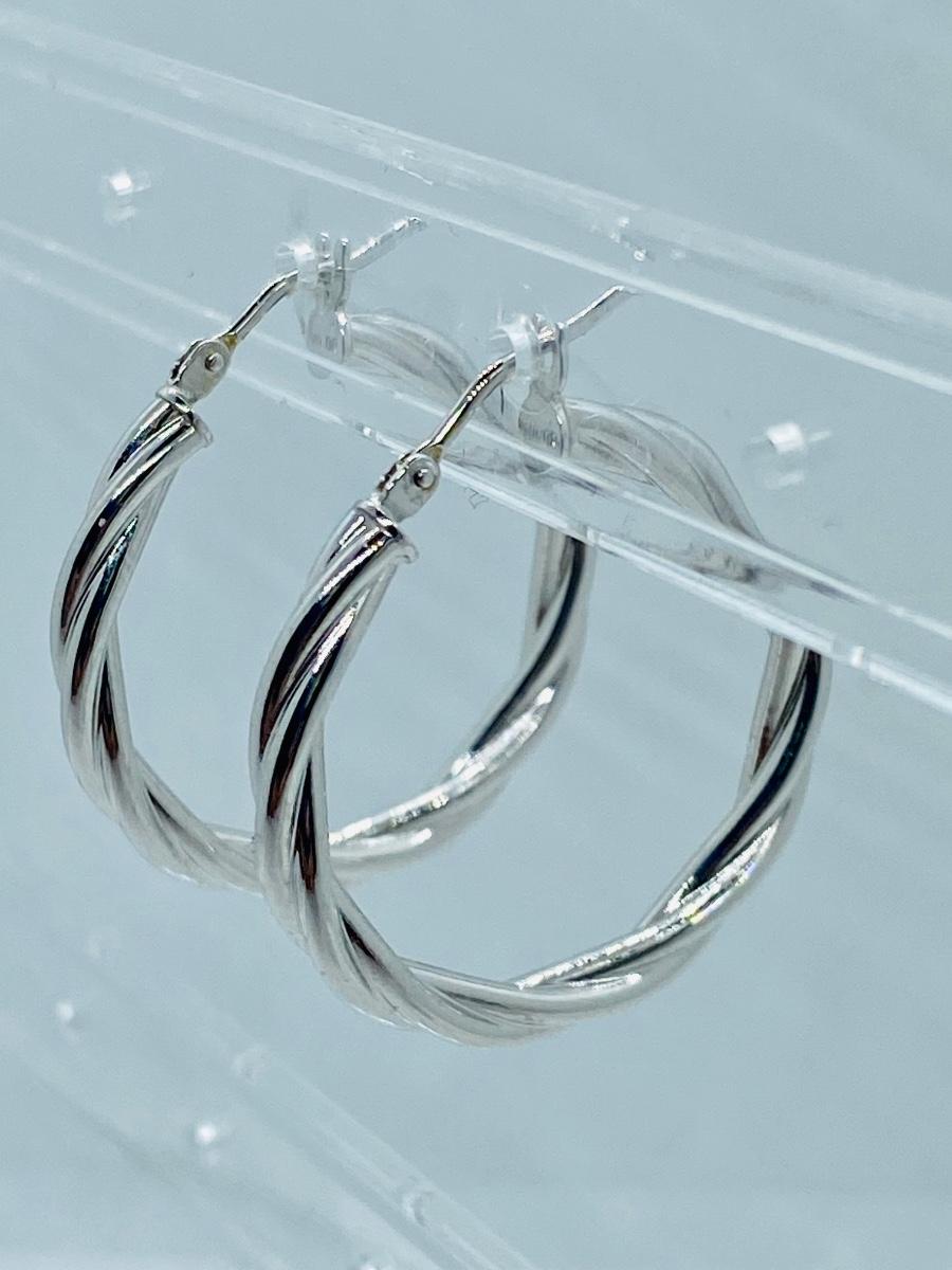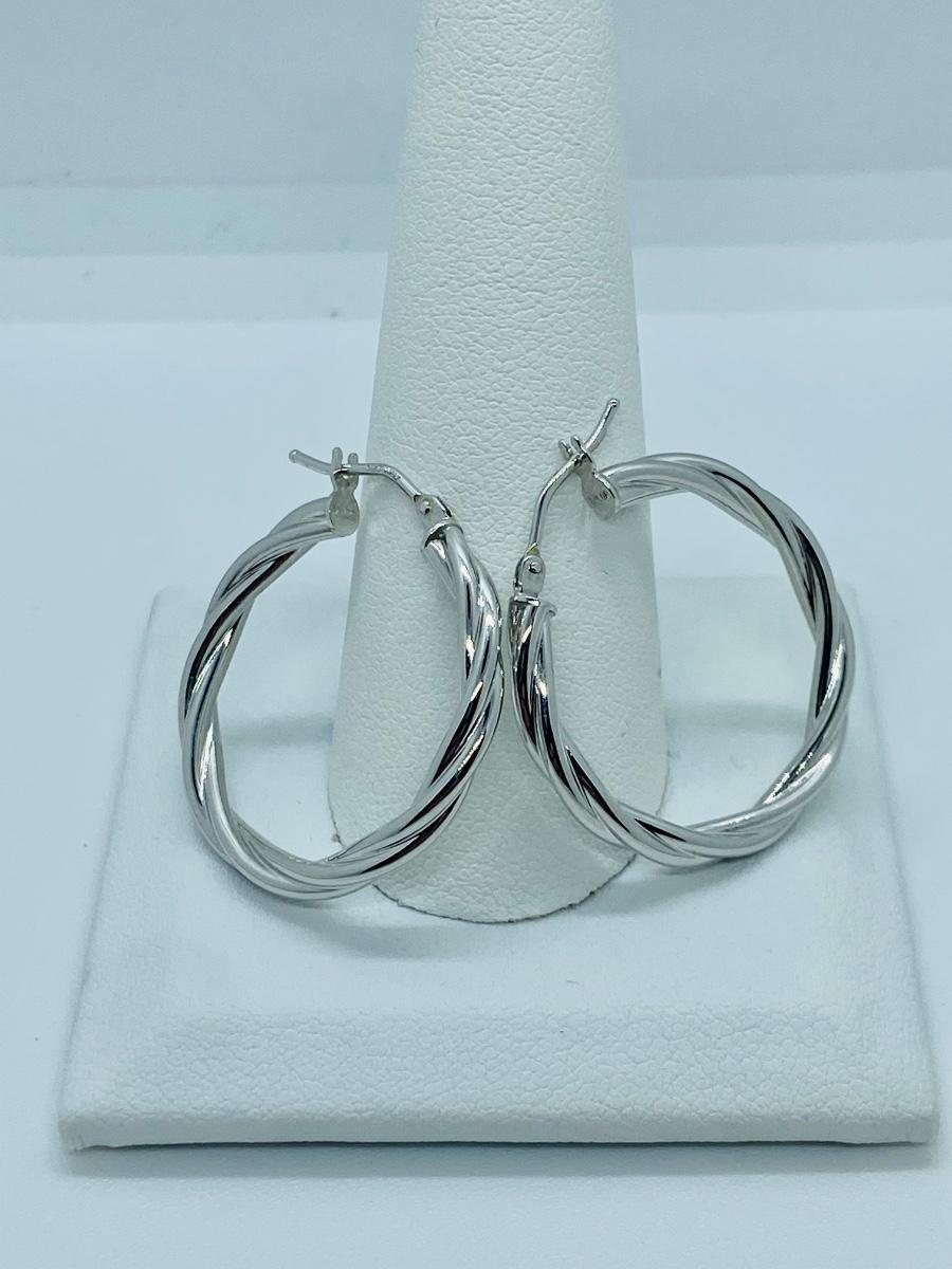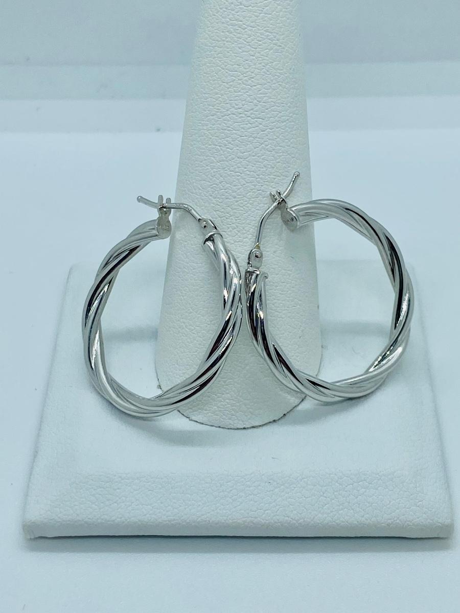 Lot 82: 14k White Gold Milor Italy Pierced Twisted Hoop Earrings