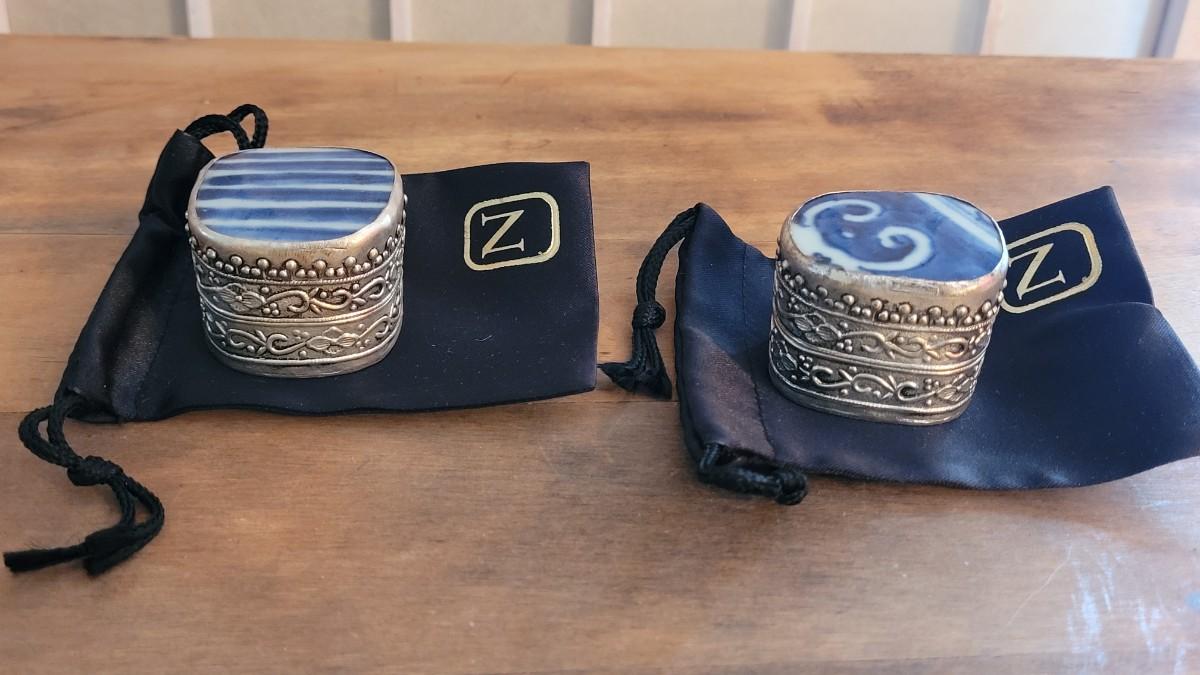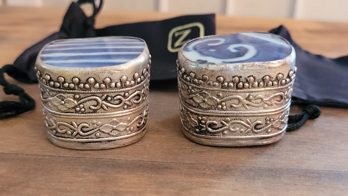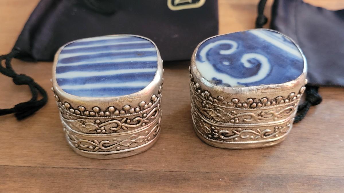 Lot 82: (2) Metal & Tile Trinket Boxes