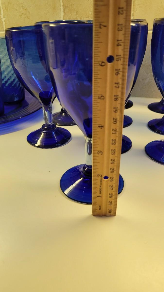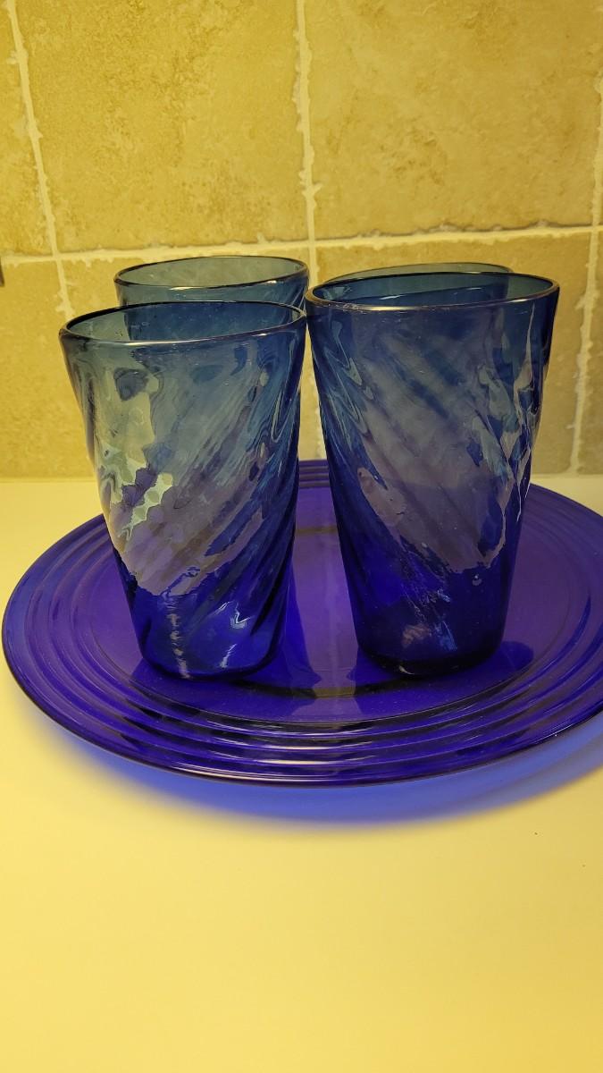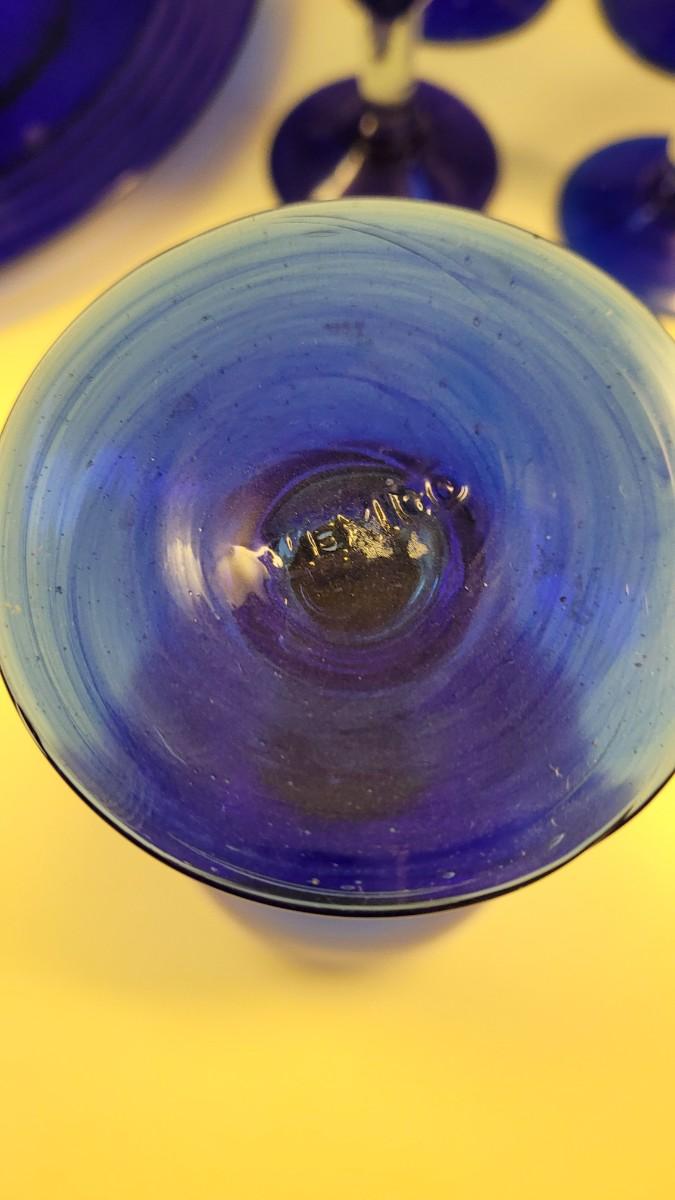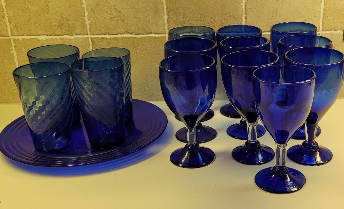 Lot 82: Vintage Blown Glass Cobalt Blue Goblets, Collins Glasses and Large Plate/Tray