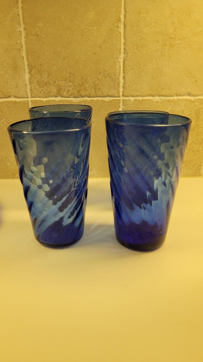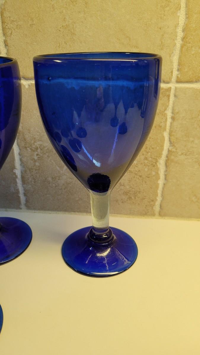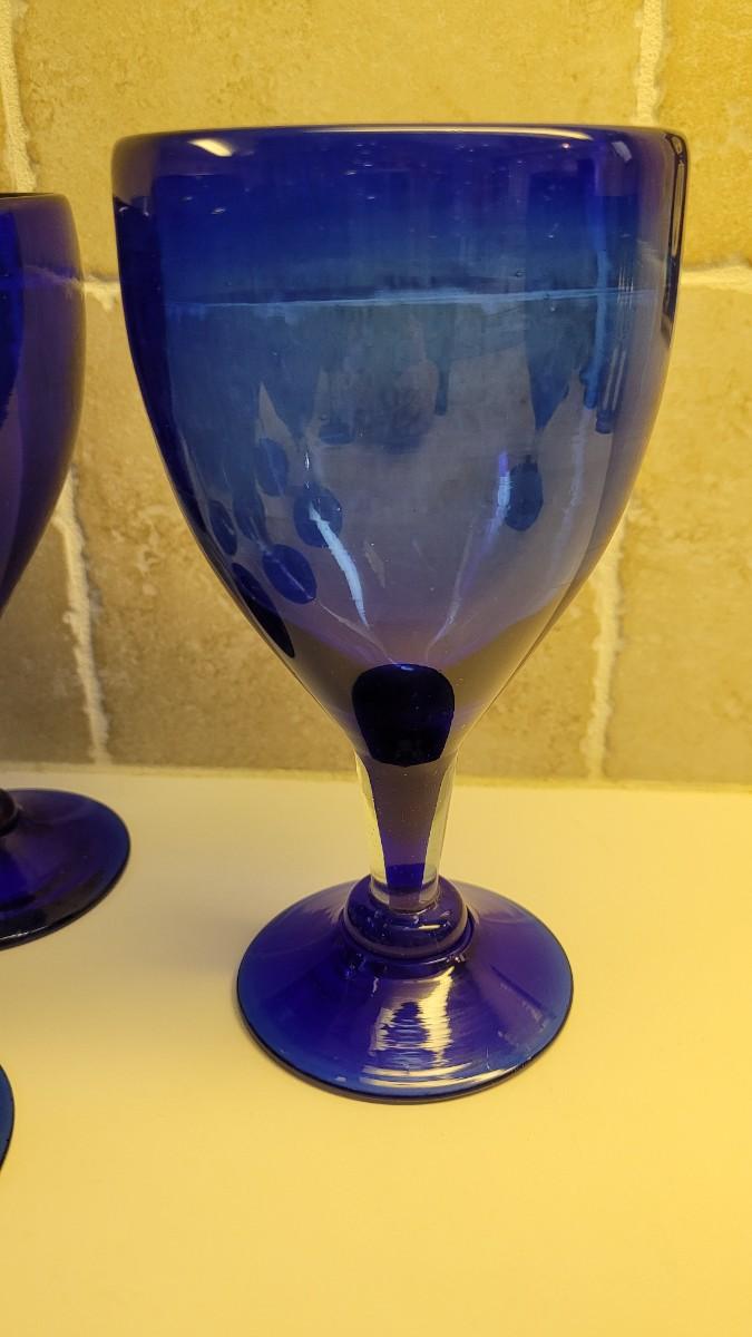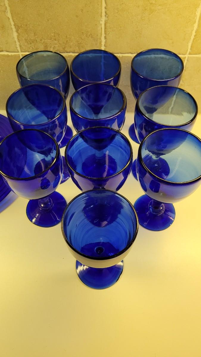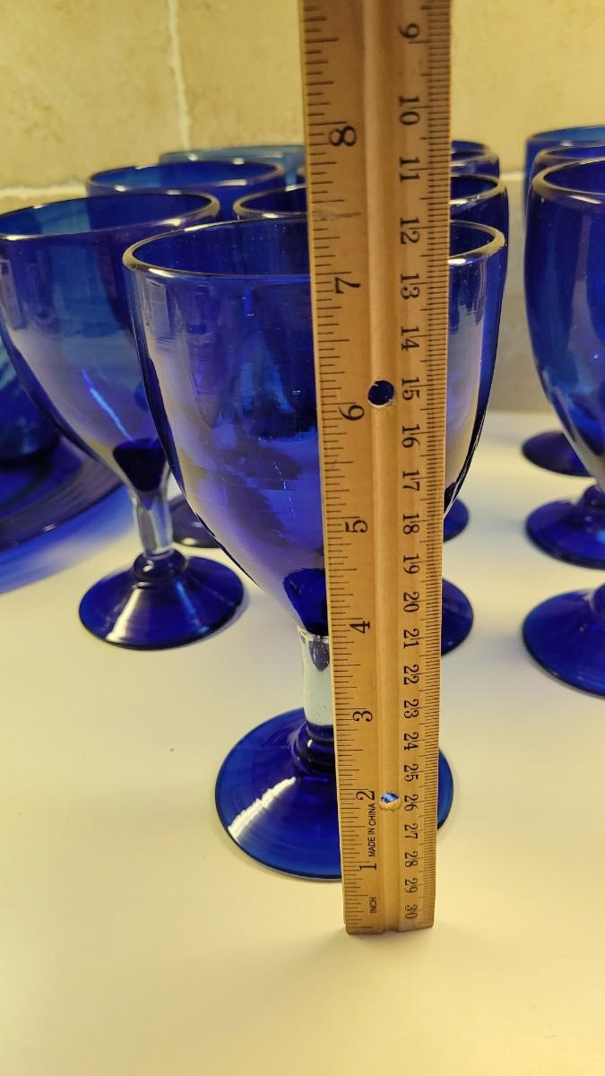 Lot 82: Vintage Blown Glass Cobalt Blue Goblets, Collins Glasses and Large Plate/Tray