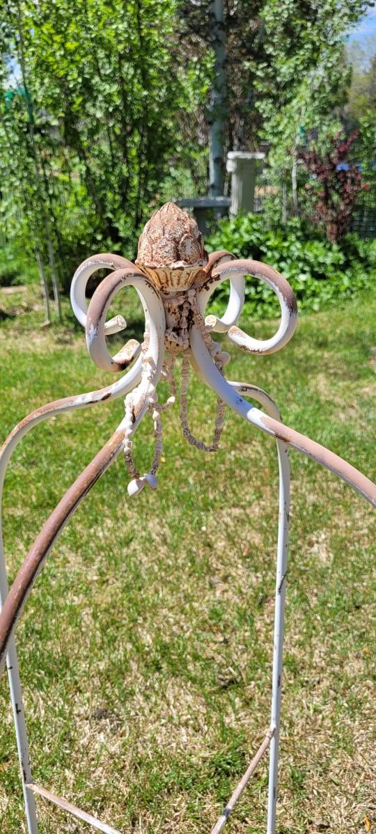 This weathered metal garden decorative feature would look wonderful in a variety of outdoor settings.