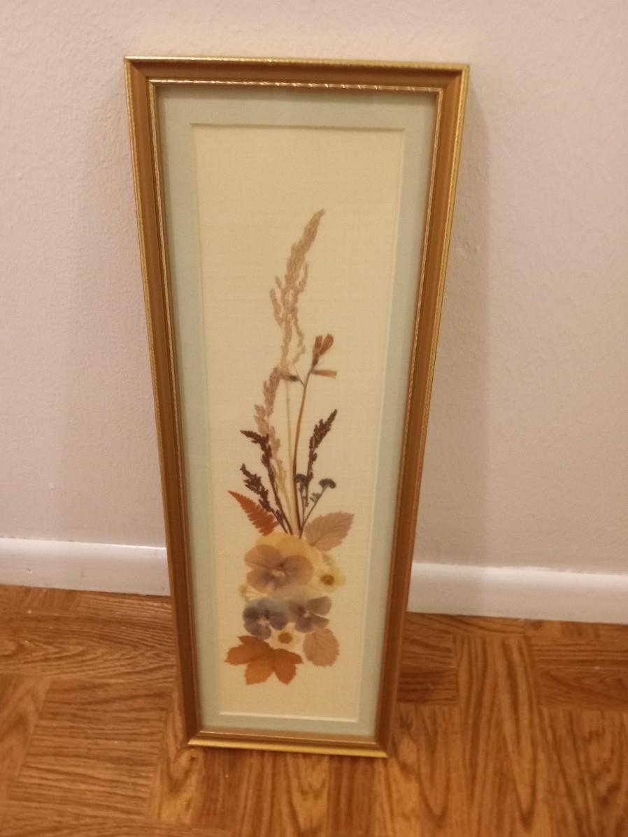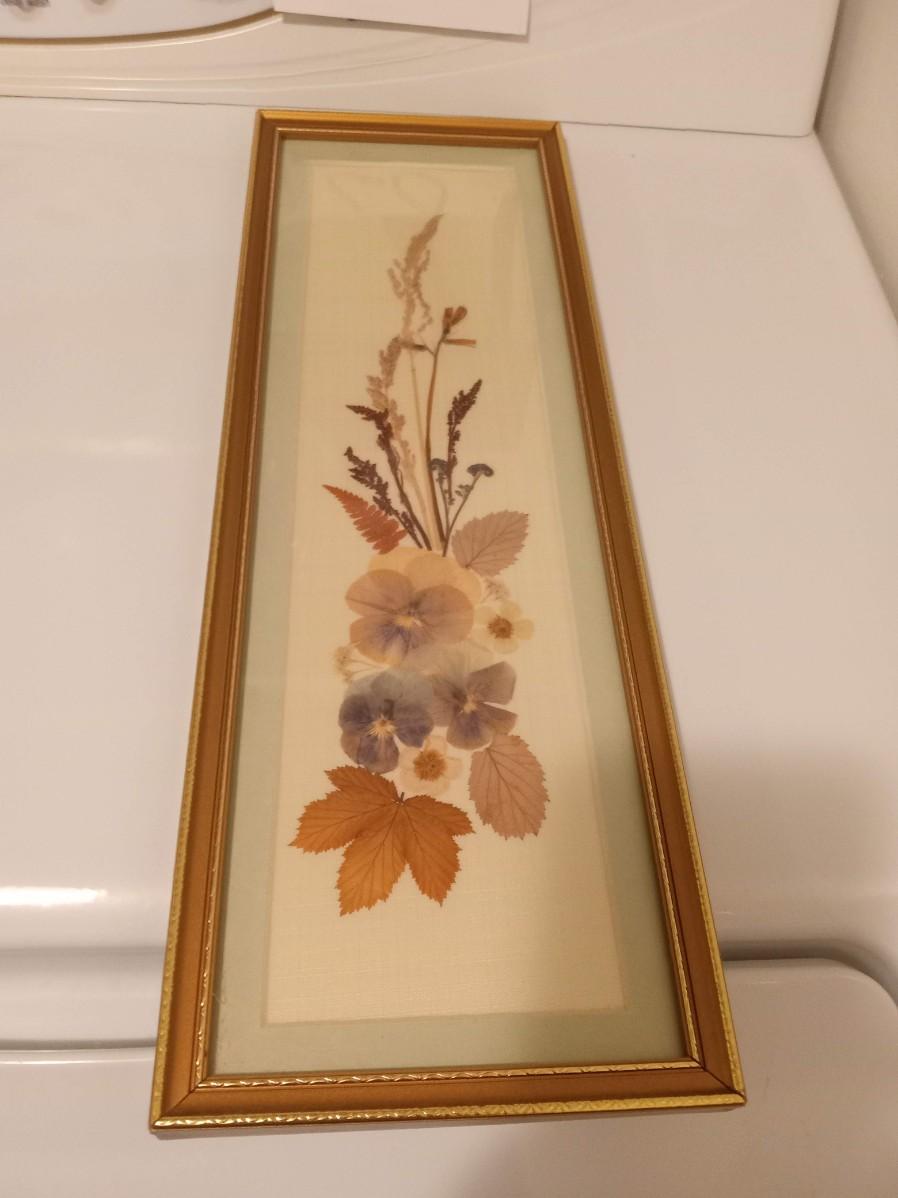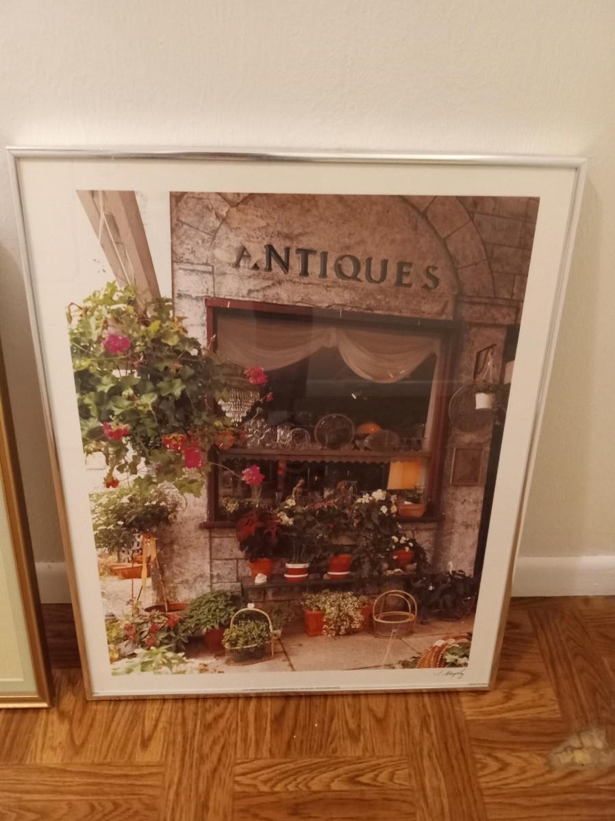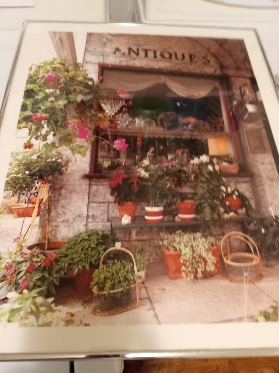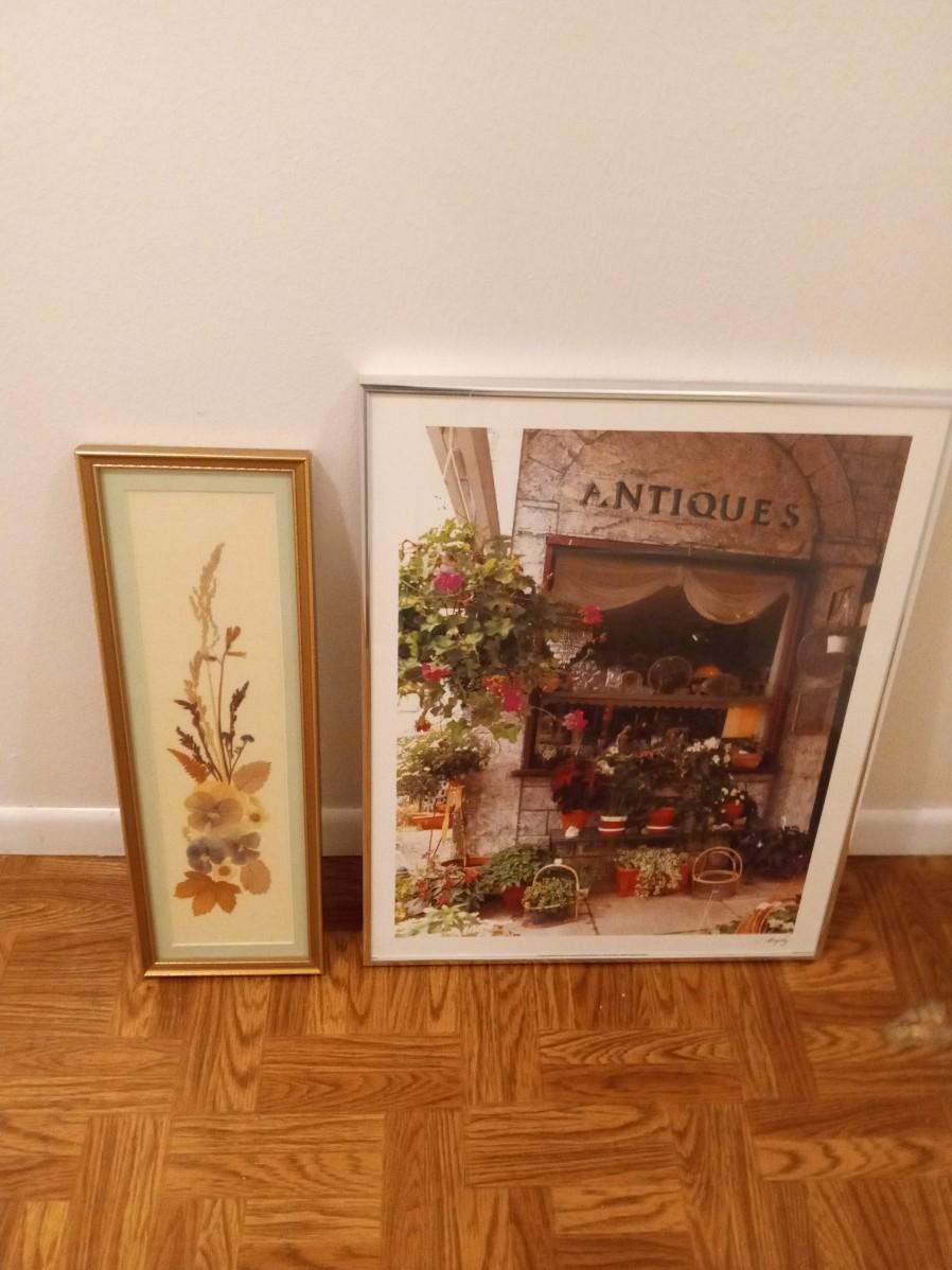 FRAMED DRIED FLOWERS AND AN ANTIQUE STORE WHICH MEASURES 16 X 20