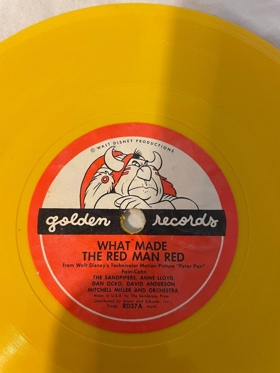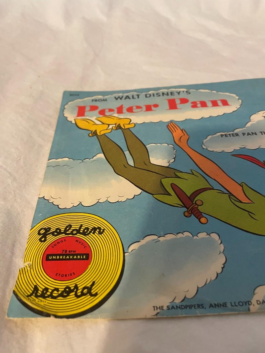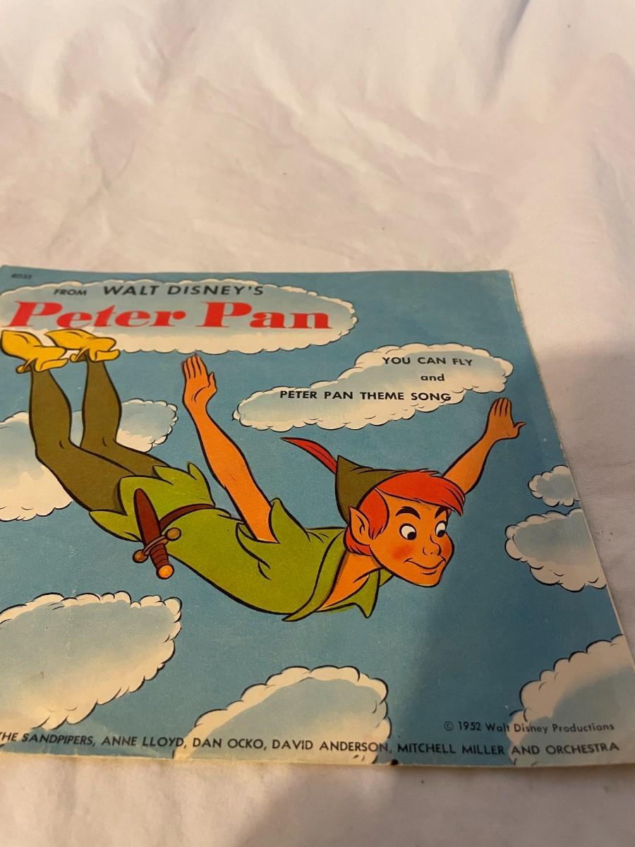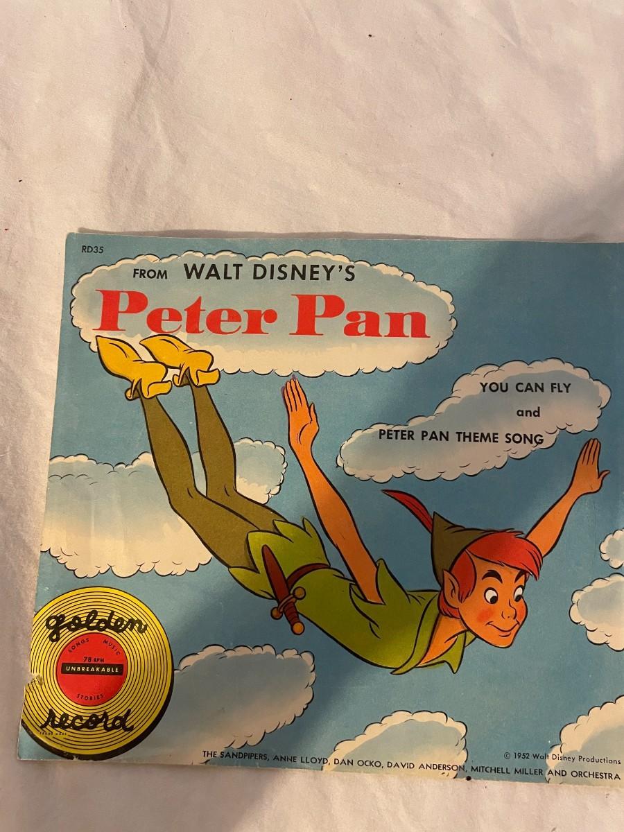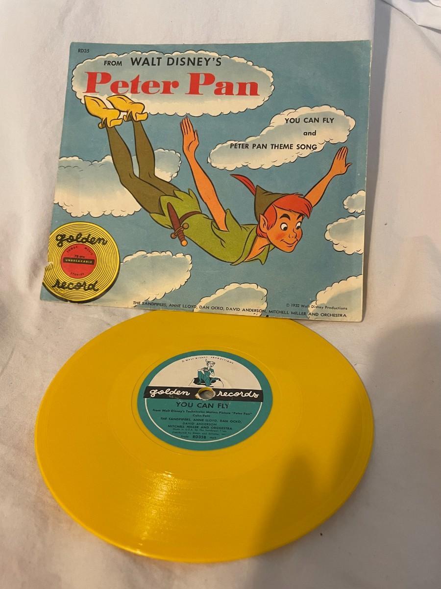 LITTLE GOLDEN RECORDS AND WALT DISNEY PRESENT PETER PAN! FOUR RECORDS ALL FEATURING MUSIC FROM PETER PAN. WHAT MADE THE RED MAN RED, YOU CAN FLY, NEVER SMILE AT A CROCODILE AND MORE!