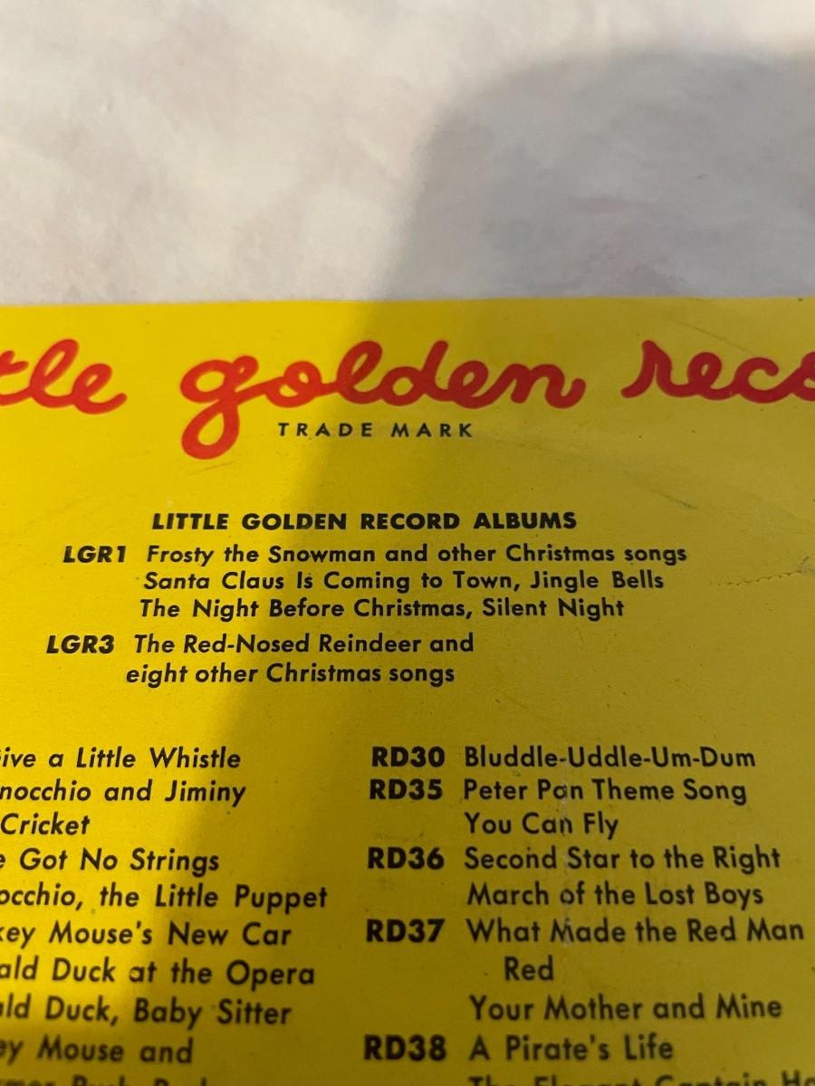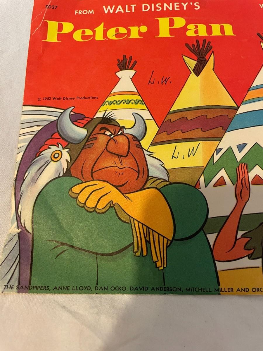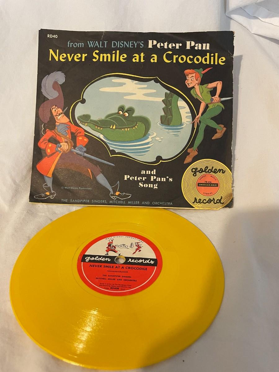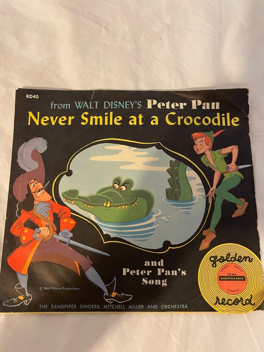 LITTLE GOLDEN RECORDS AND WALT DISNEY PRESENT PETER PAN! FOUR RECORDS ALL FEATURING MUSIC FROM PETER PAN. WHAT MADE THE RED MAN RED, YOU CAN FLY, NEVER SMILE AT A CROCODILE AND MORE!
