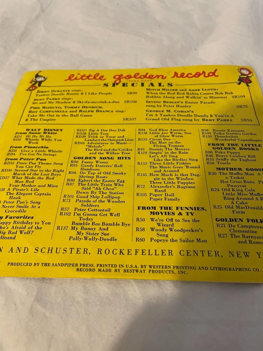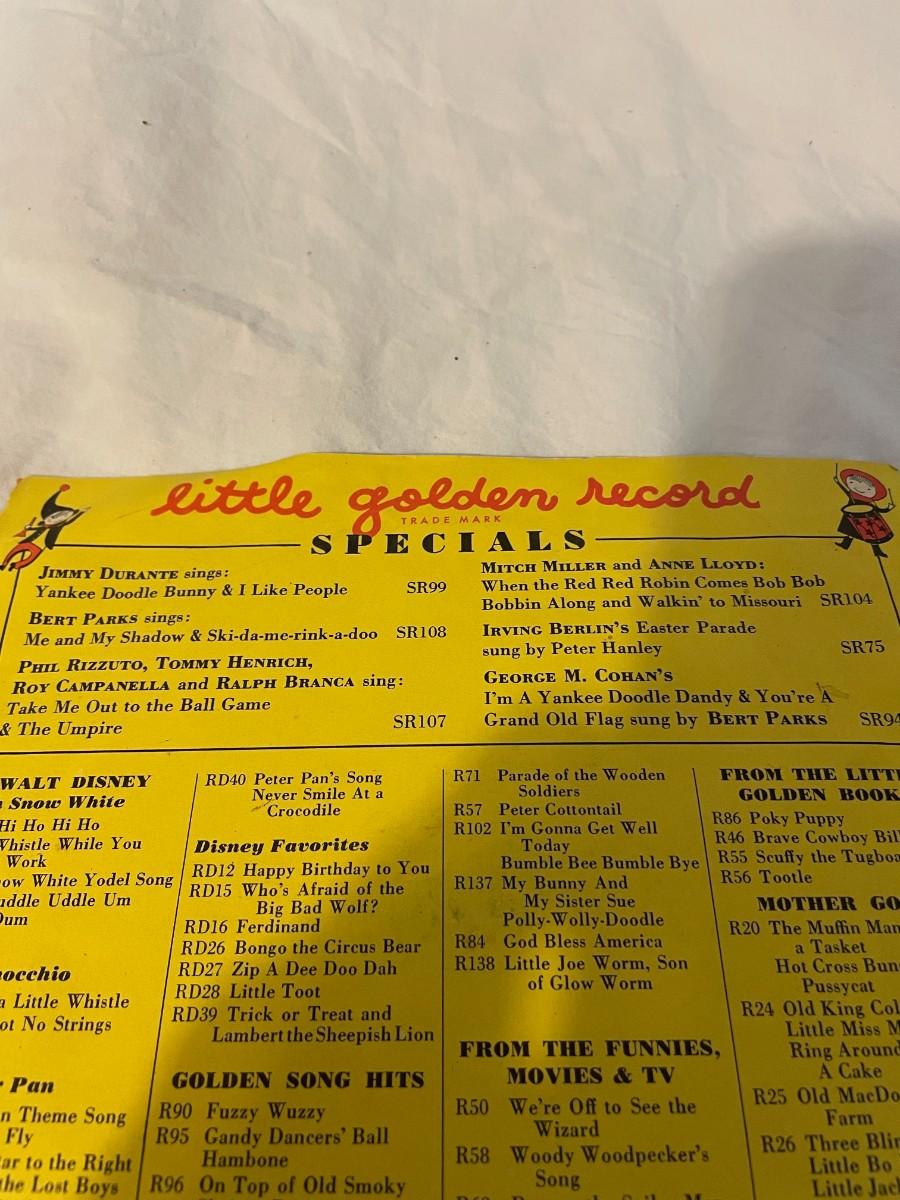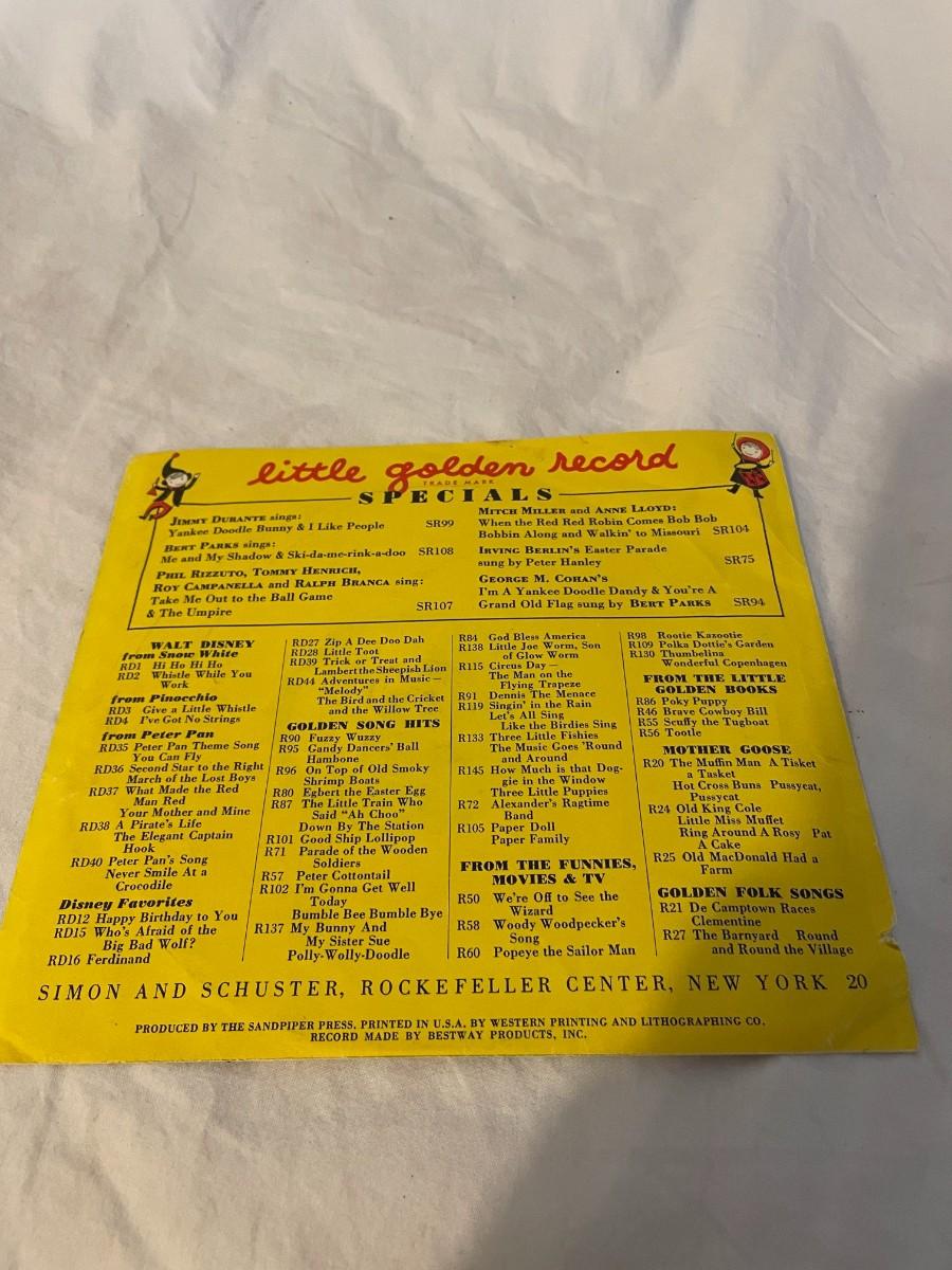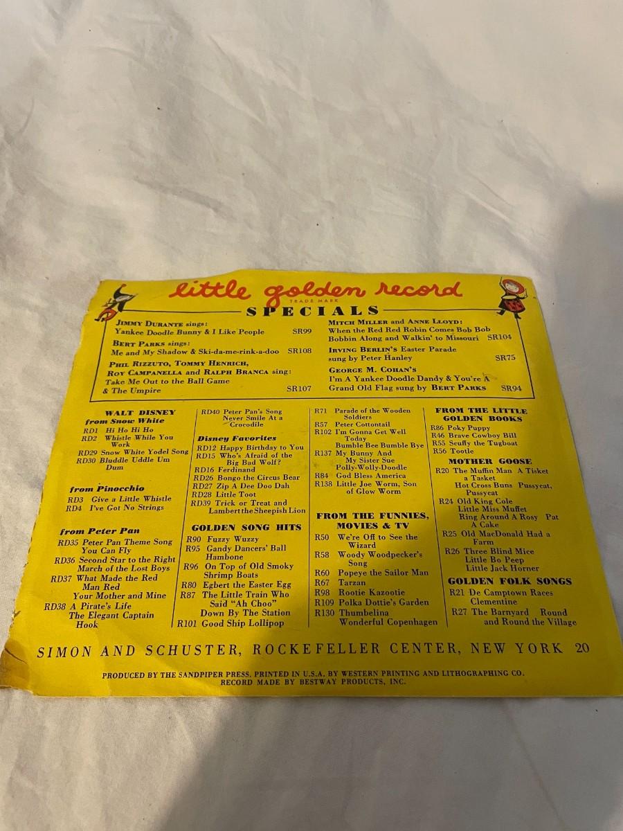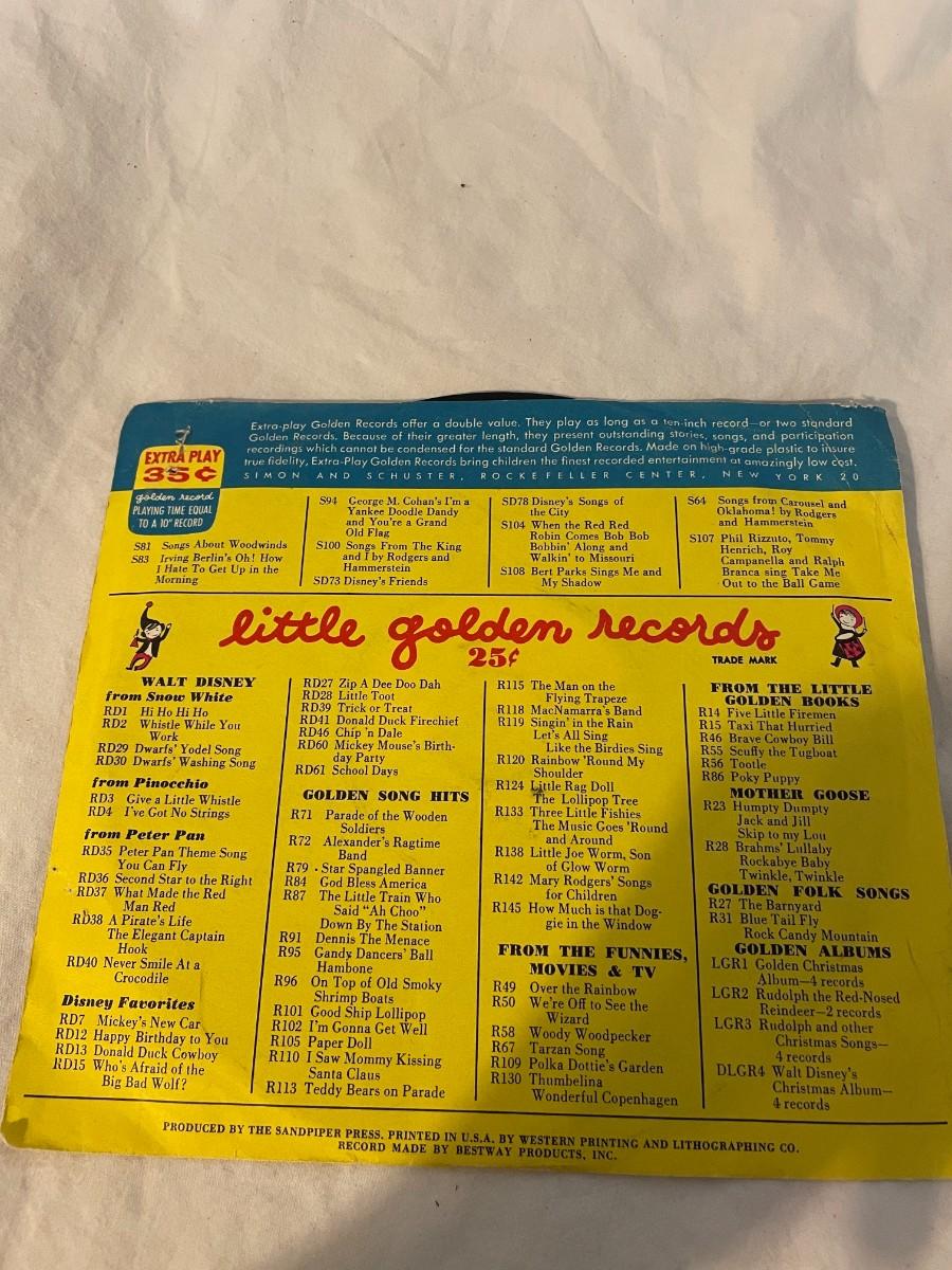 LITTLE GOLDEN RECORDS AND WALT DISNEY PRESENT PETER PAN! FOUR RECORDS ALL FEATURING MUSIC FROM PETER PAN. WHAT MADE THE RED MAN RED, YOU CAN FLY, NEVER SMILE AT A CROCODILE AND MORE!