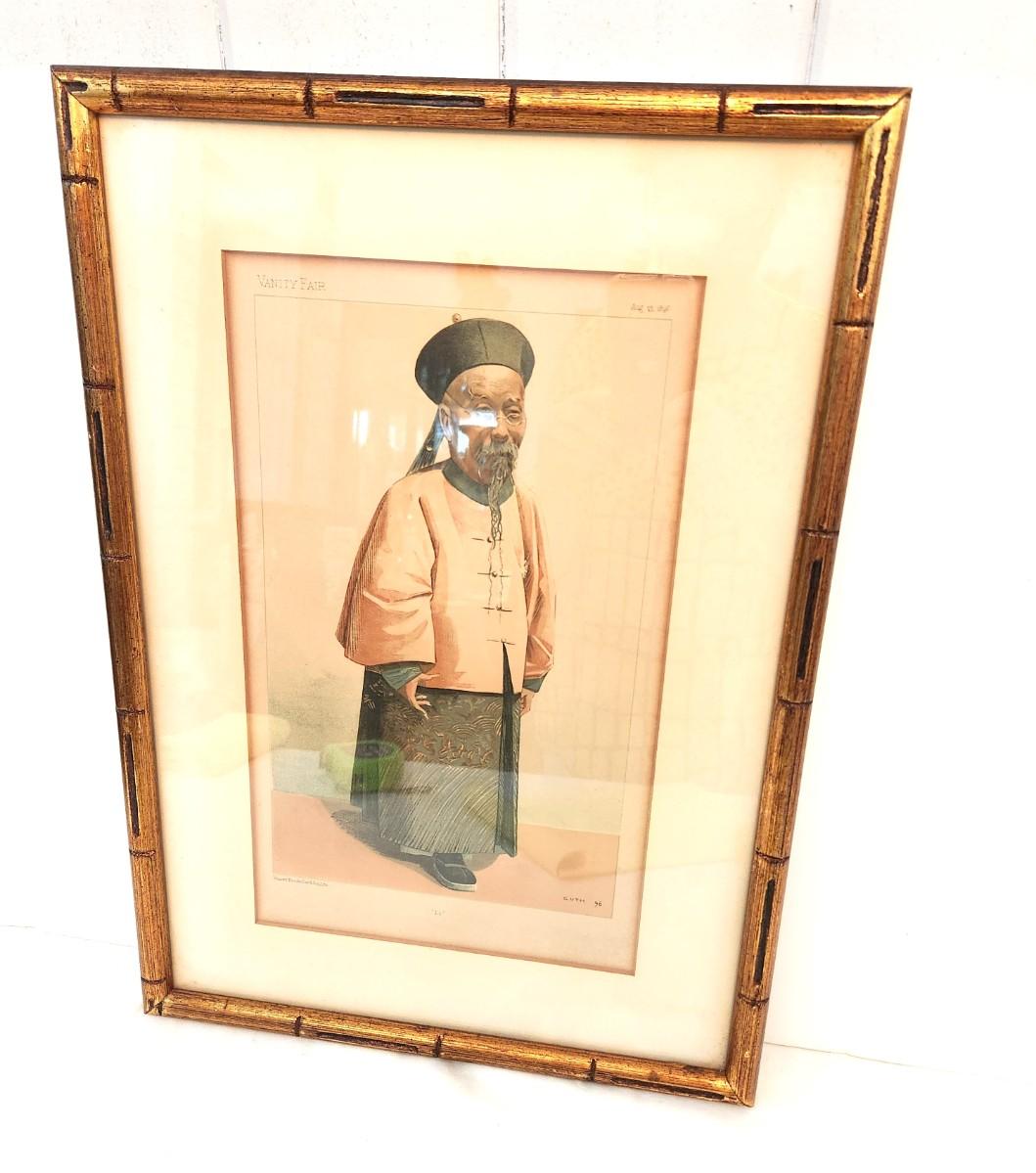 This is one of my favorite pieces in the entire sale - antique (dated 1896) framed lithograph from Vanity Fair in their "Men of the Day" series. Depicts the Chinese Viceroy Li Hung Chang - No. 655 in the series. He was Special Envoy to the West during this period, and a fascinating character in his own right. Measures 14" x 20". There is a lot of information about this lith on the back of the piece.