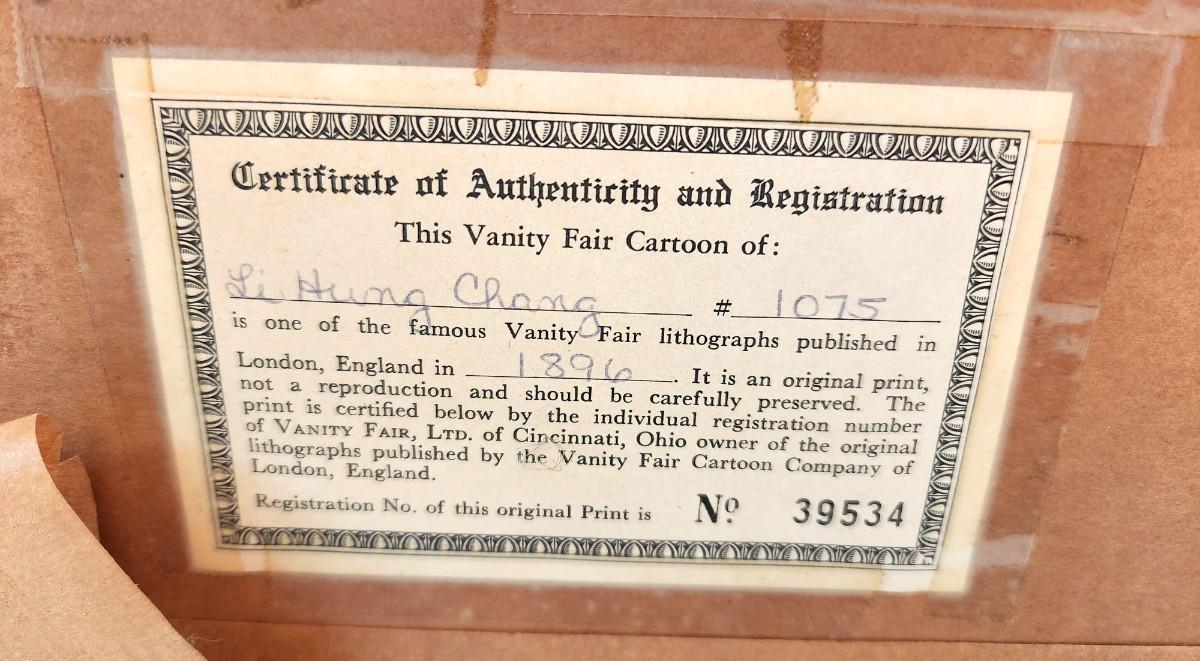 Lot #82 Antique 1896 Vanity Fair Lithograph - Viceroy of China