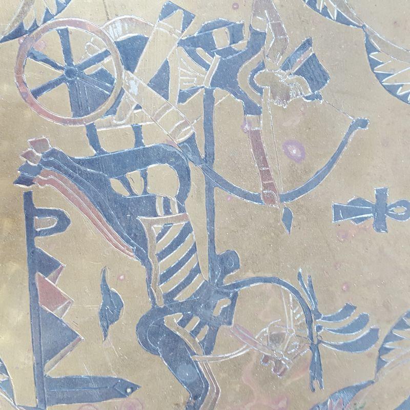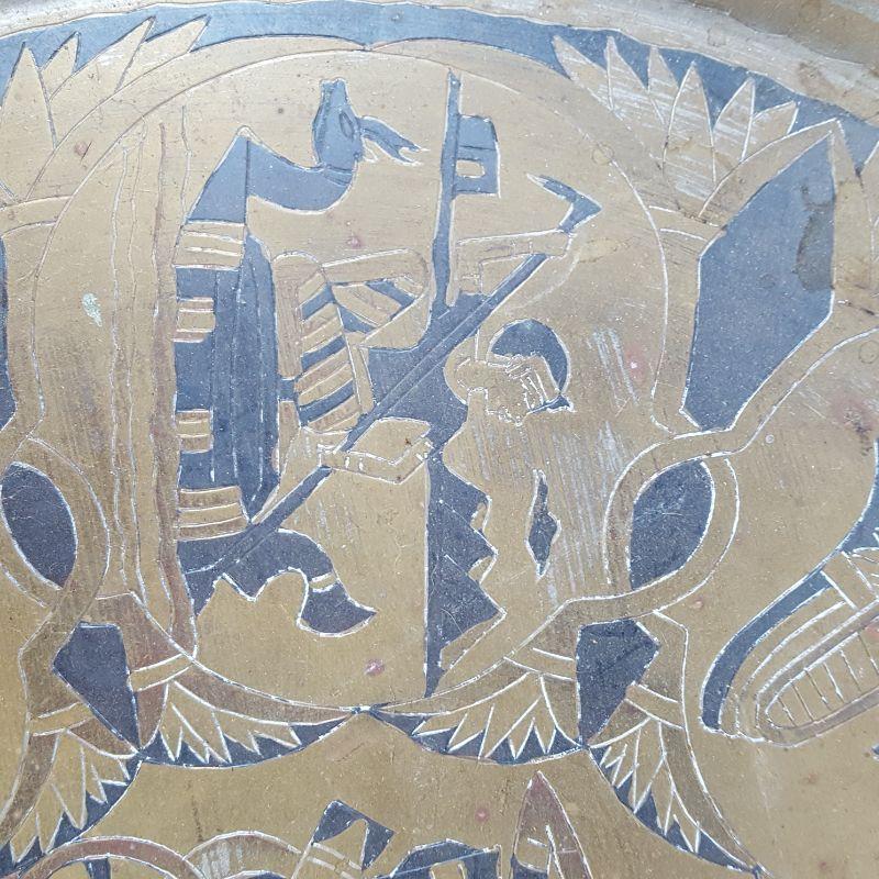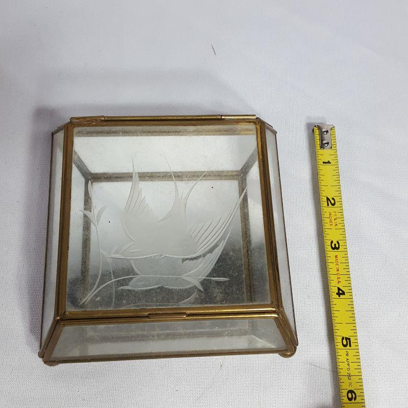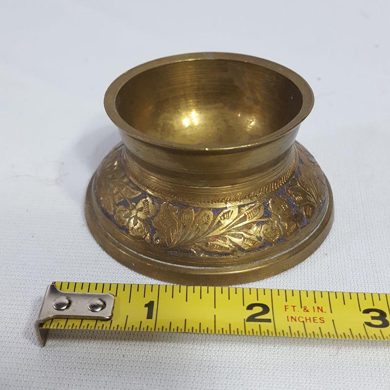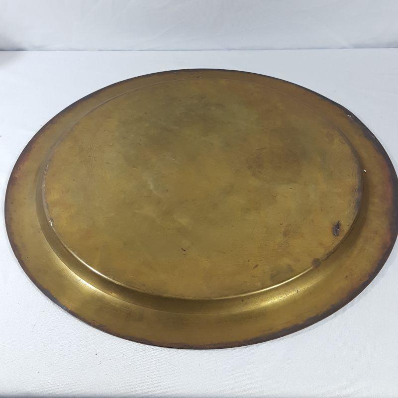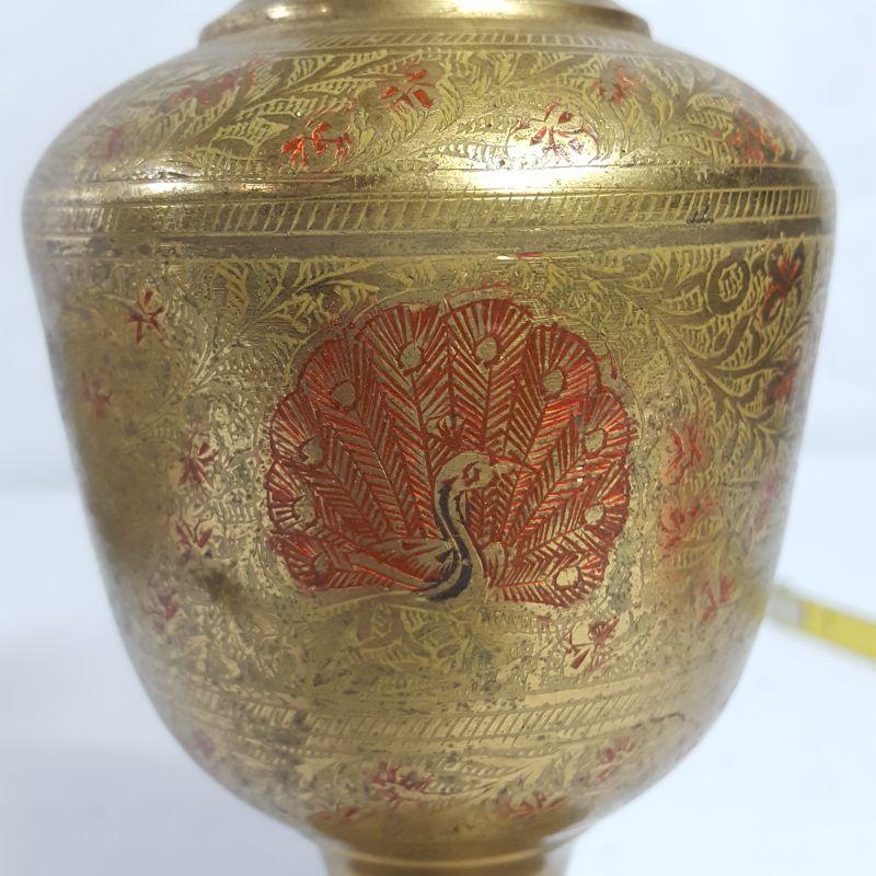 Six piece collection of brass treasures! Featuring a large brass platter with detailed Egyptian engravings. Platter is 19.5 in in diameter and will enhance your mantel, wall or dresser top. Included in this lot is an engraved vase with detailed red peacocks. Next, two insense burners, one 7 inches with star cut outs and the other one 6 inches with cross cut outs. Another treasure is a short insense burner with an intricate leaf design. Finally a brass and glass box featuring an etched swallow. See pictures for all the fine details! Shipping available.