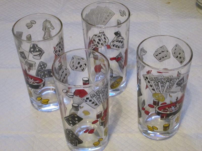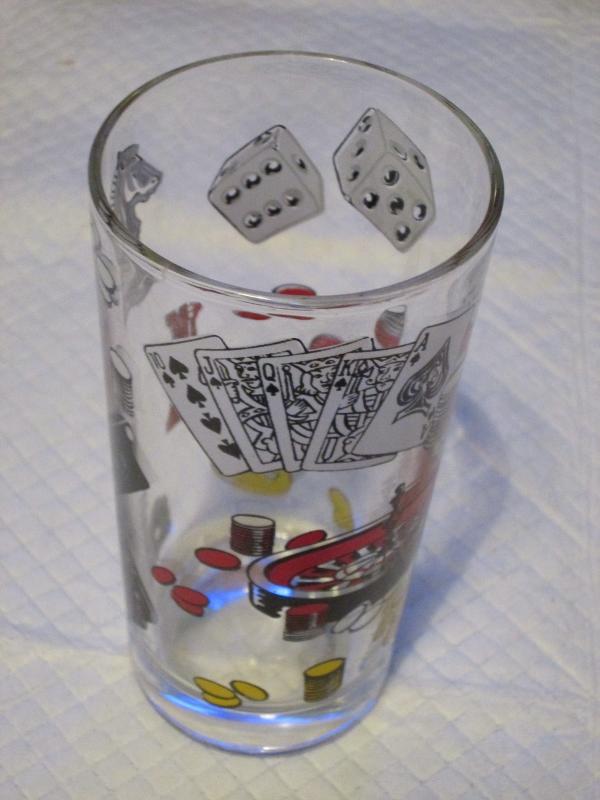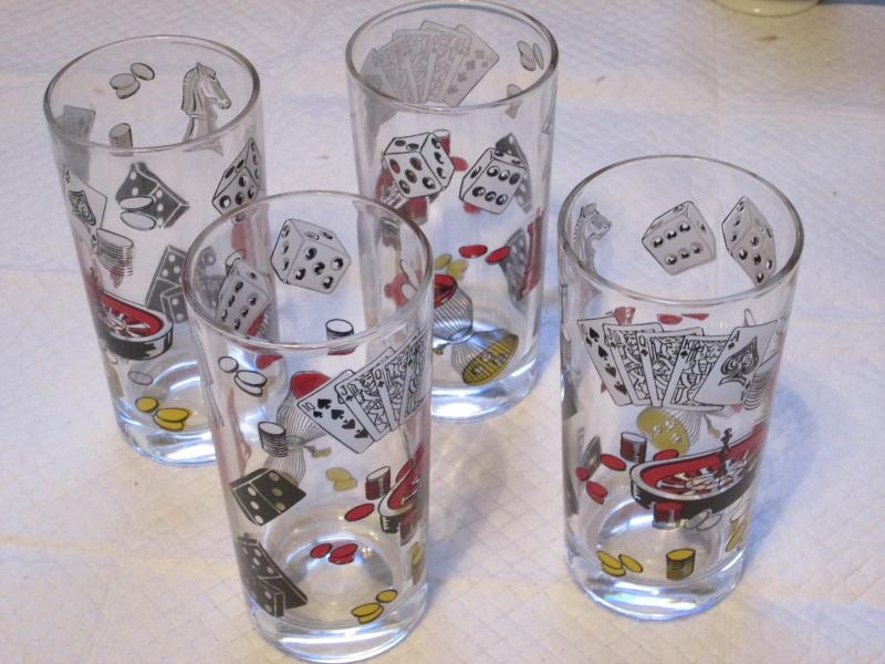Lot # 82 ““ Cary Party, Glass Set of 4 tumblers w card décor - Poker