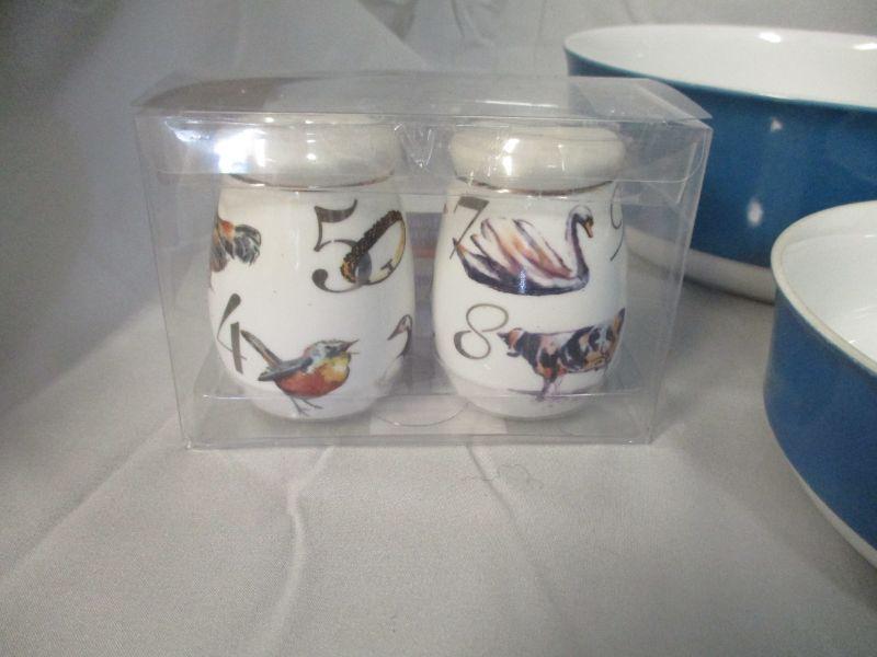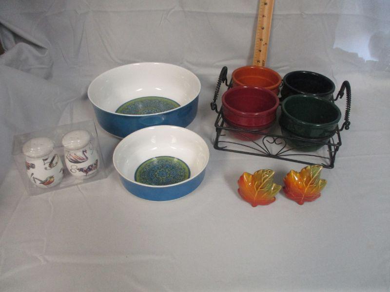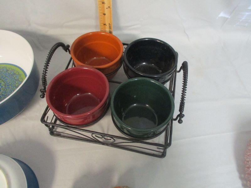 All of the pieces are in excellent condition. I really don't know what the bowls in the rack are, but they are cute so there's that.