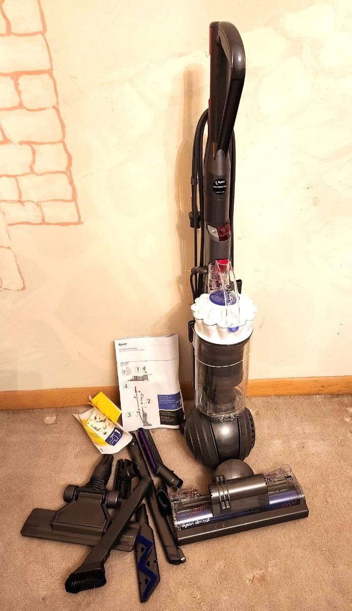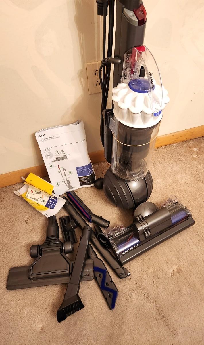 No box, but this beauty is new and unused. DYSON Slimball vacuum cleaner with book and extra accessories. These are pricey little buggers. This one is about $400 retail.