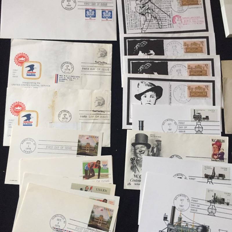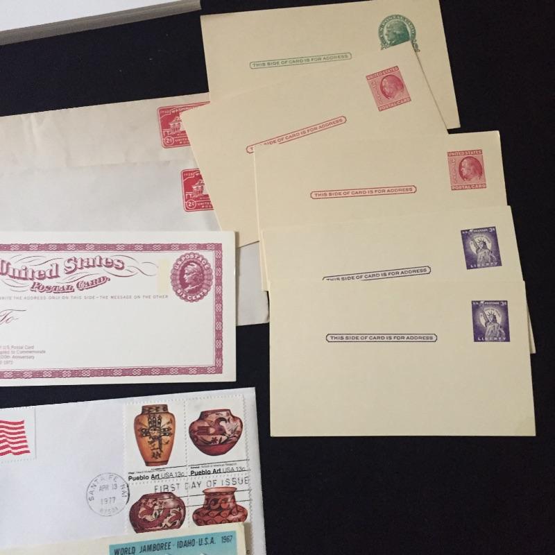Over two hundred first day issue stamps and vintage postcards.