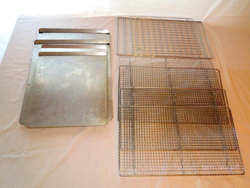Six 18" x 10" footed cooling racks; One 14 X 10 cooling rack; Two 14" x 12" Insulated Baking Sheets; Two 16" x 16" Insulated Baking Sheets.