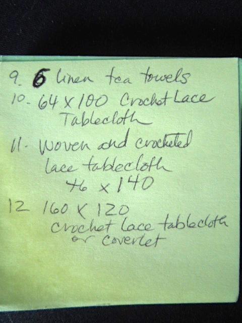 This grouping has many wonderful vintage linens and handwork, and crocheted beauties.Pieces are in a range of condition from near mint to fine. No pieces are seriously torn unless shown in photo. Some of the linen and muslin frabic, and ecru threads appears tea stained from age.