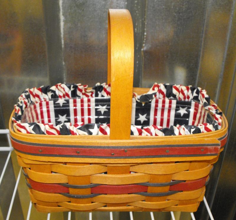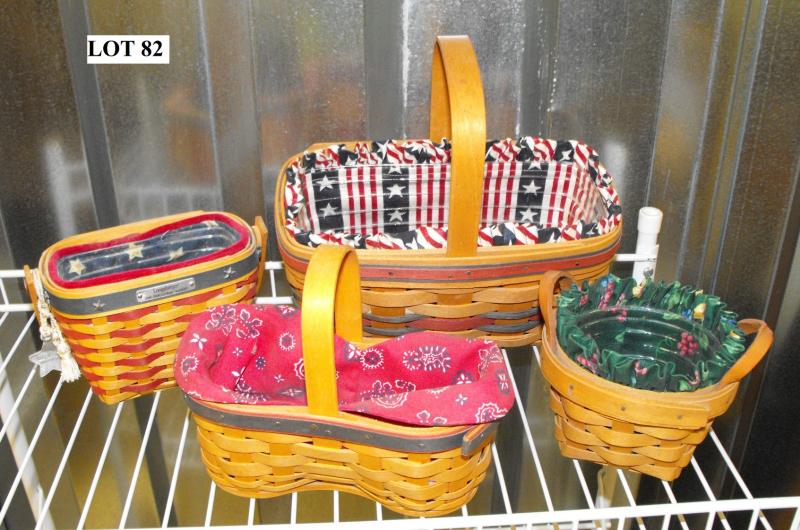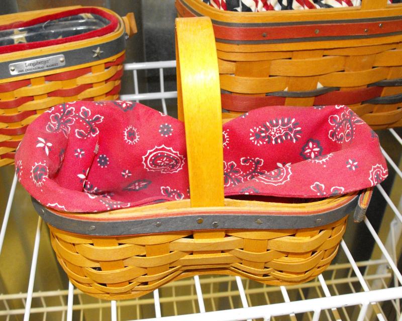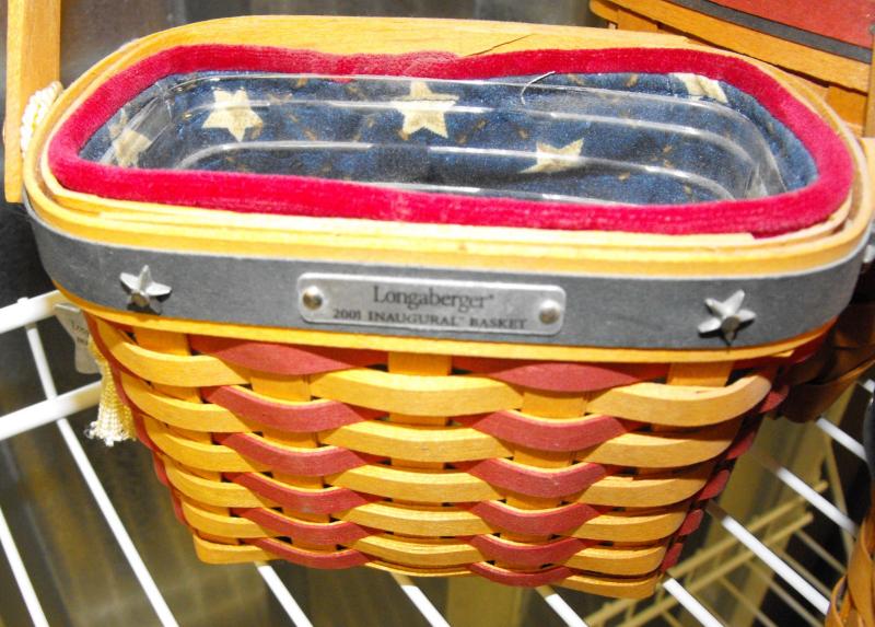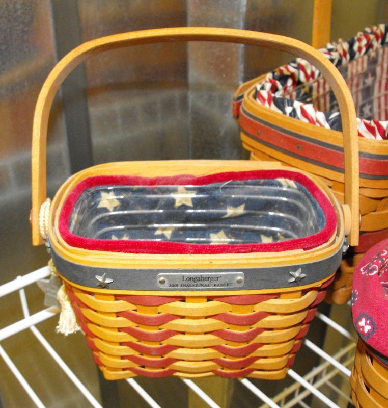 4 Smaller Lined Baskets, 1 is marked "2001 Longaberger Inaugural Basket" All VG