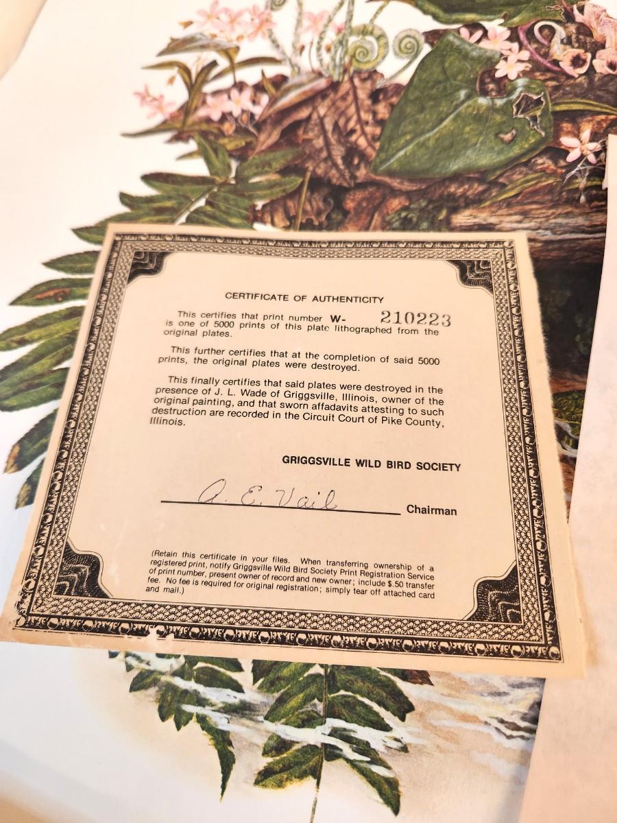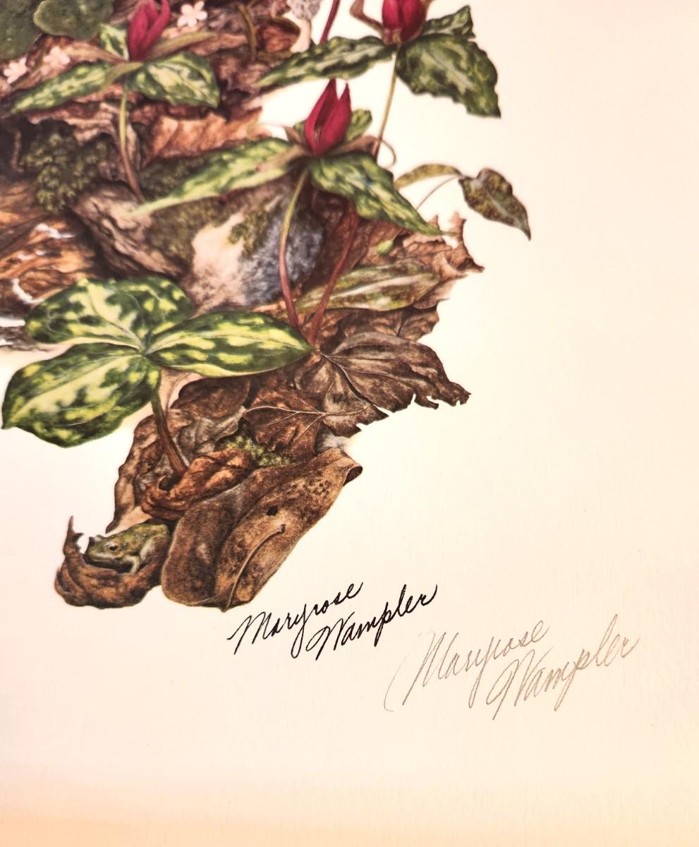 Unframed signed/numbered lithograph by noted nature artist Maryrose Wampler - pencil signed, one of an edition of 5000 prints. Dated 1977, part of the Nature Home Collection North American Flowers series. Colorful - lots of detail - ready to be framed. In original sleeve.