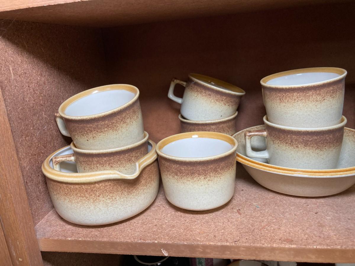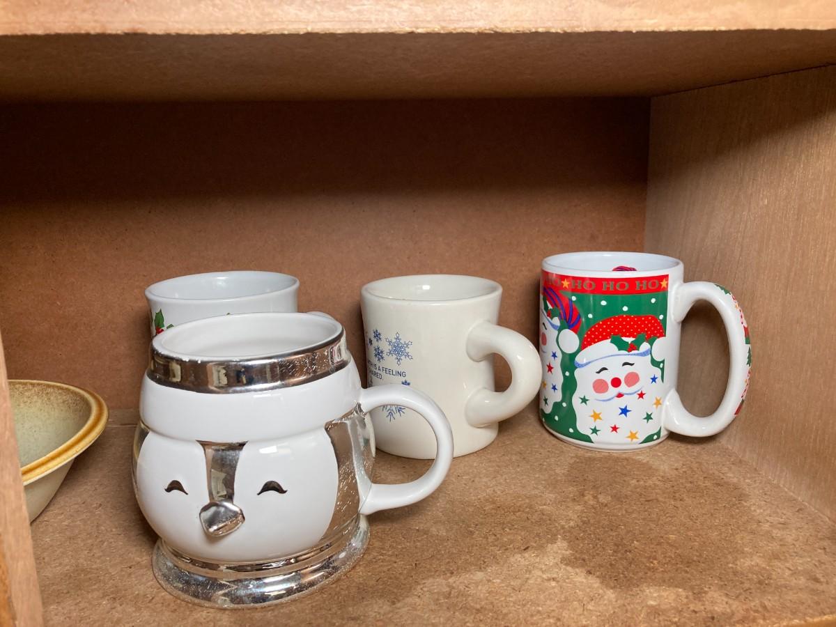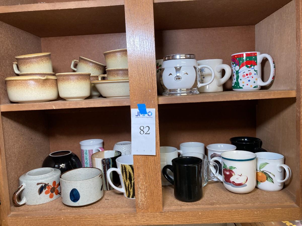 6 Mikasa Stylecraft mugs and 2 matching bowls. Assorted other mugs as shown.