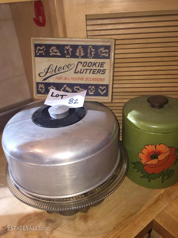 Baking pieces and canisters(tallest 9.5") . Cookie cutters, cake storage (11" dia.)and bundt pan (10.5" dia.)